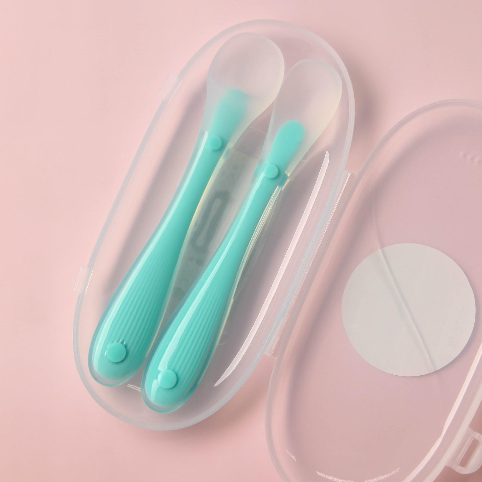 Набор силиконовых ложек для кормления, 2 шт., цвет бирюзовый