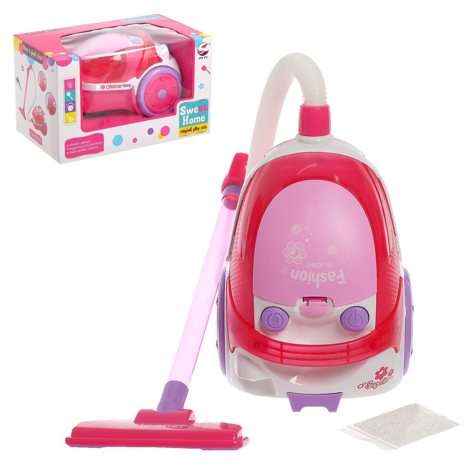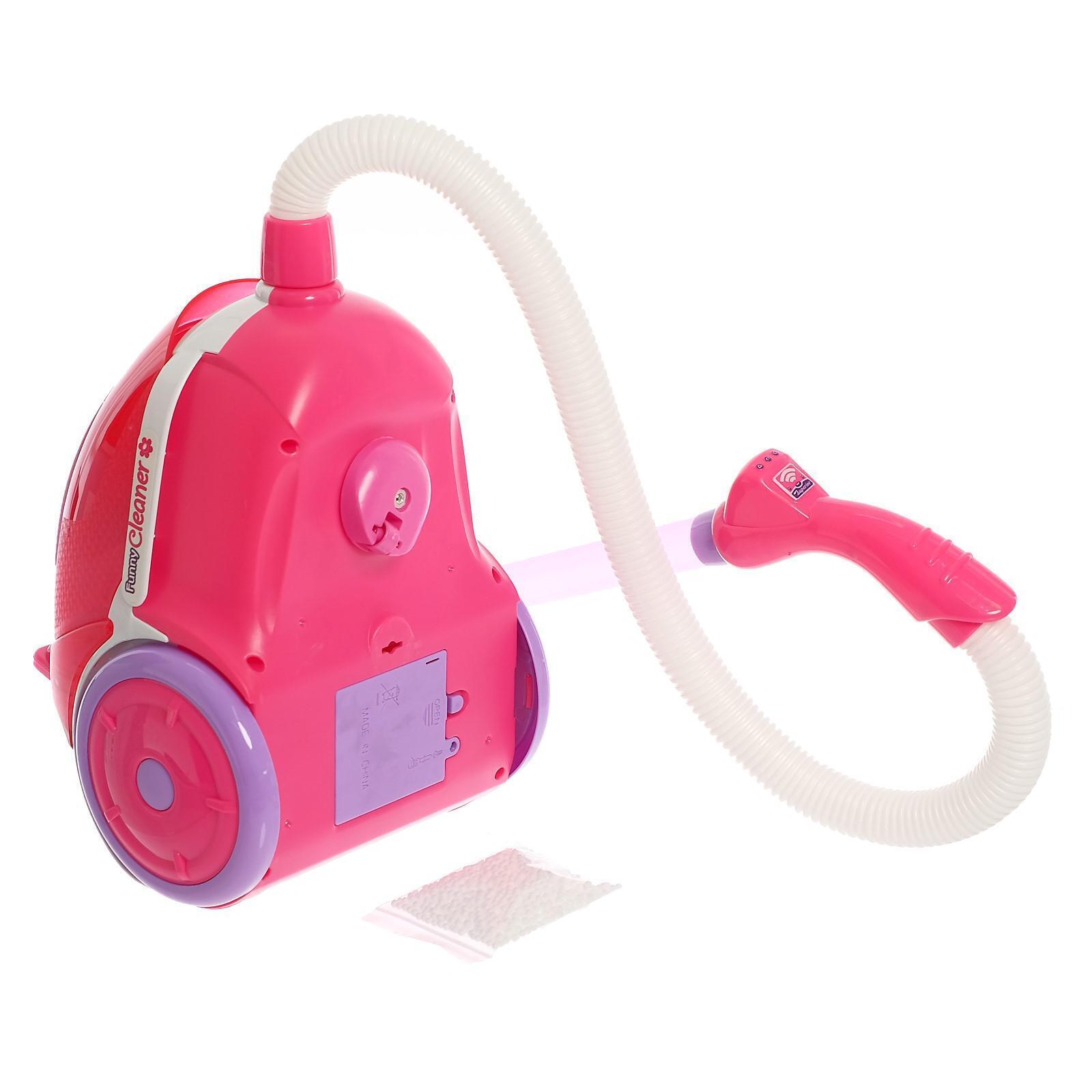 Игрушечный пылесос сделает сюжетно-ролевые игры разнообразнее и реалистичнее и поможет привить полезные бытовые привычки. Игрушка светится, воспроизводит звуки и проигрывает песенку на английском языке. Выполняет функции пылесоса, всасывает лёгкий мусор. Во время работы пылесос издаёт звук мотора.
