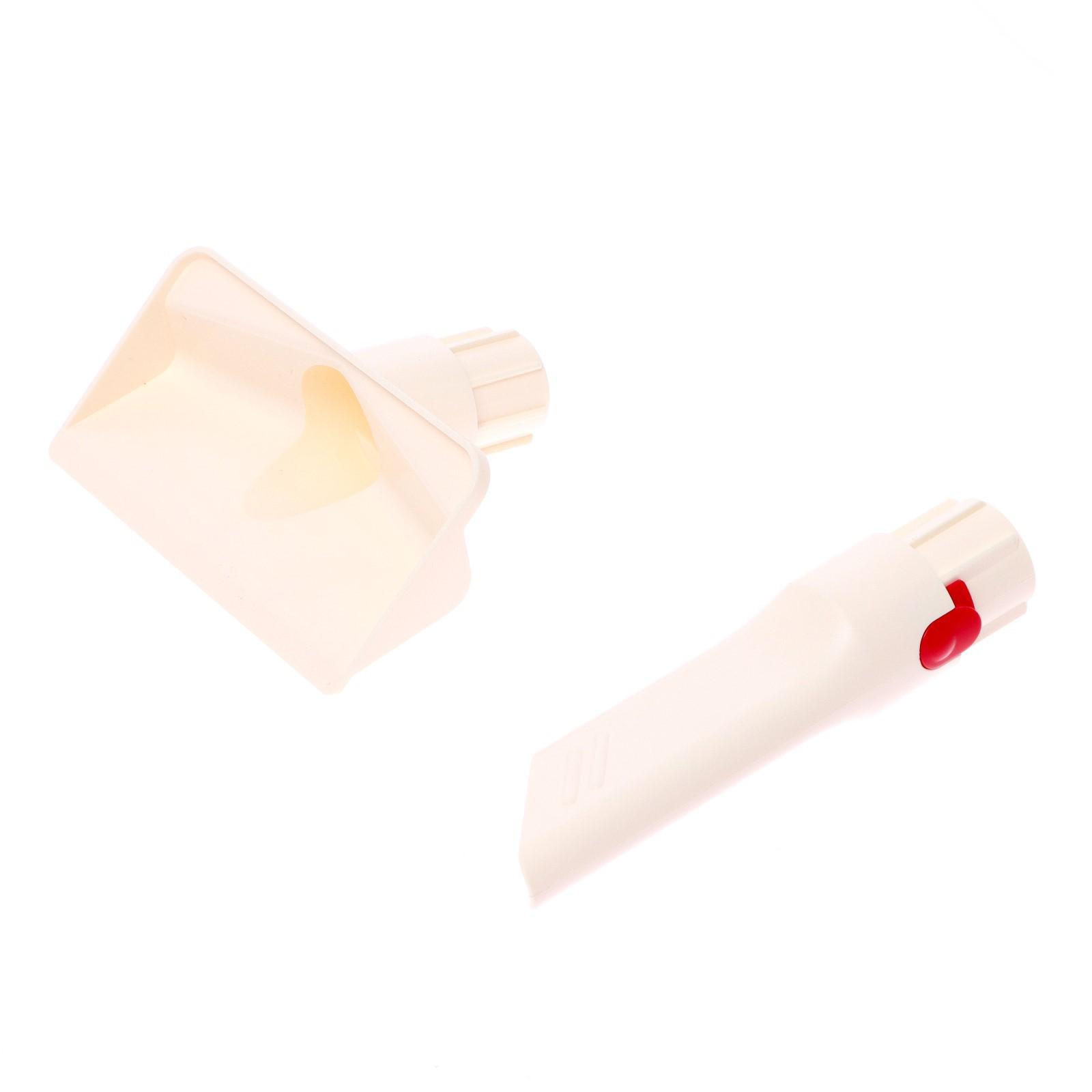 Размер пылесоса с трубкой: 17 × 15 × 80 см. В комплекте подставка для насадок (размер: 19 × 15 × 80 см), 3 насадки, пульверизатор (муляж), щётка (размер: 23 × 2,5 × 6,5 см), бутылочка моющего средства (муляж). Длина шланга составляет 60 см. Трубка с насадкой: 16 × 7 × 34 см.