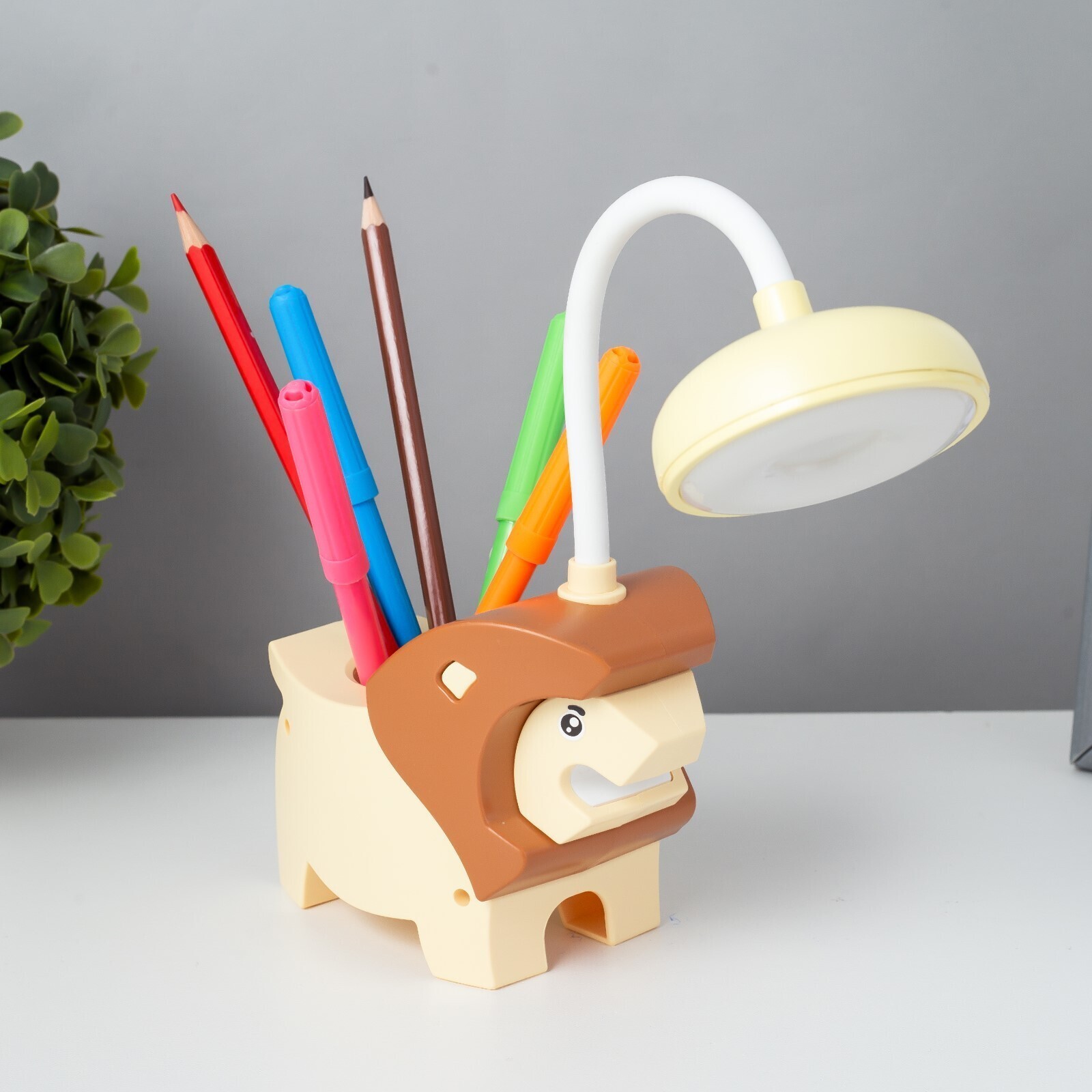 Настольная лампа "Львёнок" LED USB АКБ желто-шоколадный 7,5х13х29 см