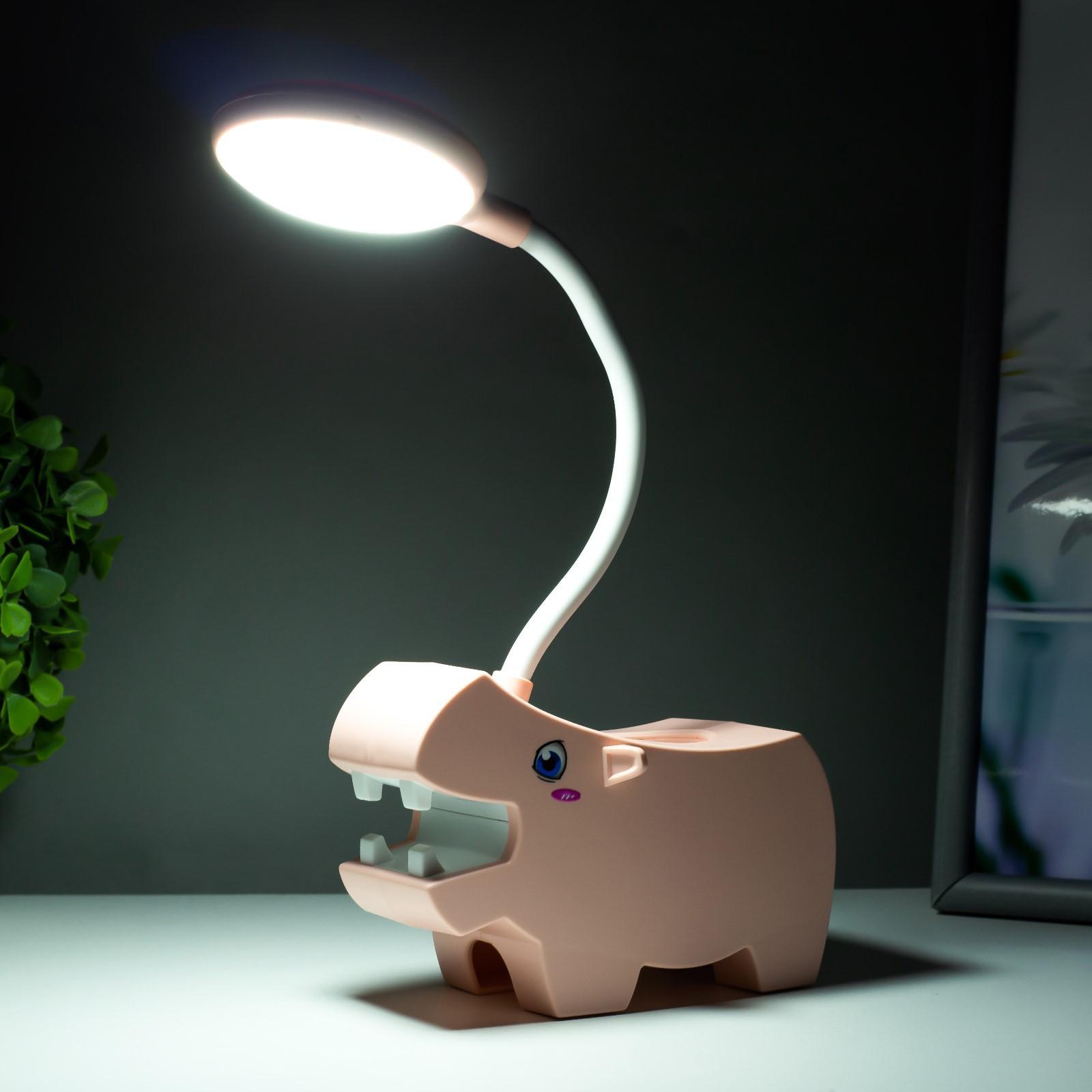 Настольная лампа "Бегемотик" LED USB АКБ розовый 7,5х13х29 см