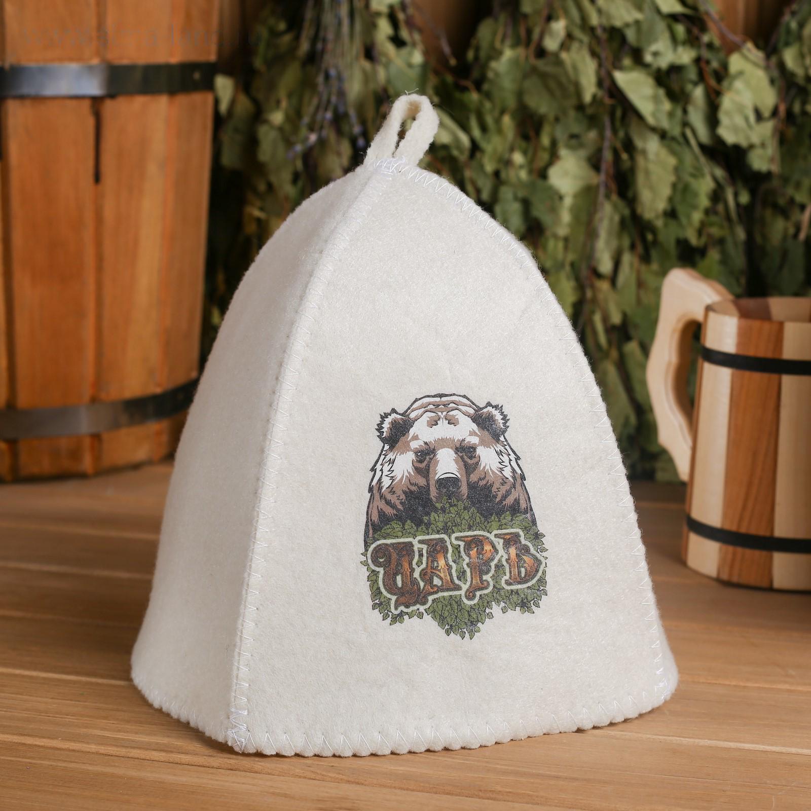 Шапка для бани с термопечатью "Царь"(медведь)