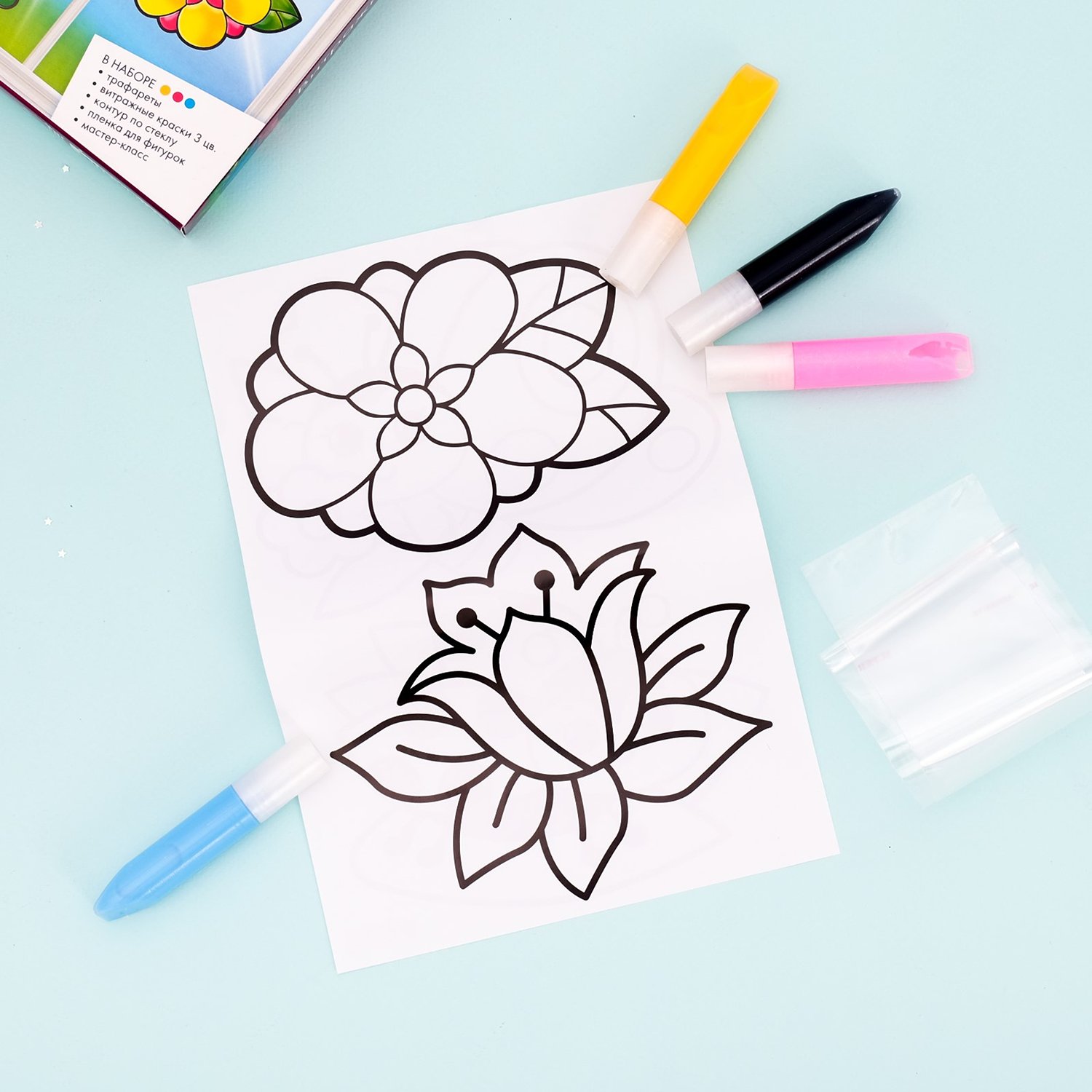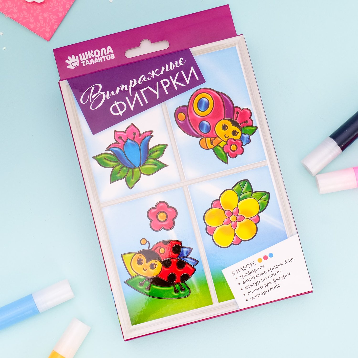 Набор для рисования Школа Талантов Витражные фигурки Цветы и бабочки Школа Талантов 3912636