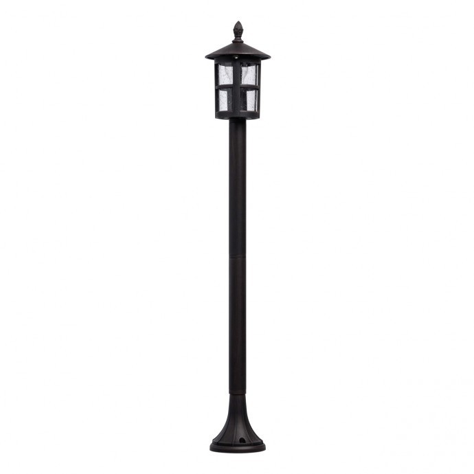 Основание светильника выполнено из сплава алюминия и обработано по технологии порошкового окрашивания в коричневый цвет с патинированием в цвет кофе. Плафон выполнен из прозрачного стекла с декоративной имитацией капель.