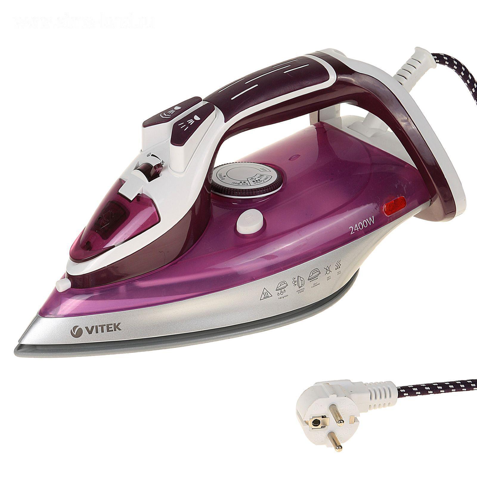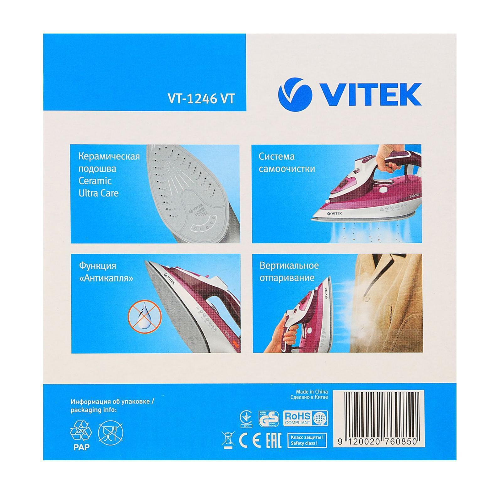 Утюг Vitek VT-1246 VT, 2400 Вт, керамическая подошва, 30 г/мин, 330 мл, фиолетовый