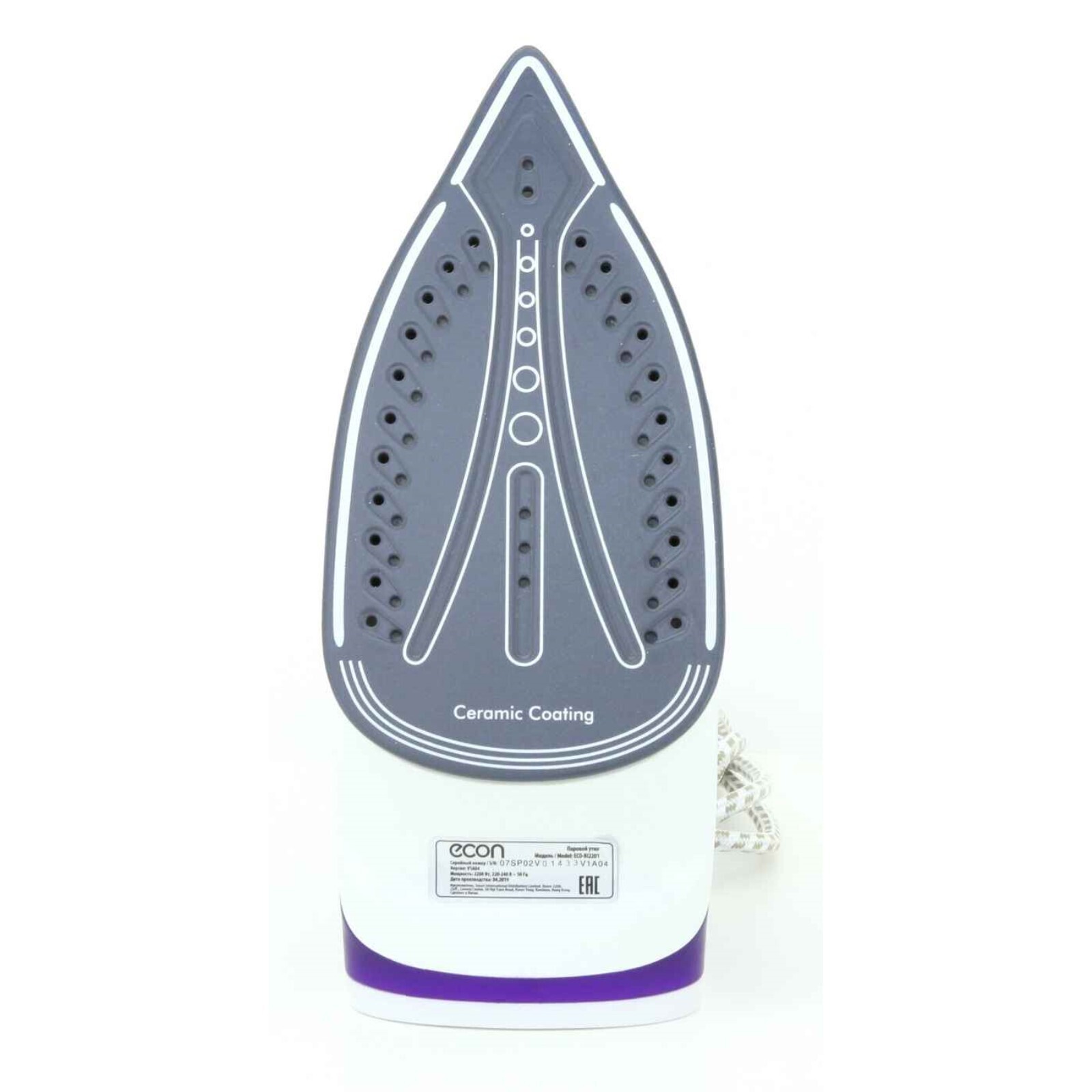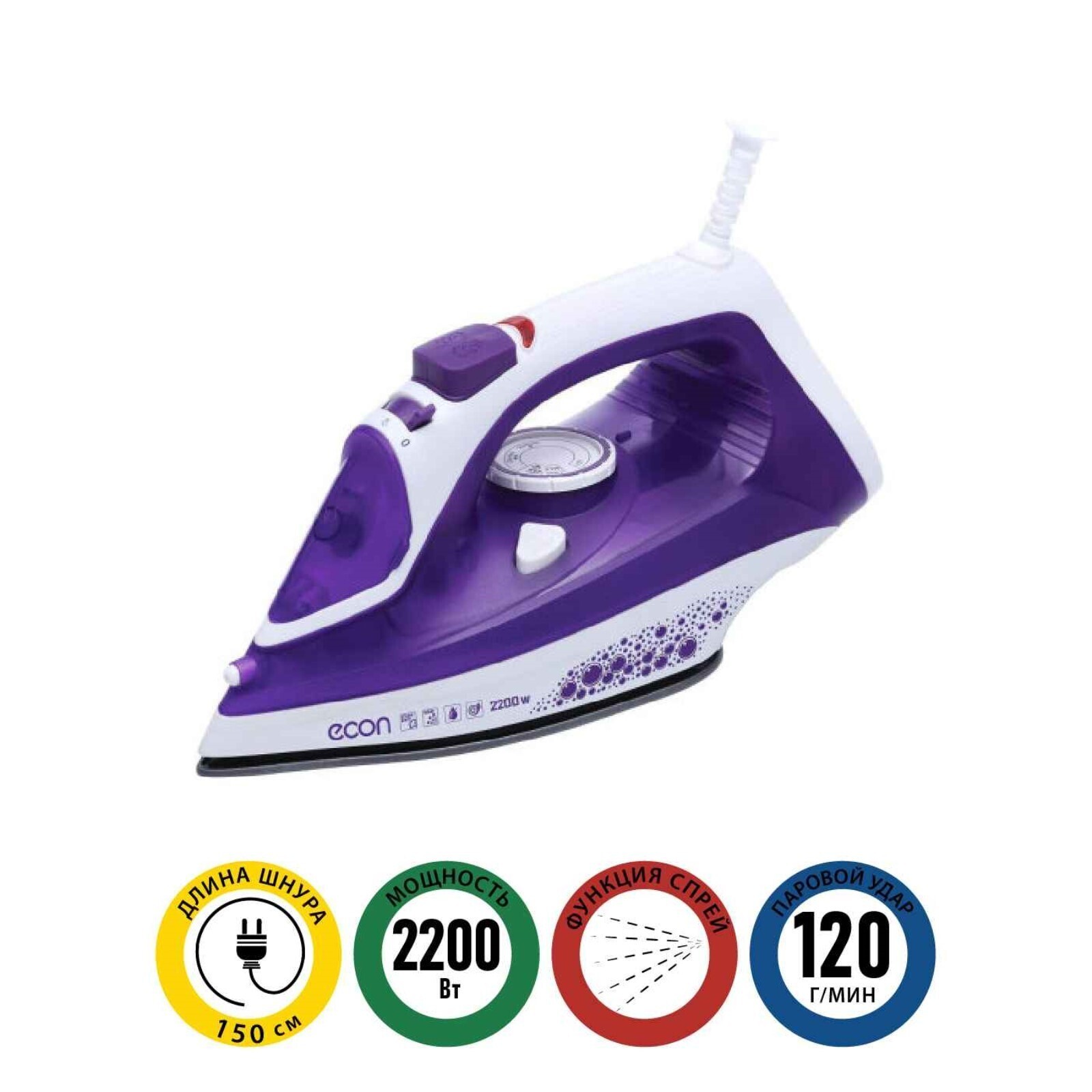 Утюг Econ ECO-BI2201, 2200Вт, керамическая подошва, 40 г/мин, 300 мл, цвет фиолетовый