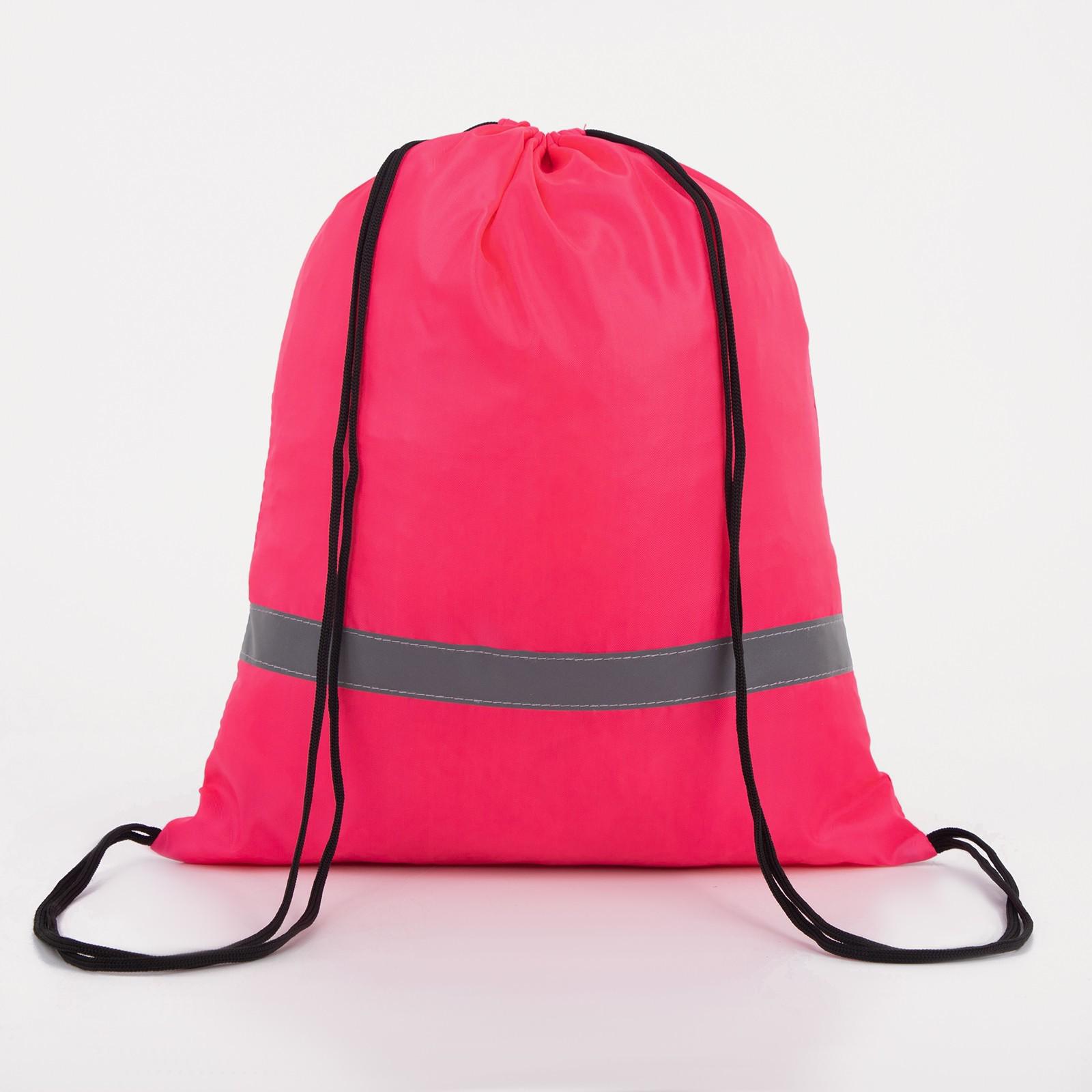 Мешок для обуви на шнурке, светоотражающая полоса, цвет розовый