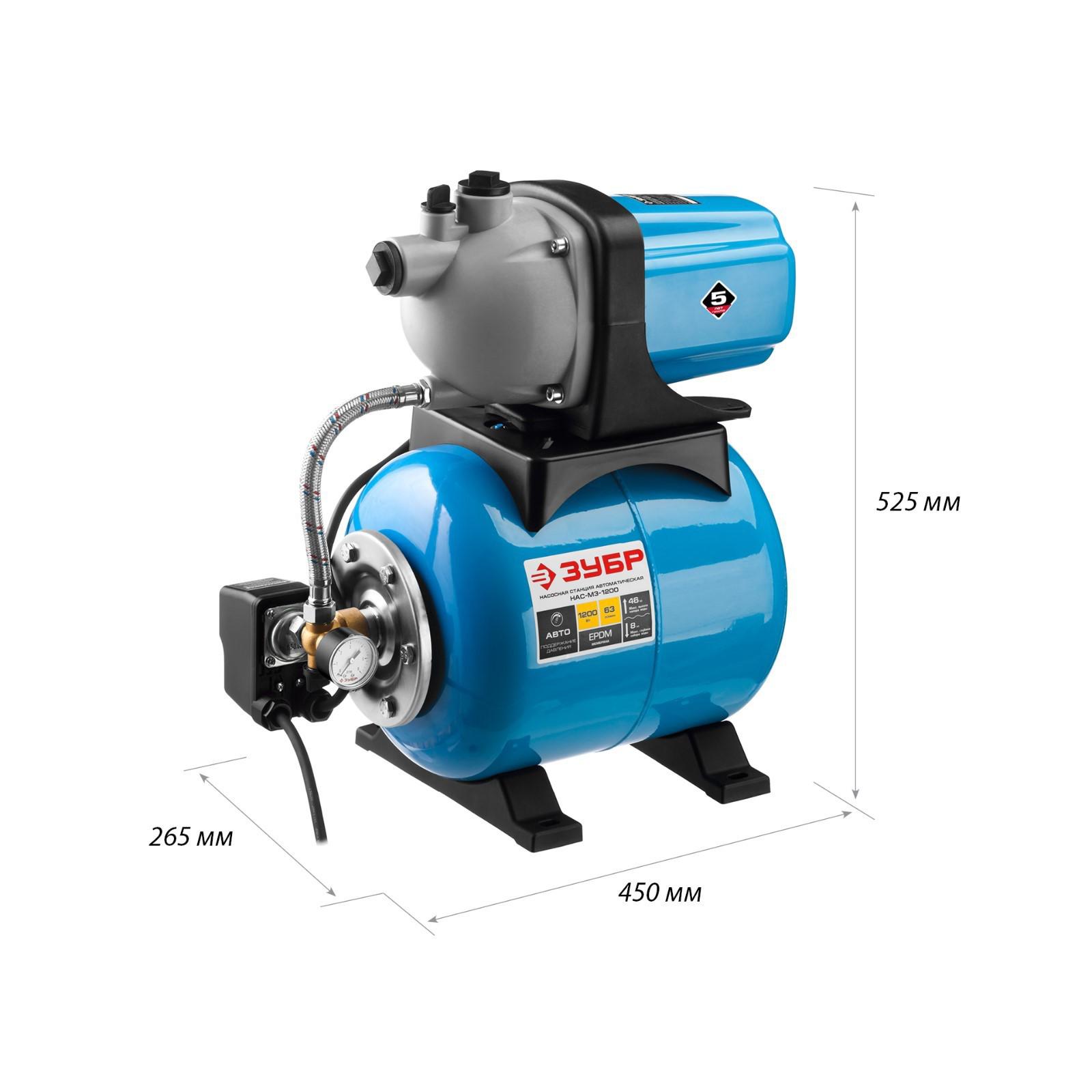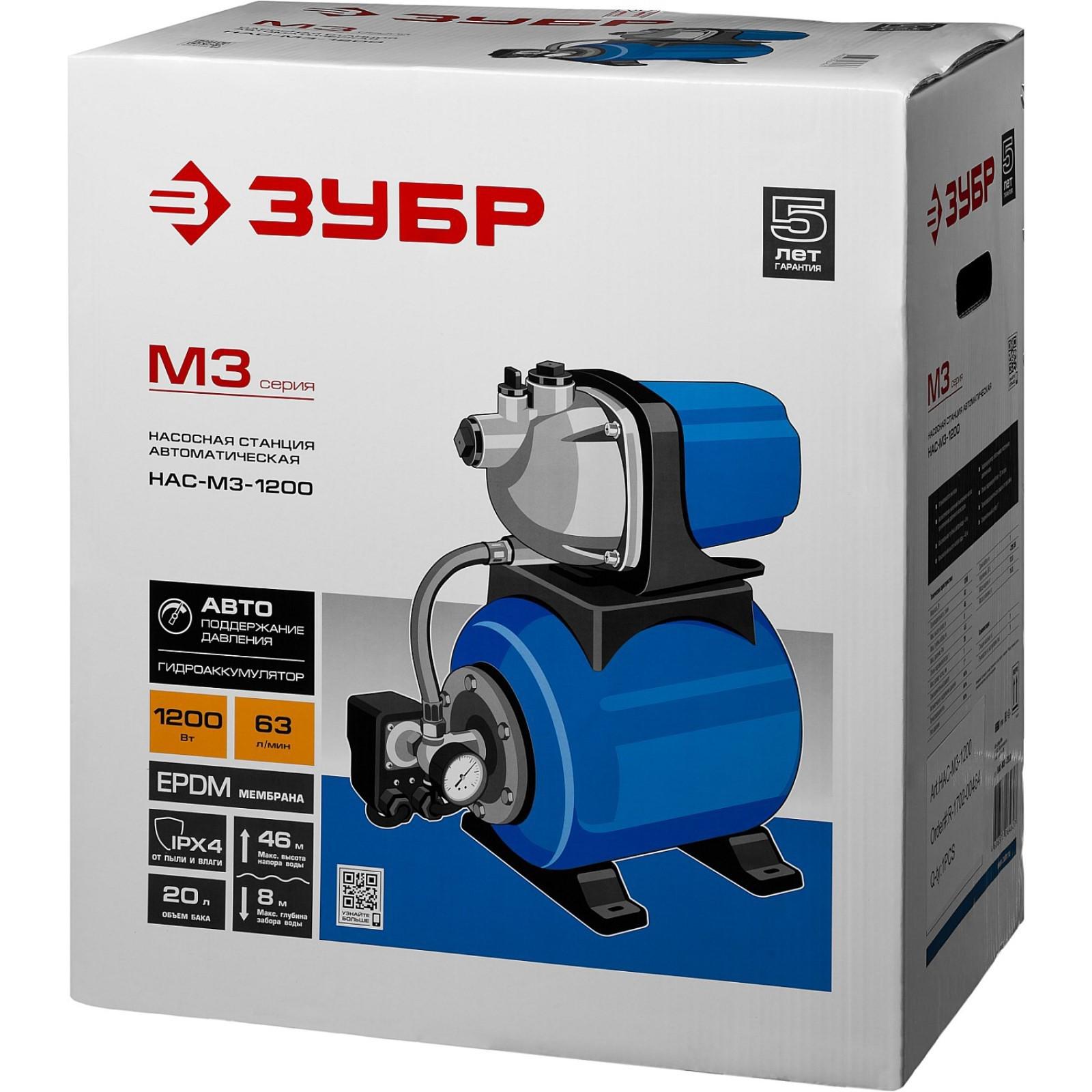 Насосная станция "ЗУБР" НАС-М3-1200, 1200 Вт, 63 л/мин, напор 46 м, бак 20 л