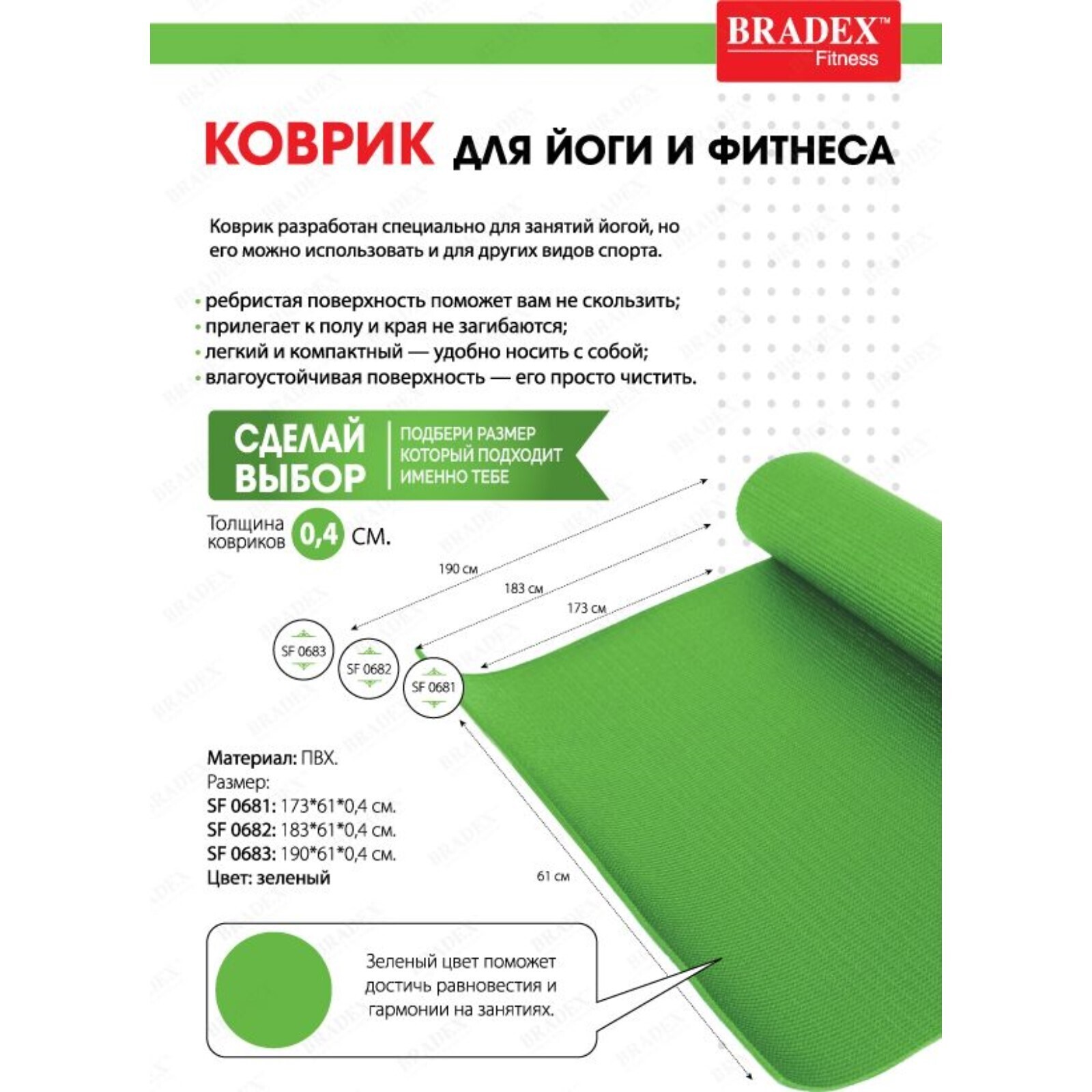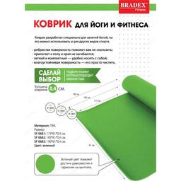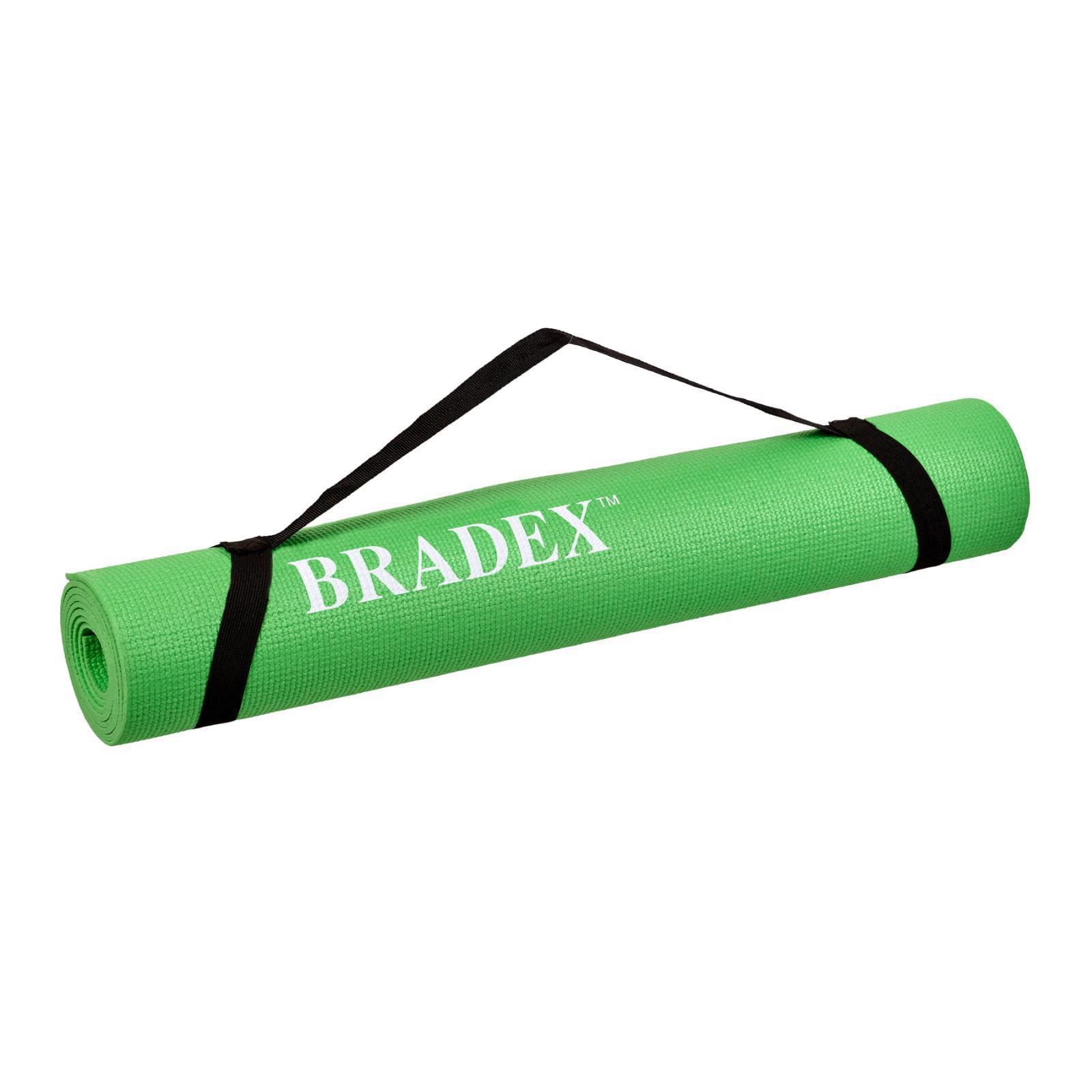 Коврик для йоги и фитнеса Bradex SF 0694, 183х61х0,4 см, зеленый с переноской
