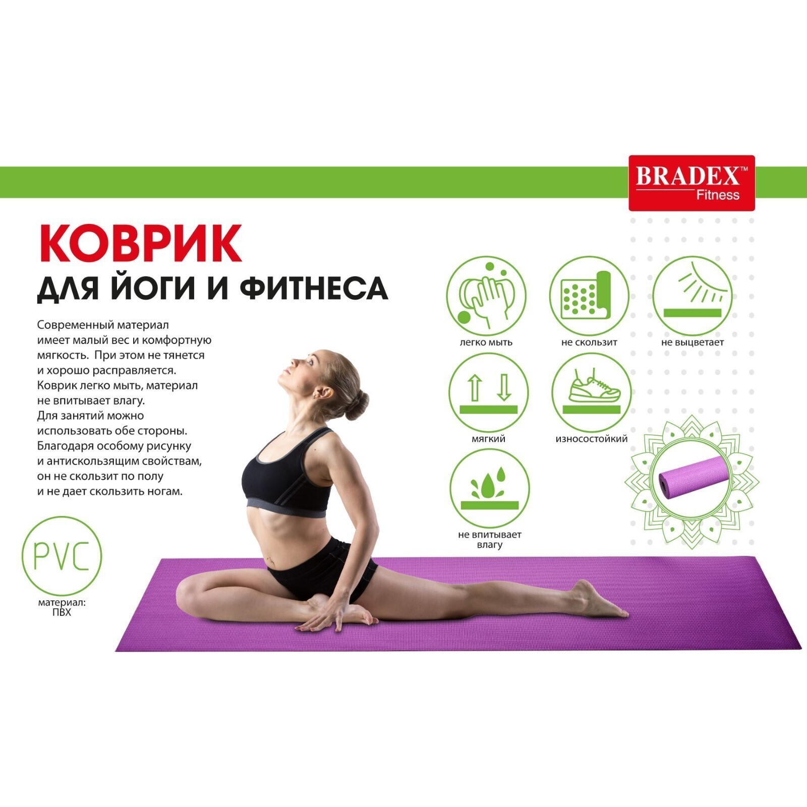 Коврик для йоги и фитнеса Bradex SF 0690, 173х61х0,6 см, двухслойный фиолетовый