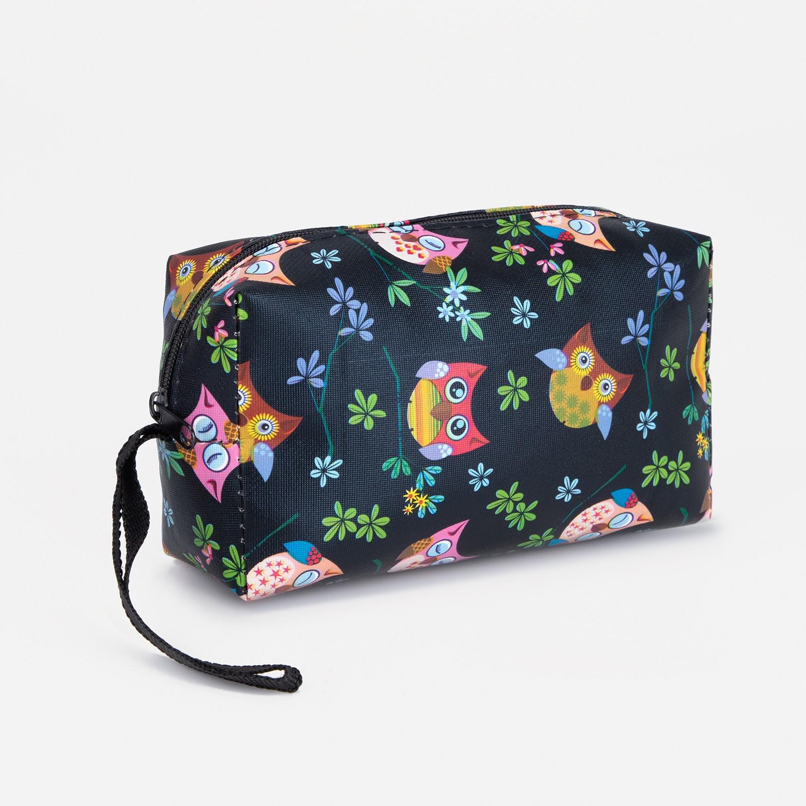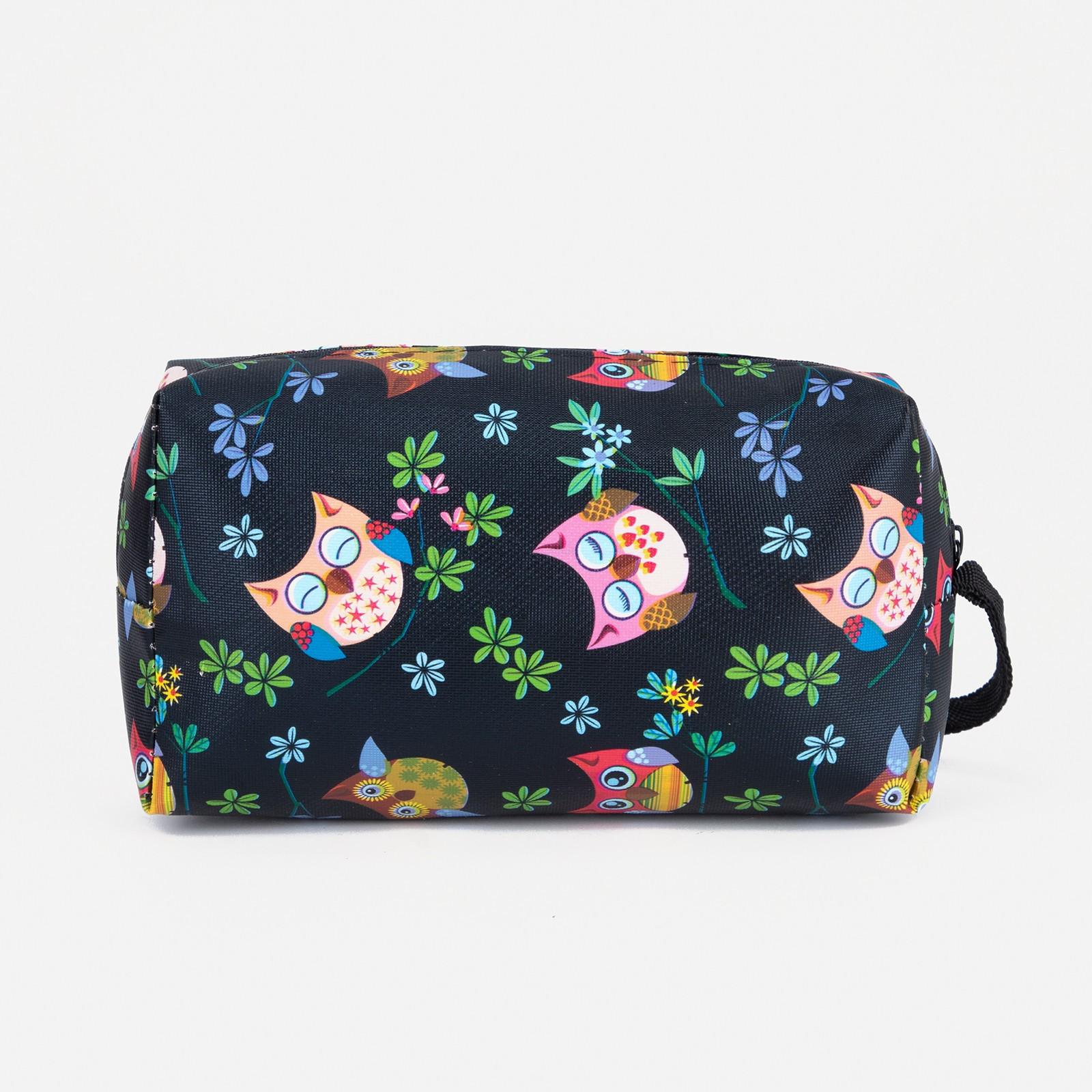 Косметичка дор Совы,16*5*10см, отд на молнии, с ручкой, черный