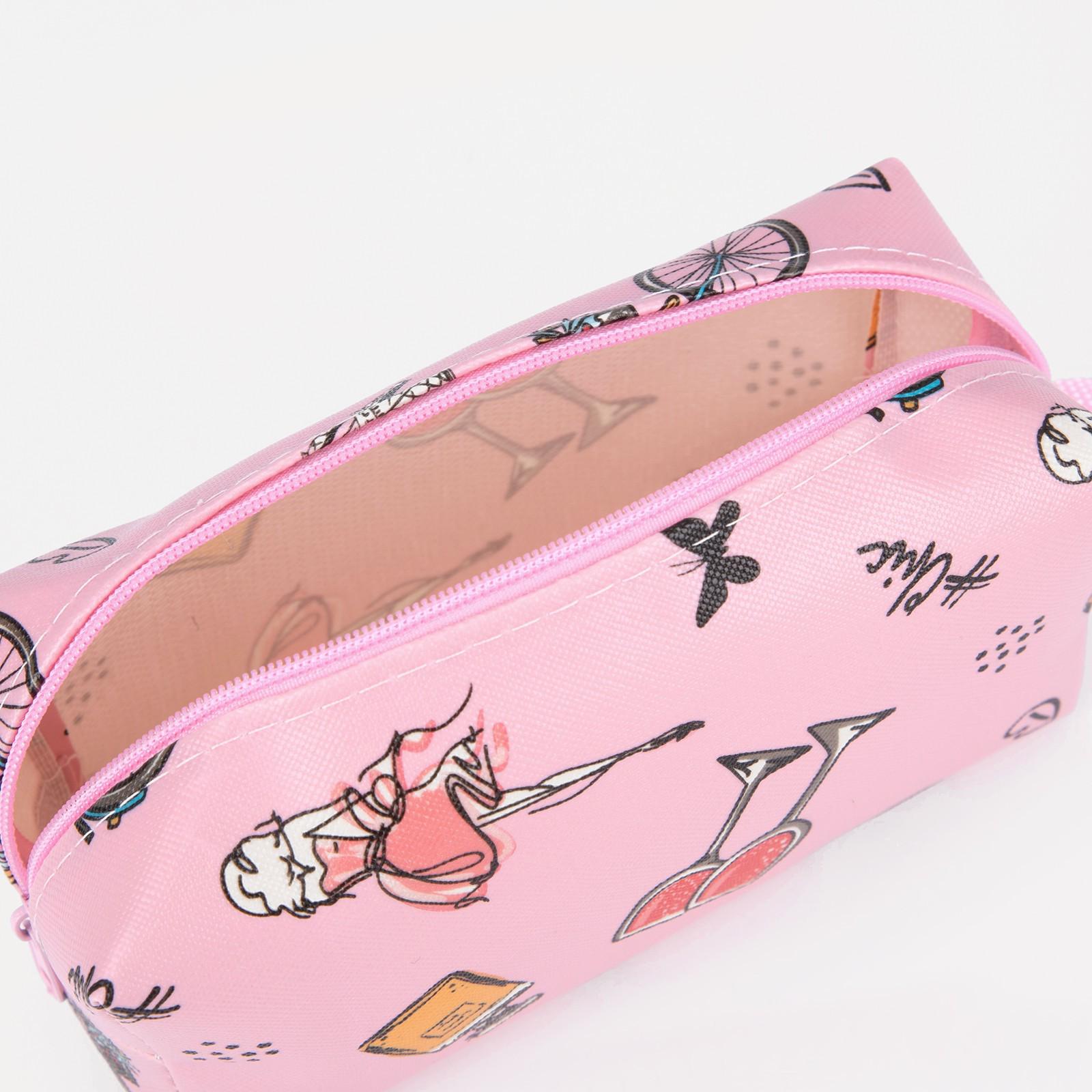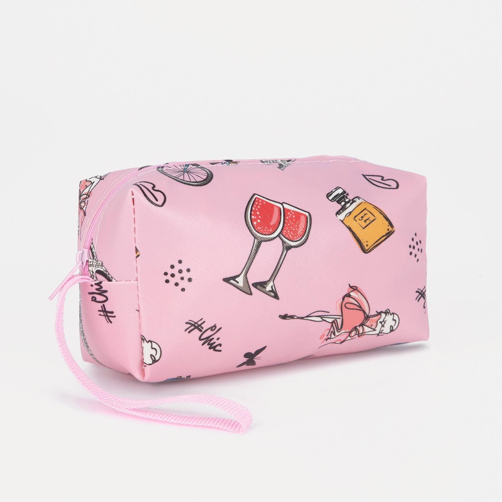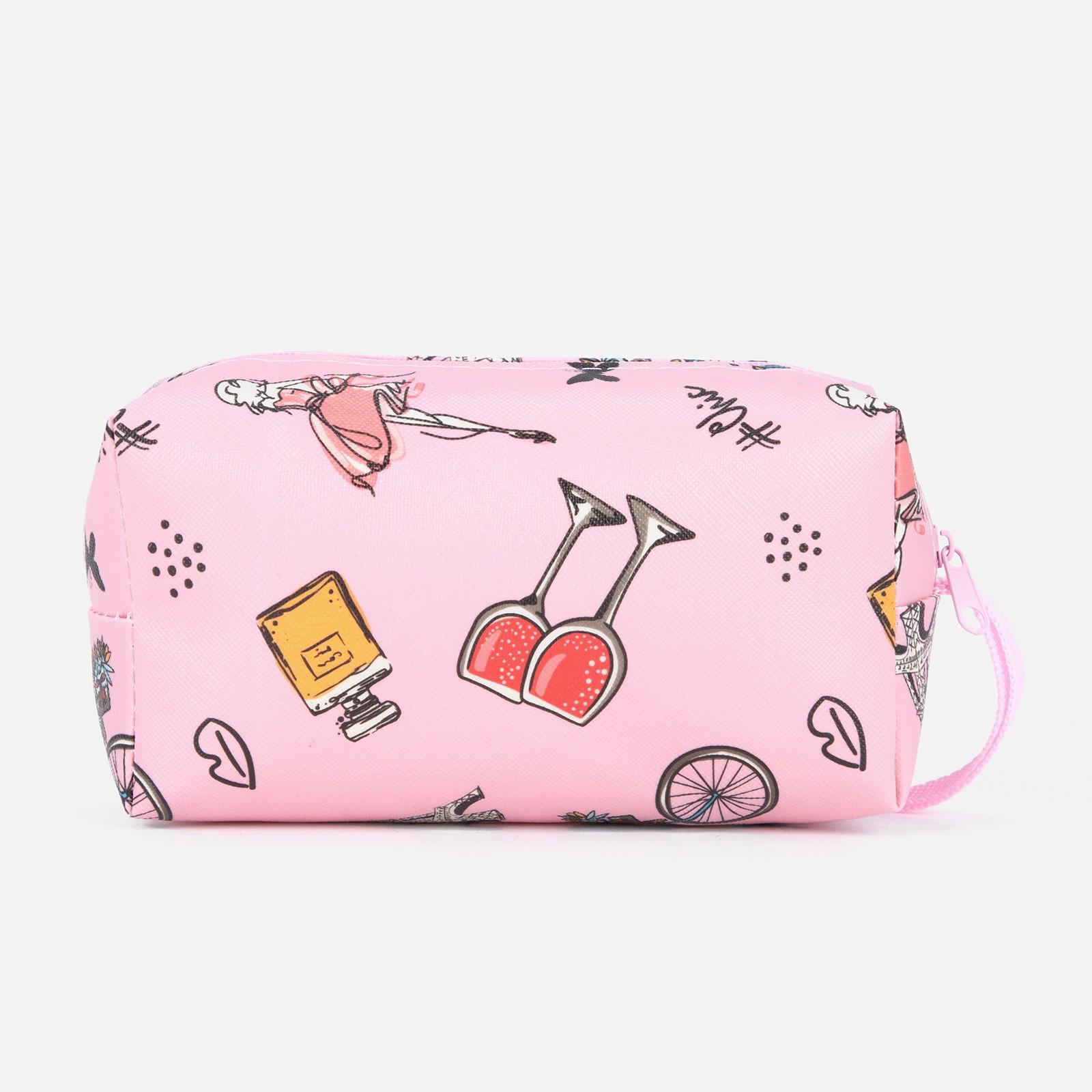 Косметичка дор Города,16*5*10см, отд на молнии, с ручкой, розовый