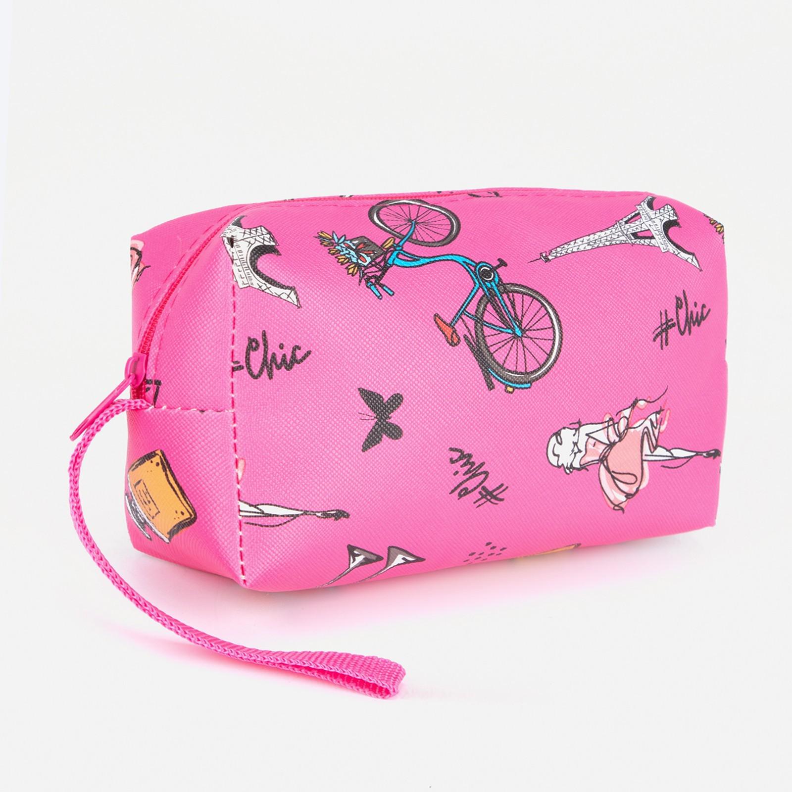 Косметичка дор Города,16*5*10см, отд на молнии, с ручкой, малиновый