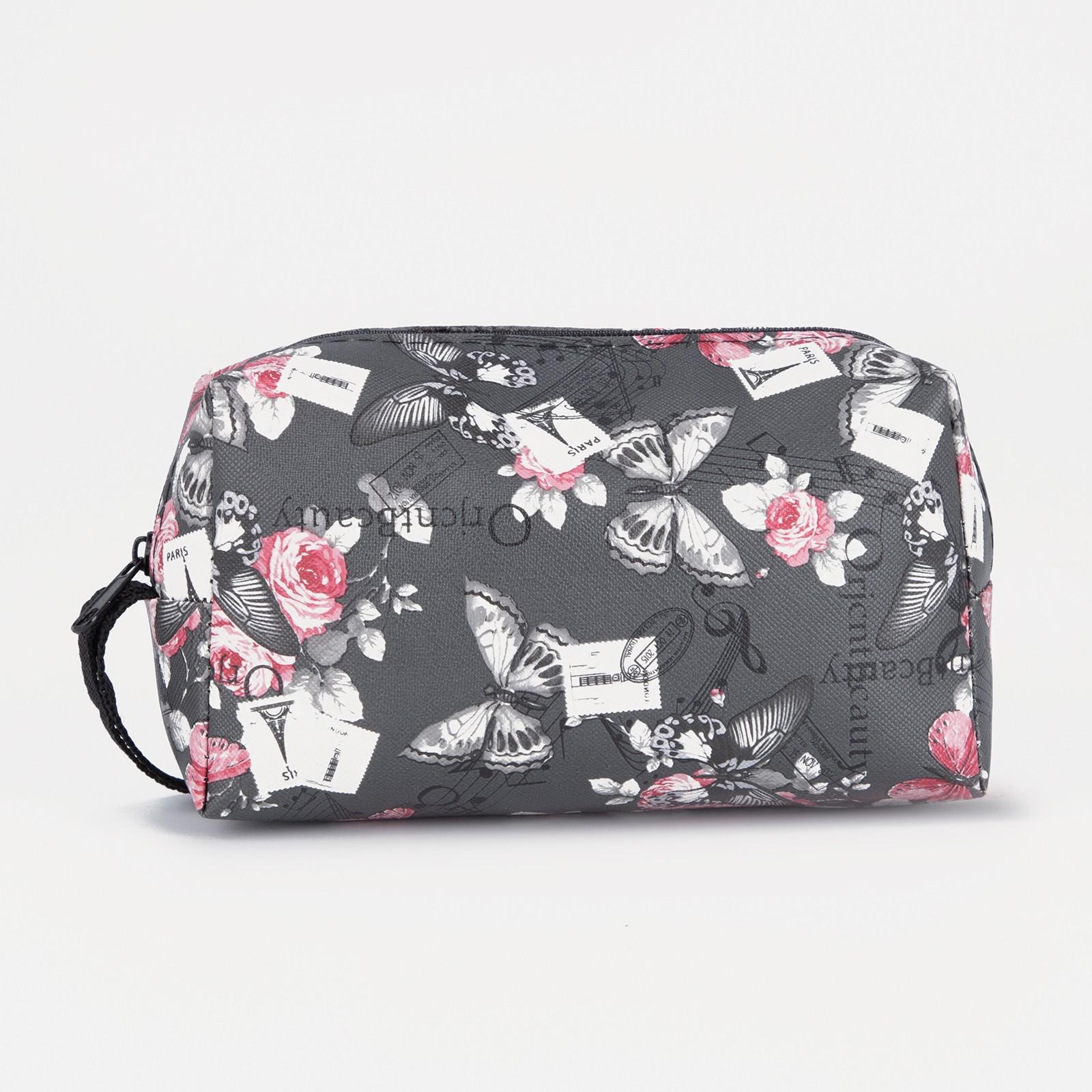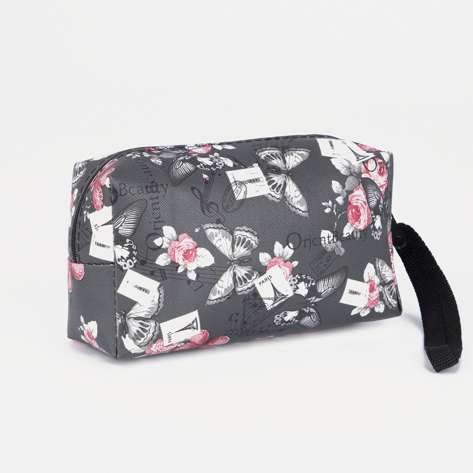 Косметичка дор Бабочки,16*5*10см, отд на молнии, с ручкой, черный