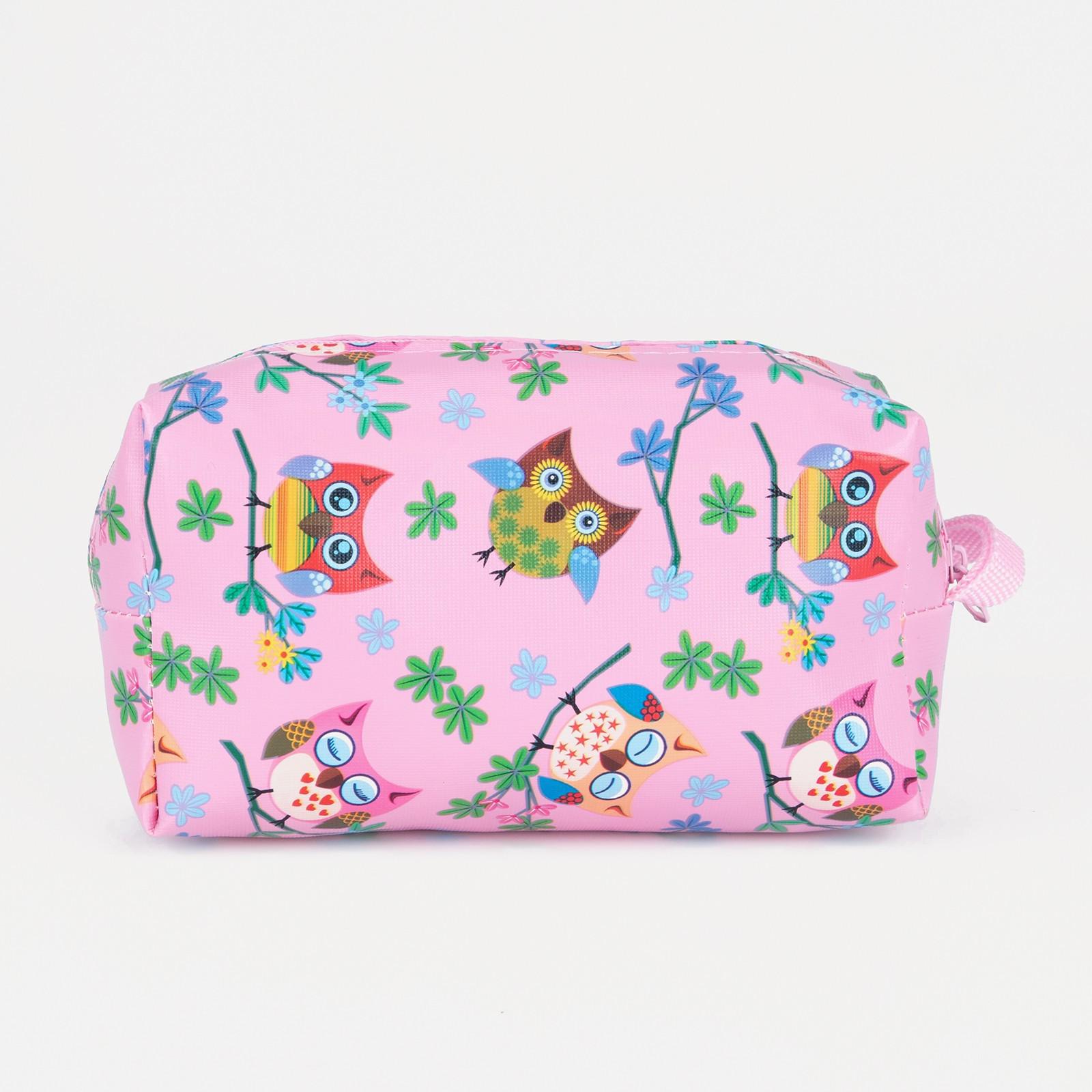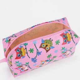 Косметичка дор Совы,16*5*10см, отд на молнии, с ручкой, розовый