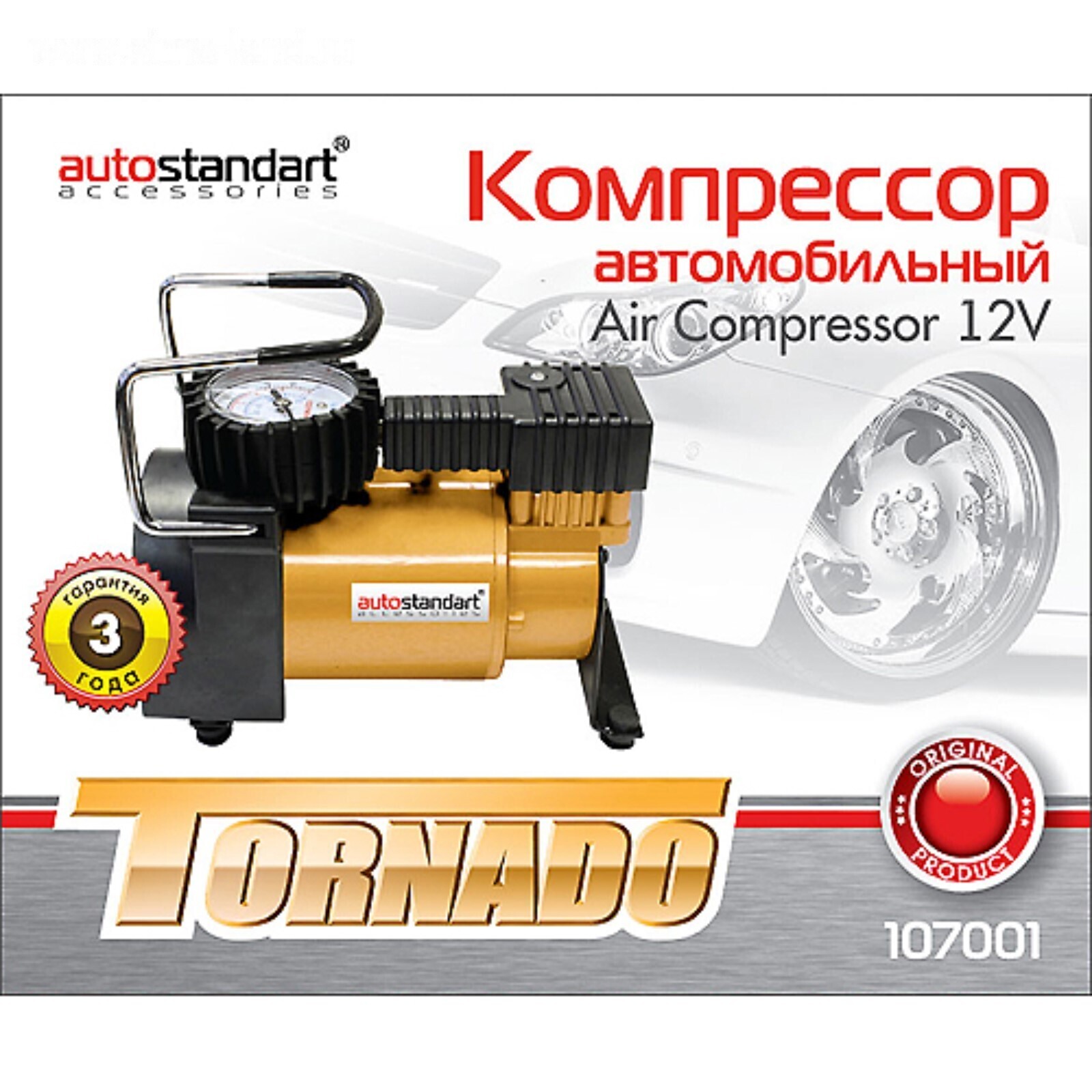 Компрессор автомобильный Торнадо, 12В, 30 л/мин., 110Вт, в прикуриватель
