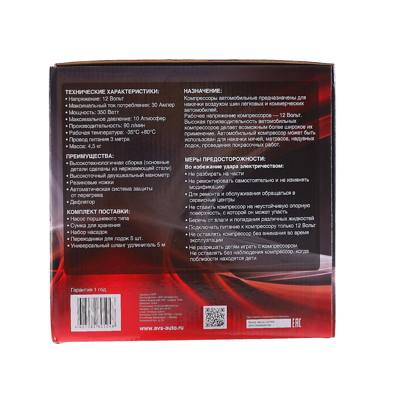 Компрессор автомобильный AVS KS900, 90 л/мин, 10 Атм, металлический