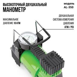 Встроенный высокоточный манометр измеряет давление в ATM и PSI. Питание компрессора осуществляется от прикуривателя. Компрессор ALLIGATOR AL-350 оптимален по своим характеристикам для владельцев автомобилей малого и среднего класса, а также для мотоциклистов и велосипедистов. Работает при температуре от -20 до +50 °С.