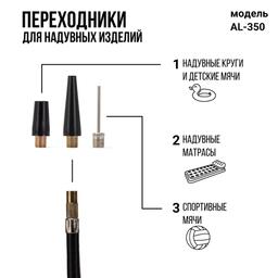 Компактный поршневой компрессор универсального назначения. Поршень диаметром 30 мм выдает производительность 30 л/мин при мощности электромотора в 120 Вт. Максимальное давление компрессора AL-350 — 10 АТМ. Модель рассчитана на шины диаметром 14-16 дюймов, а также велосипедные шины. Набор переходников для мячей и матрацев удобен во время поездок на дачу или выездах на природу. Корпус модели сделан из высококачественного металла.