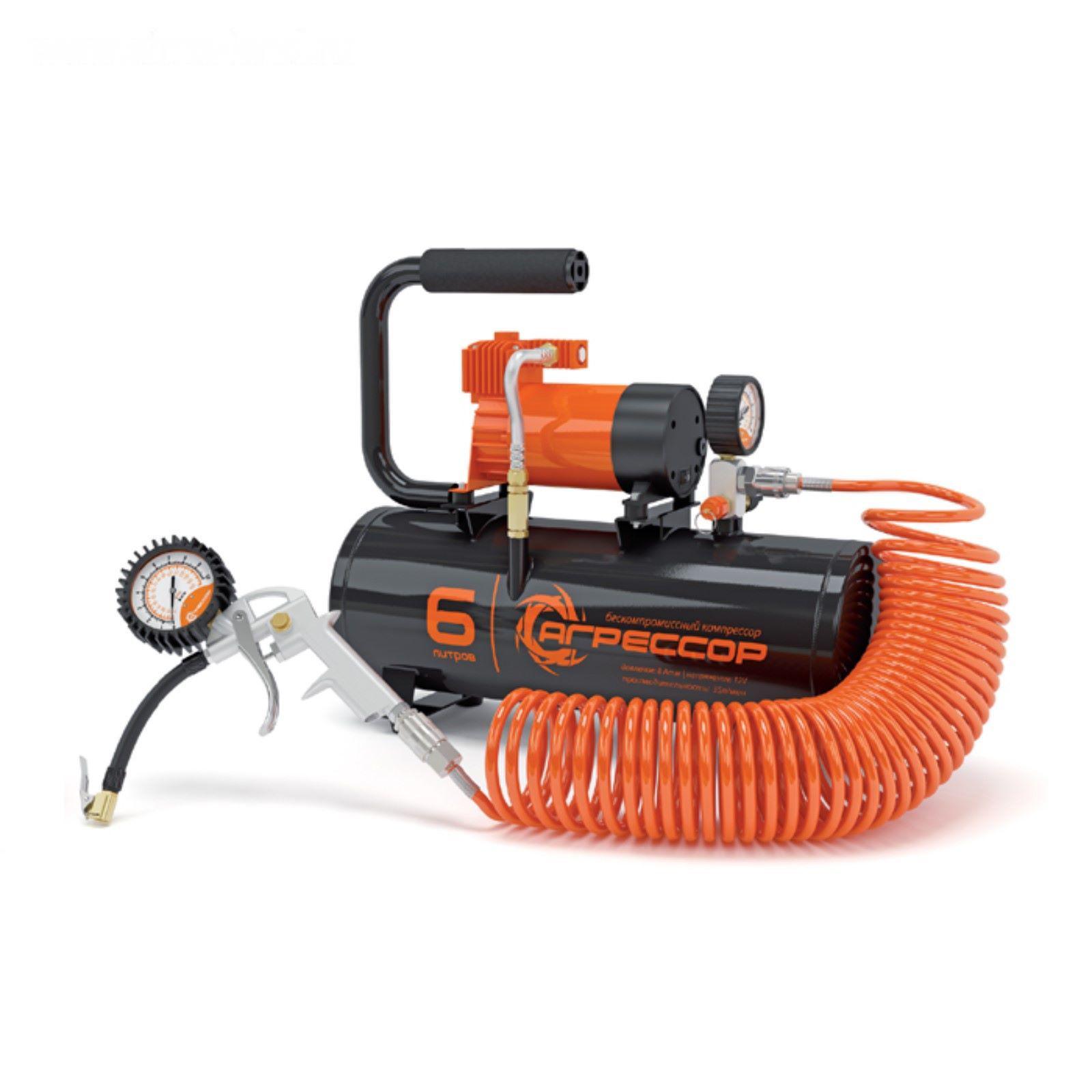 Компрессор автомобильный "Агрессор", металлический, ресивер 6 л, 12V, 180W, шланг 10 м, AGR-6LT
