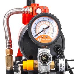 Автомобильный металлический компрессор с ресивером. Компрессор питается от прикуривателя или аккумулятора. 10-метровый шланг сделан из полиуретана. Поршень насоса оснащен уплотнительным кольцом из гибкого жаропрочного тефлона. Производительность поршневого компрессора составляет 35 л/мин, это позволяет заполнить ресивер сжатым воздухом за 4 минуты. При достижении в ресивере максимально допустимого давления компрессор автоматически отключается и включается, когда давление в ёмкости начинает снижаться. Подача воздуха в шину или в пневмоинструмент осуществляется непосредственно из ресивера. Металлический корпус компрессора устойчив к коррозии и эффективно охлаждается во время работы. Поршень двигателя оснащён уплотнительным кольцом из гибкого жаропрочного тефлона, которое обеспечивает продолжительную безотказную работу насоса. Для смазки применяется несменяемое силиконовое масло.