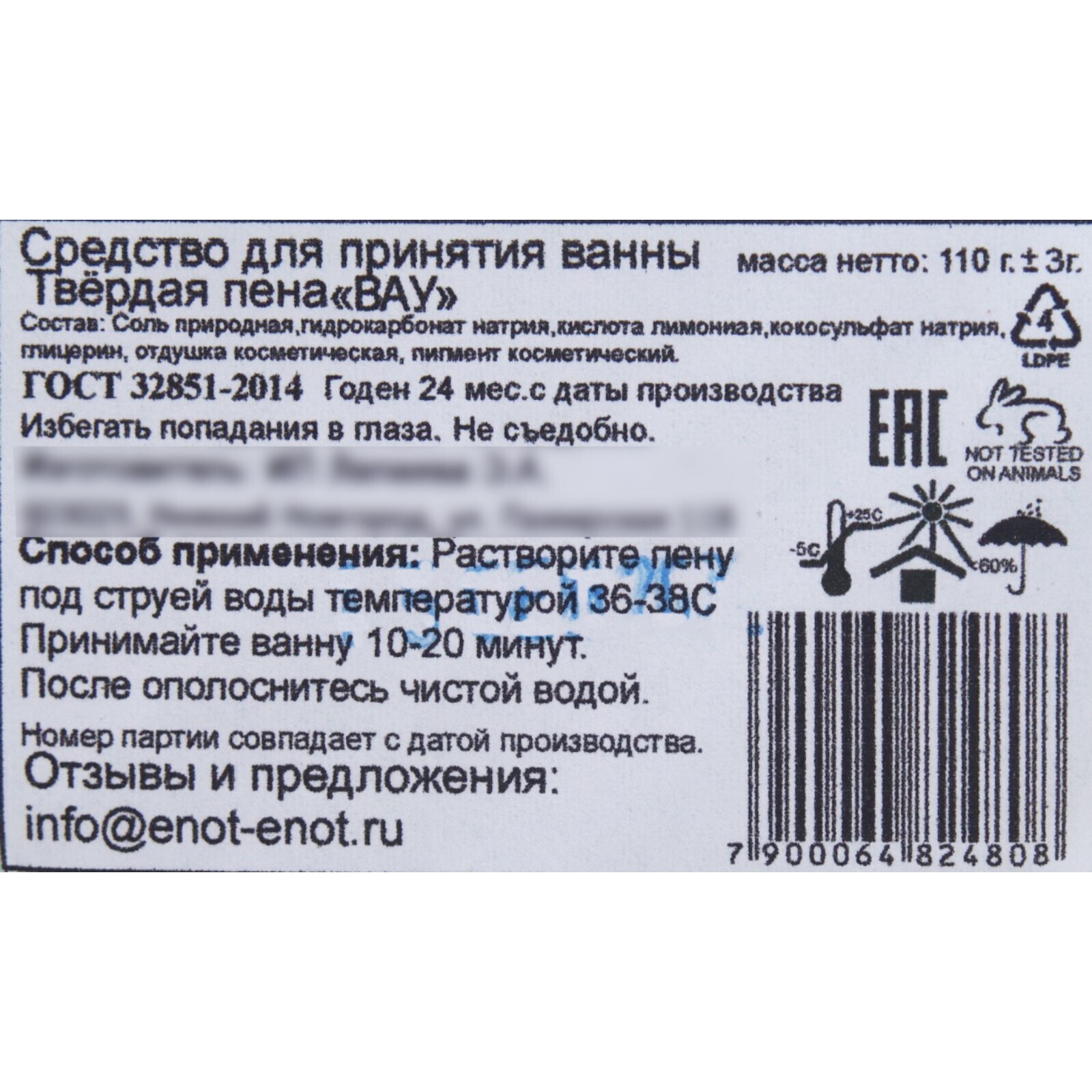 Способ применения: направьте на пену струю теплой воды и дайте ей раствориться.
