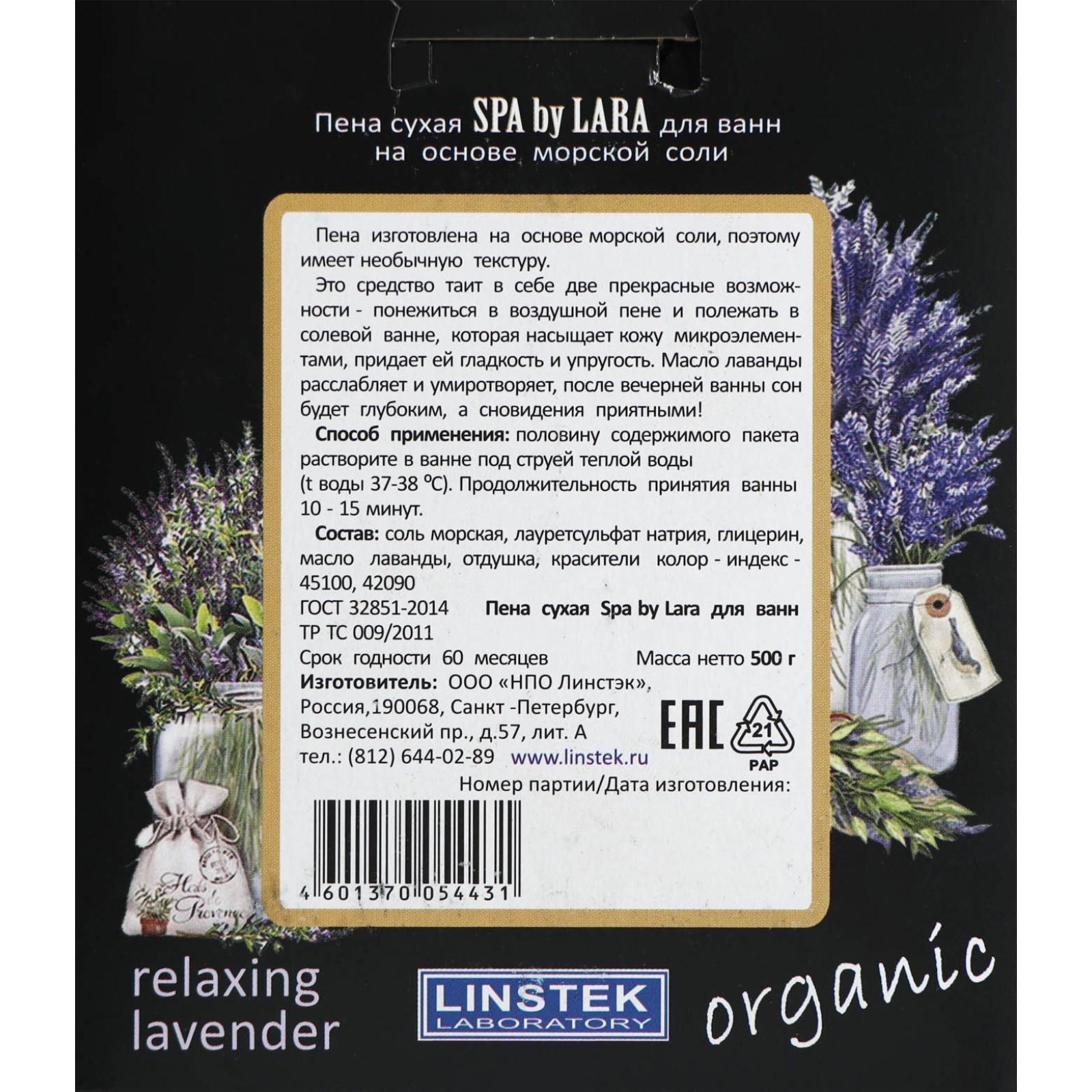 Пена сухая для ванн Spa by Lara, «Лаванда» расслабляющая, 500 г