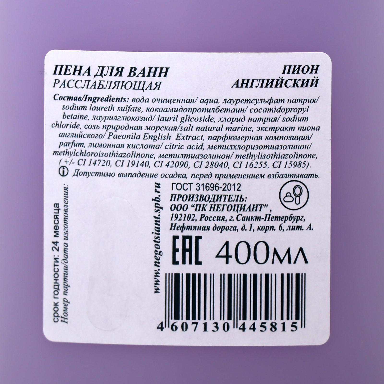 Включенный в состав пены экстракт пиона английского поможет добиться состояния полной релаксации, создаст атмосферу SPA - салона. Пена для ванн с морской солью стимулирует кровообращение, улучшает процессы регенерации клеток, активизирует обмен веществ и деятельность иммунной системы.