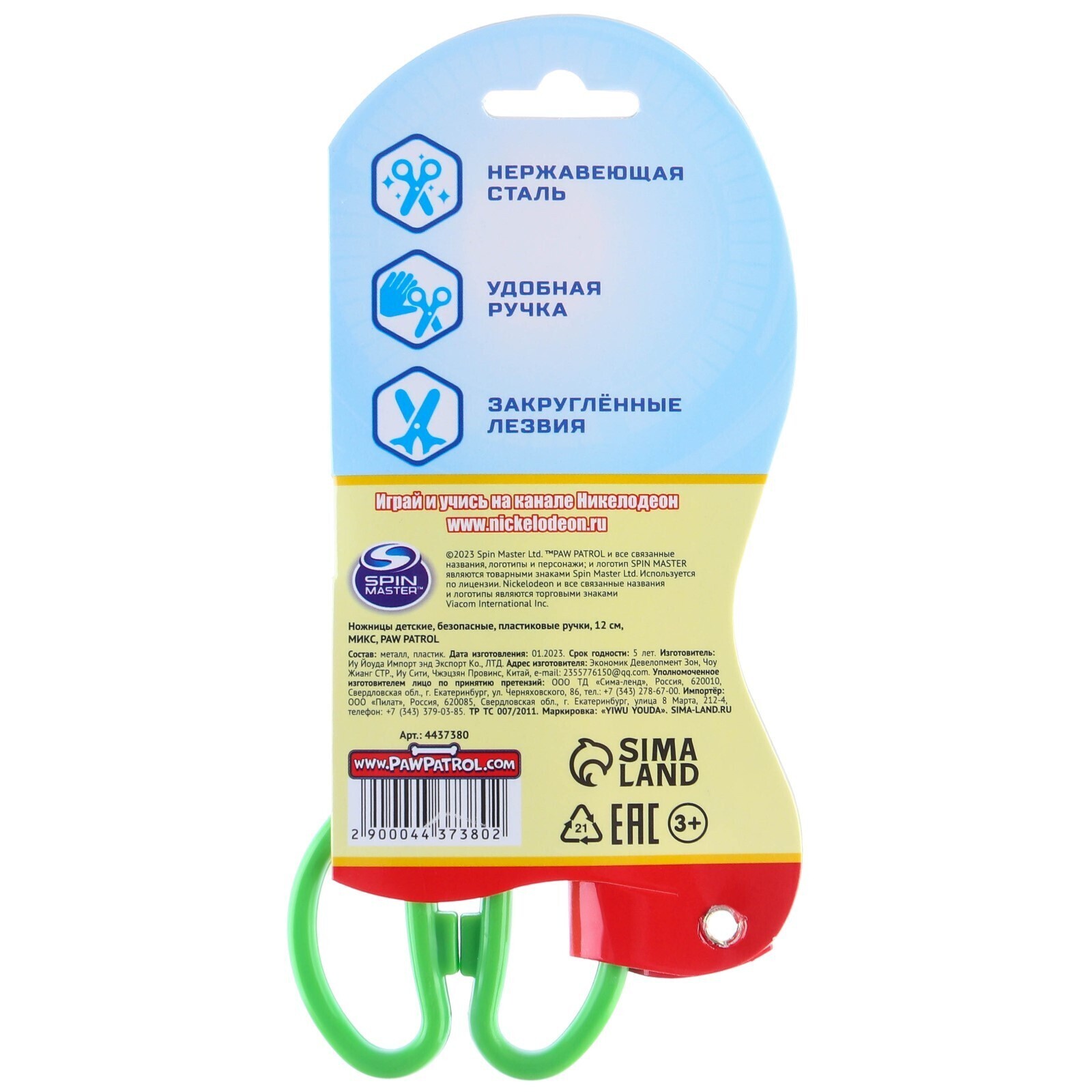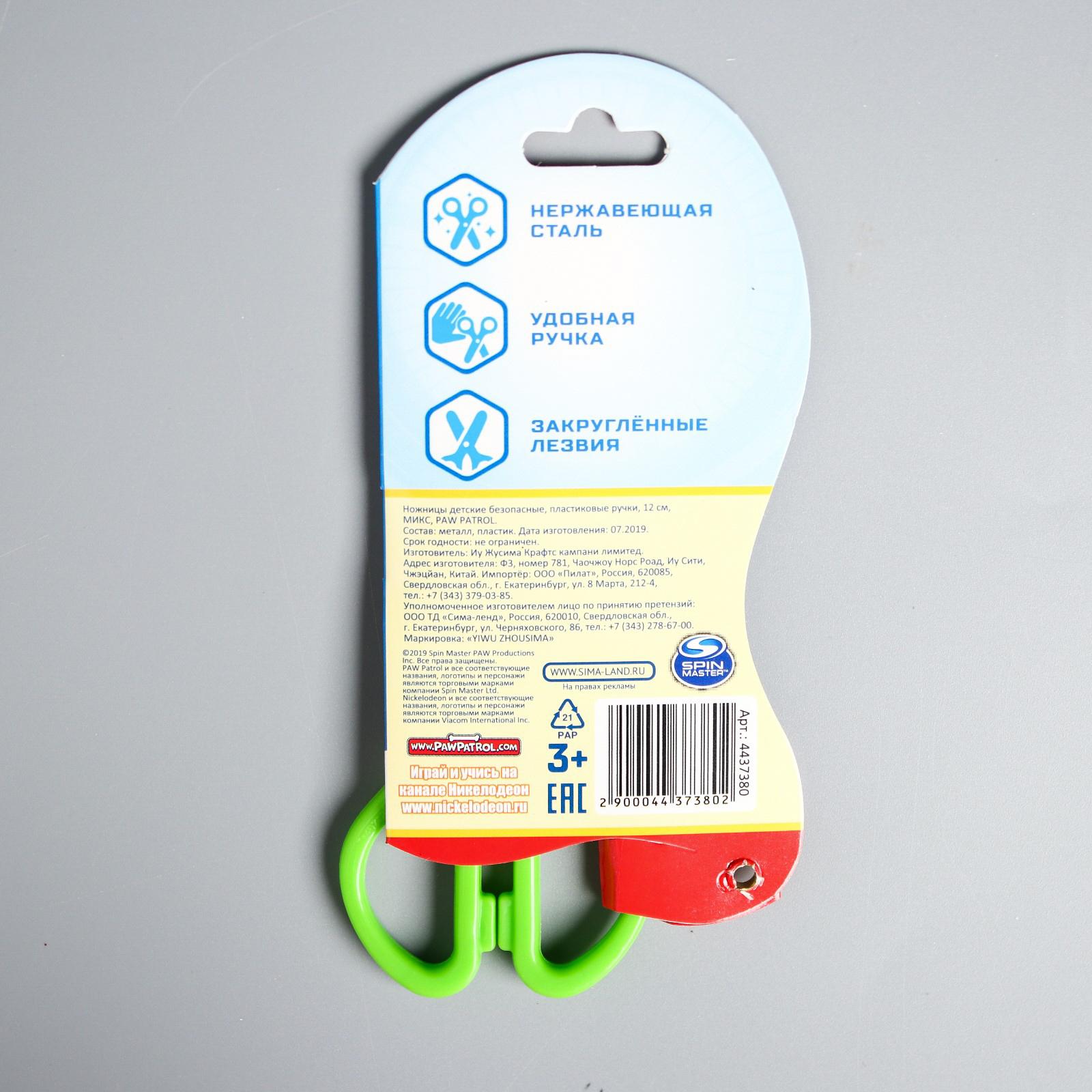 Ножницы детские 12 см, безопасные, пластиковые ручки,МИКС, PAW PATROL