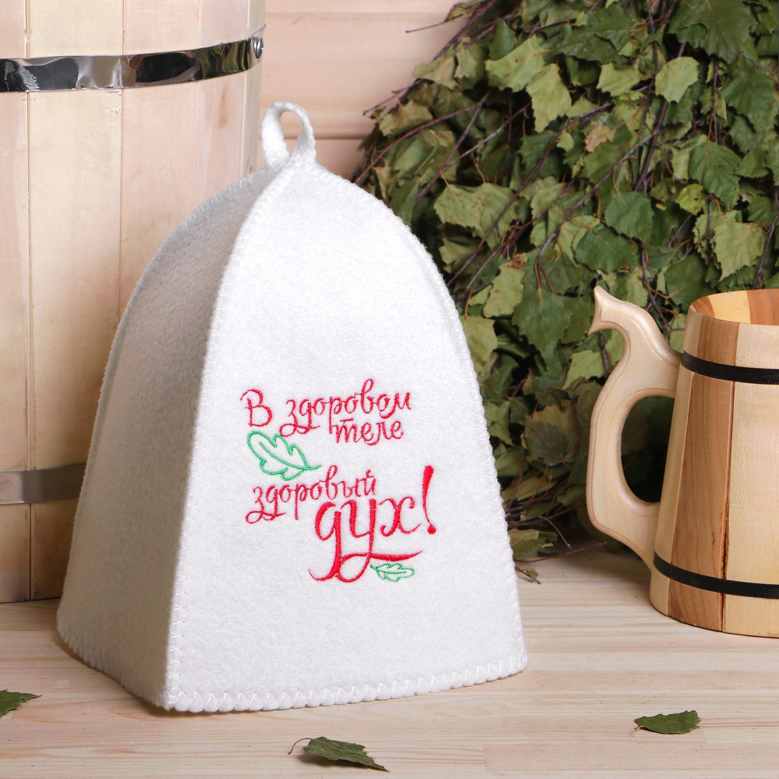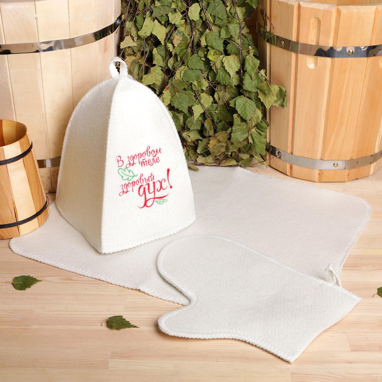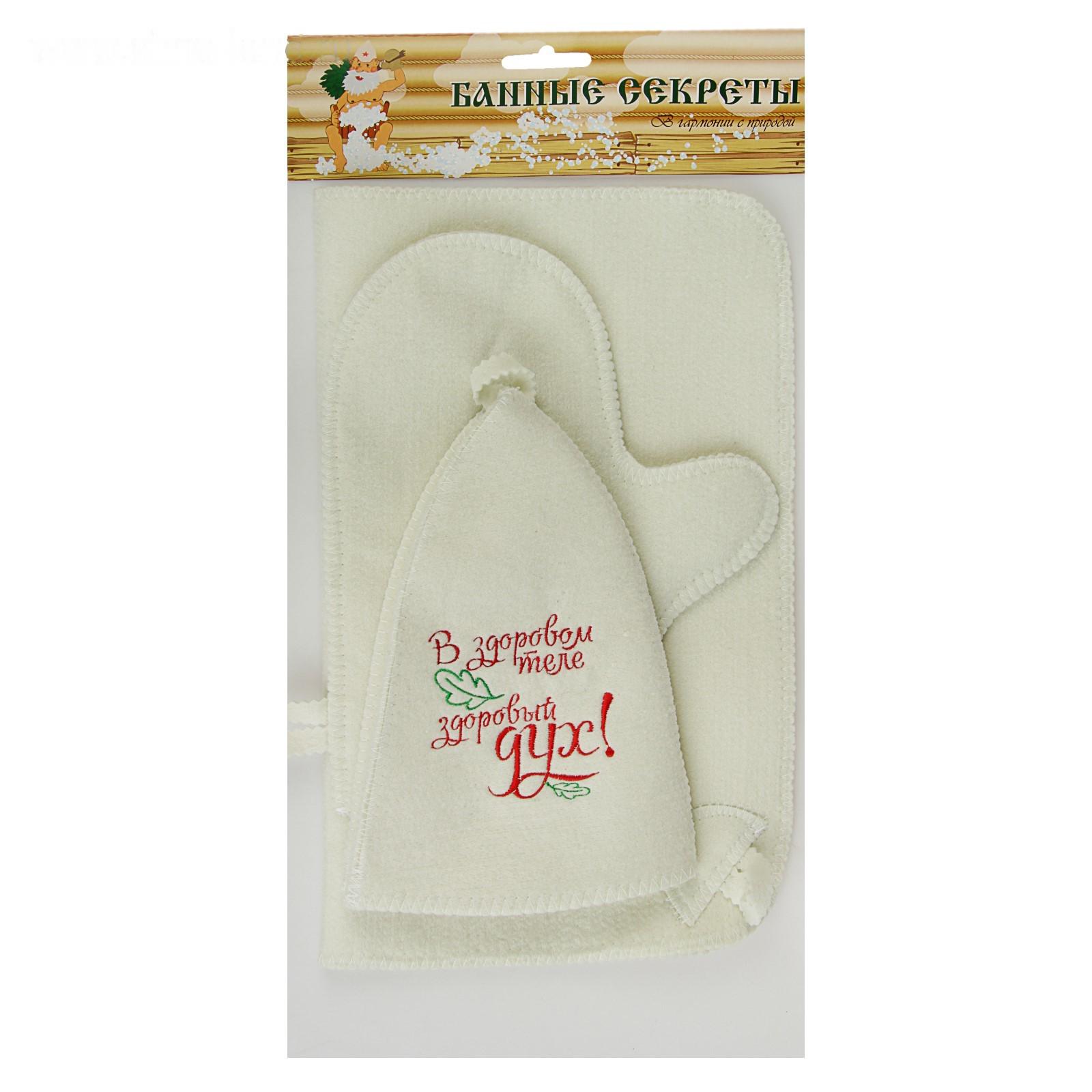 Набор для бани "Здоровый дух" шапка, коврик, рукавица