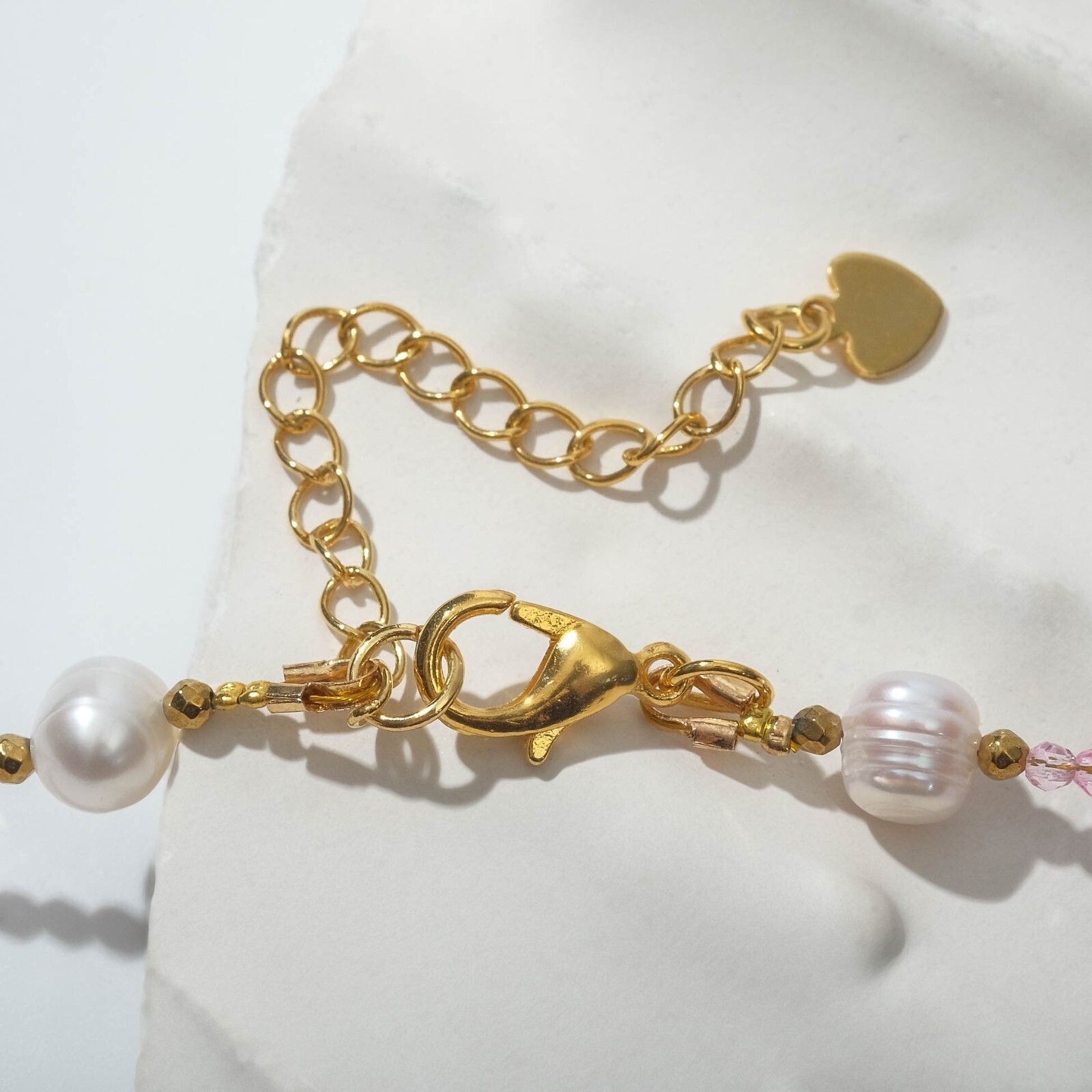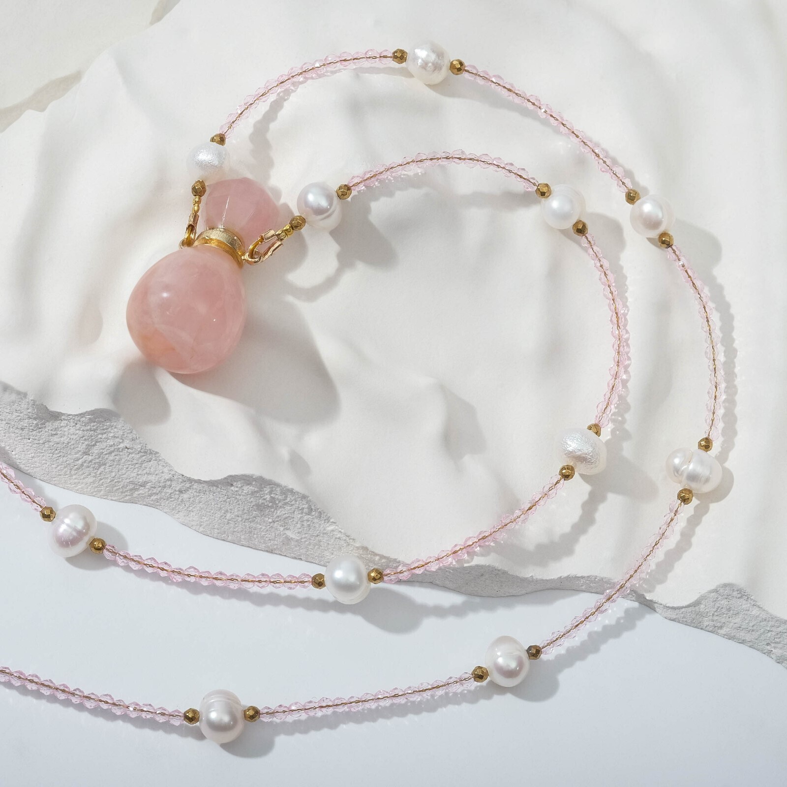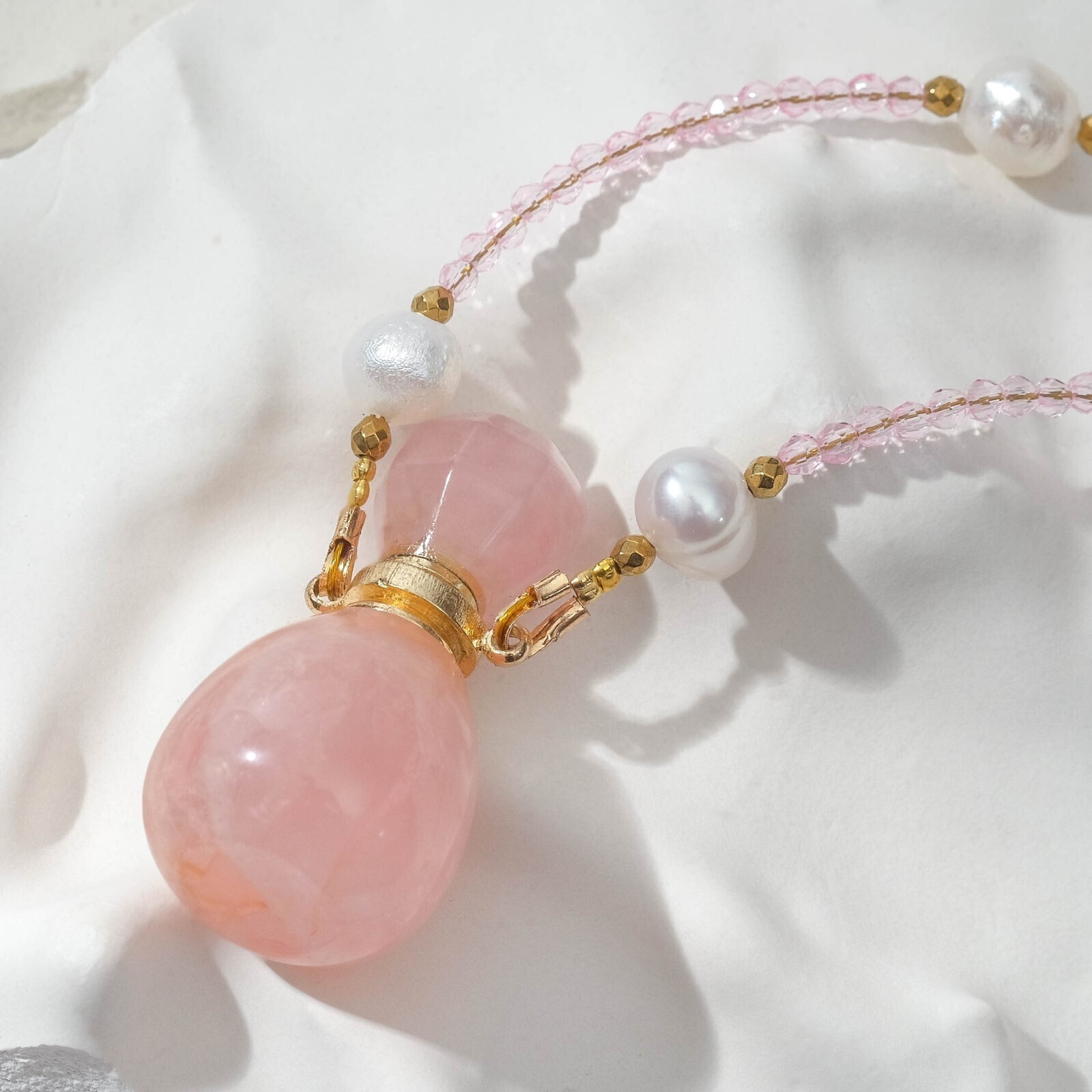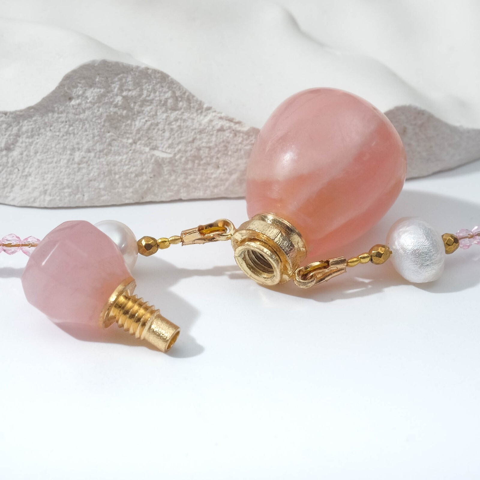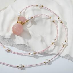 Аромакулон "Кварц розовый" на бусах из шпинели с жемчугом, форма МИКС, 60см