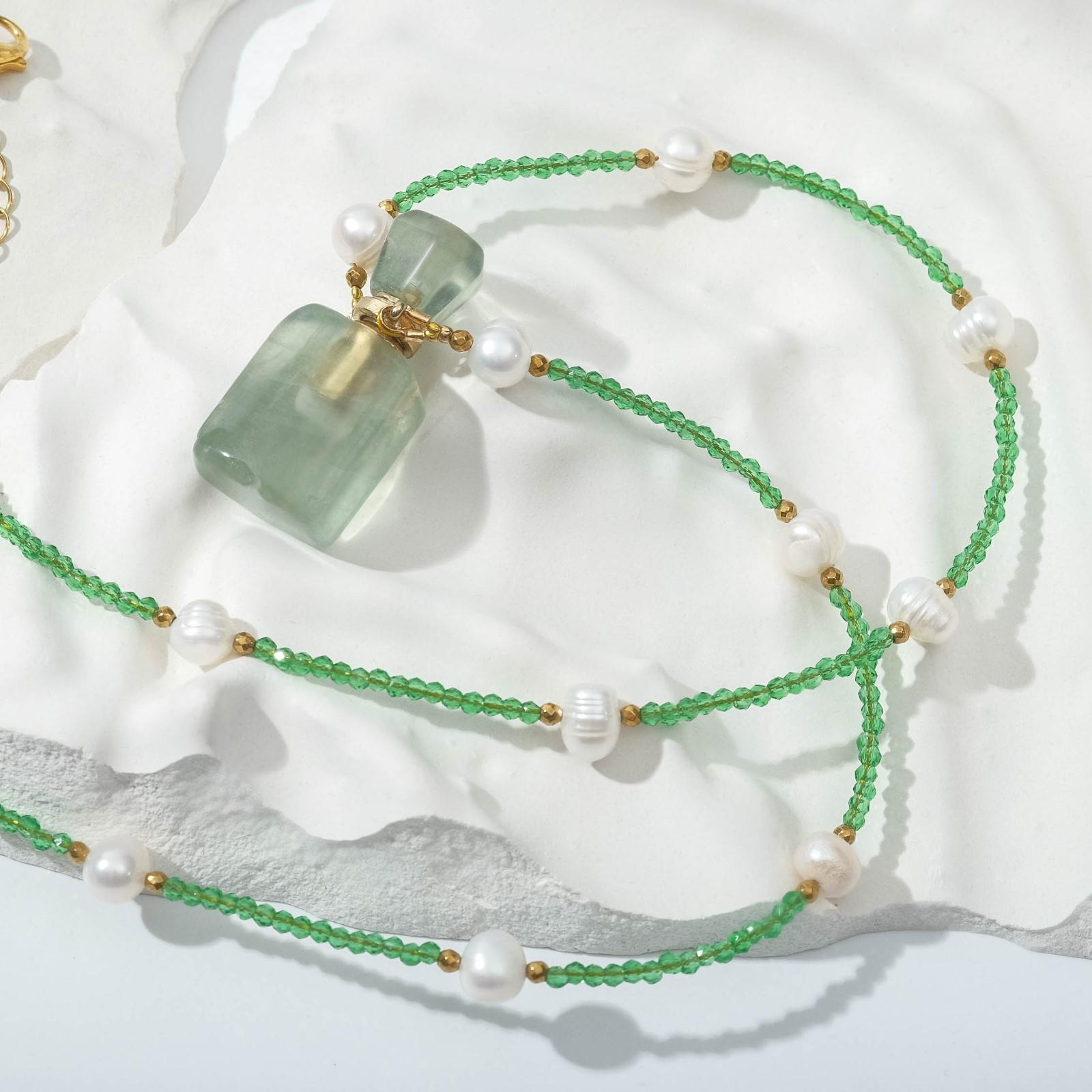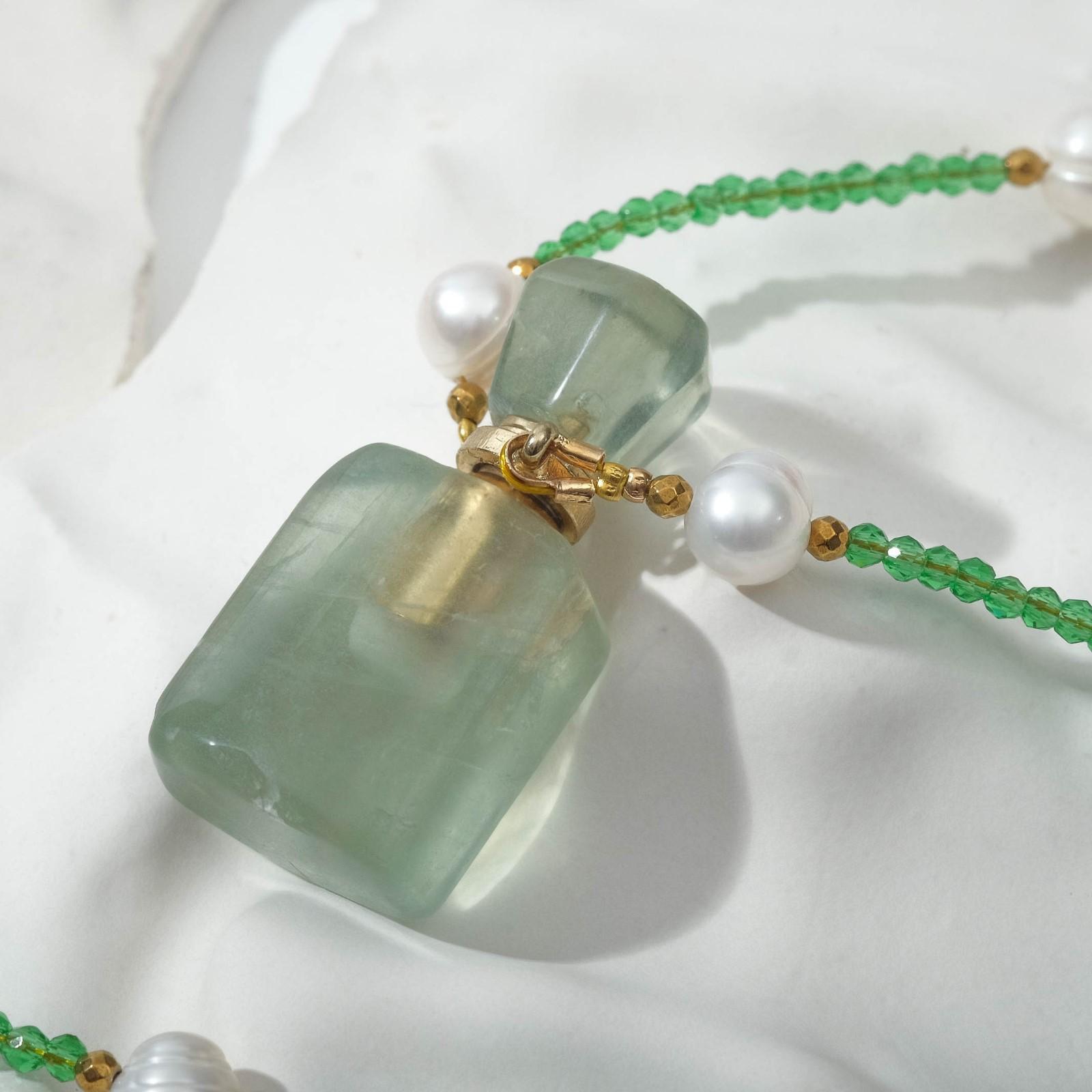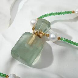 Аромакулон "Флюорит" на бусах из шпинели с жемчугом, форма МИКС, 60см
