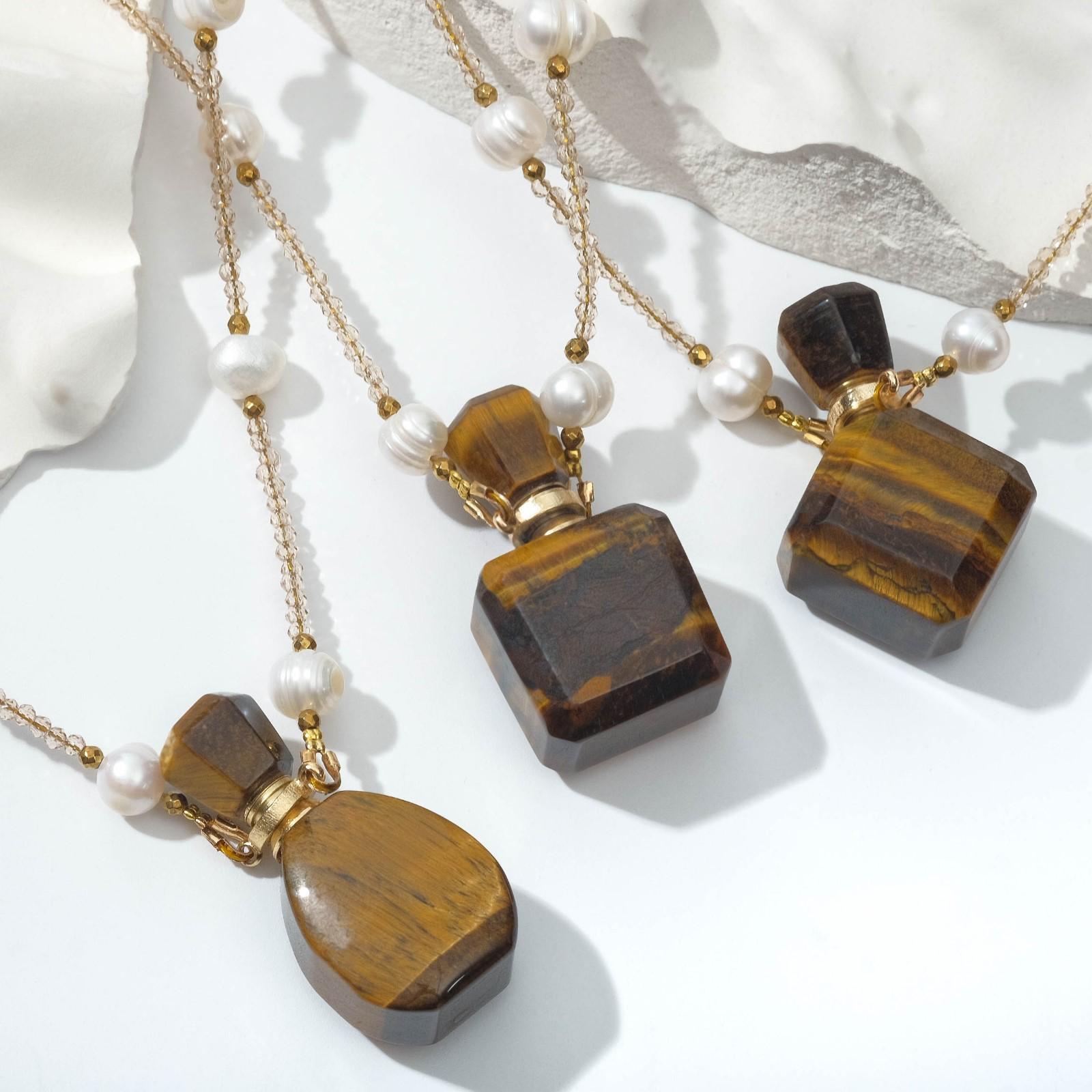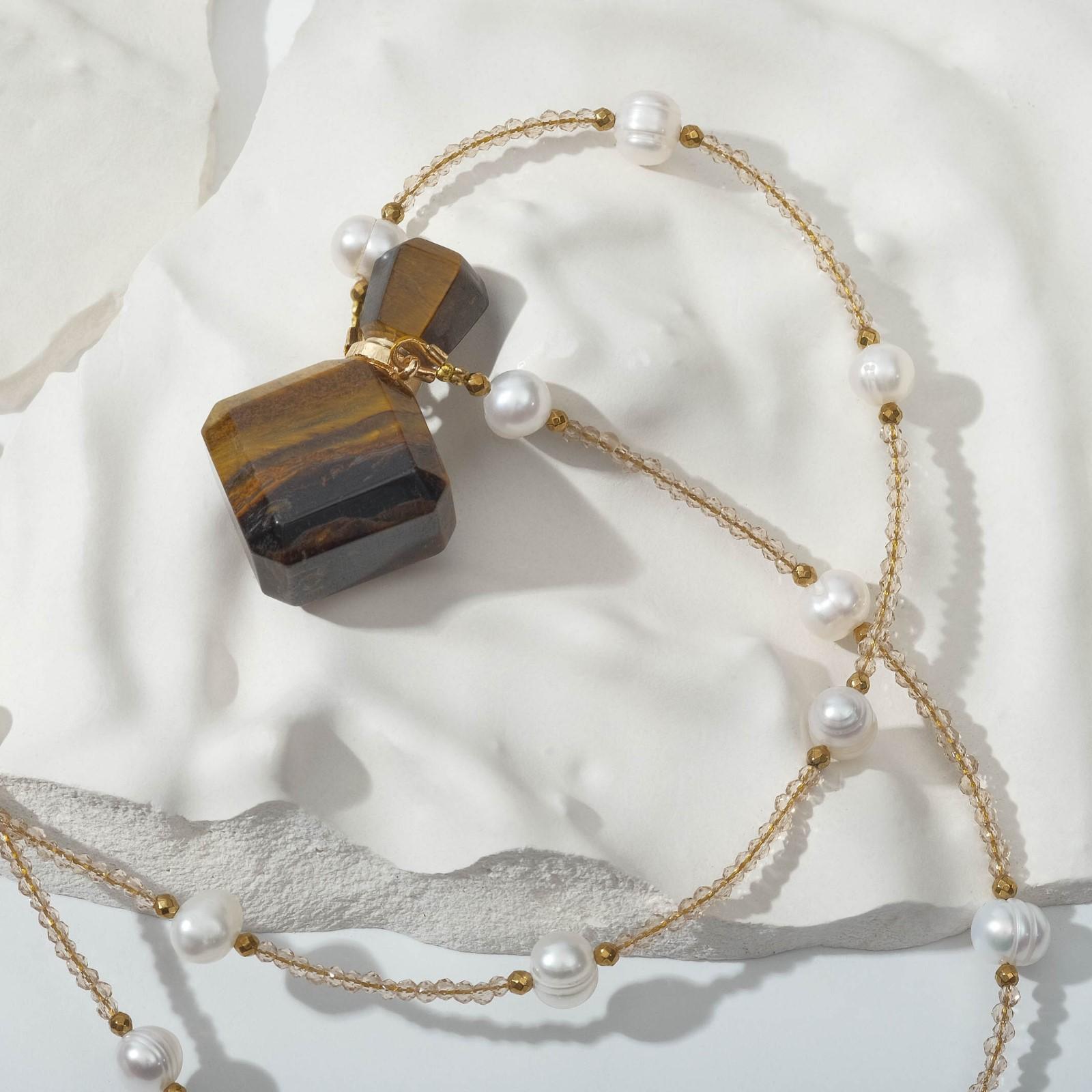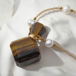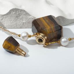 Аромакулон "Тигровый глаз" на бусах из шпинели с жемчугом, форма МИКС, 60см