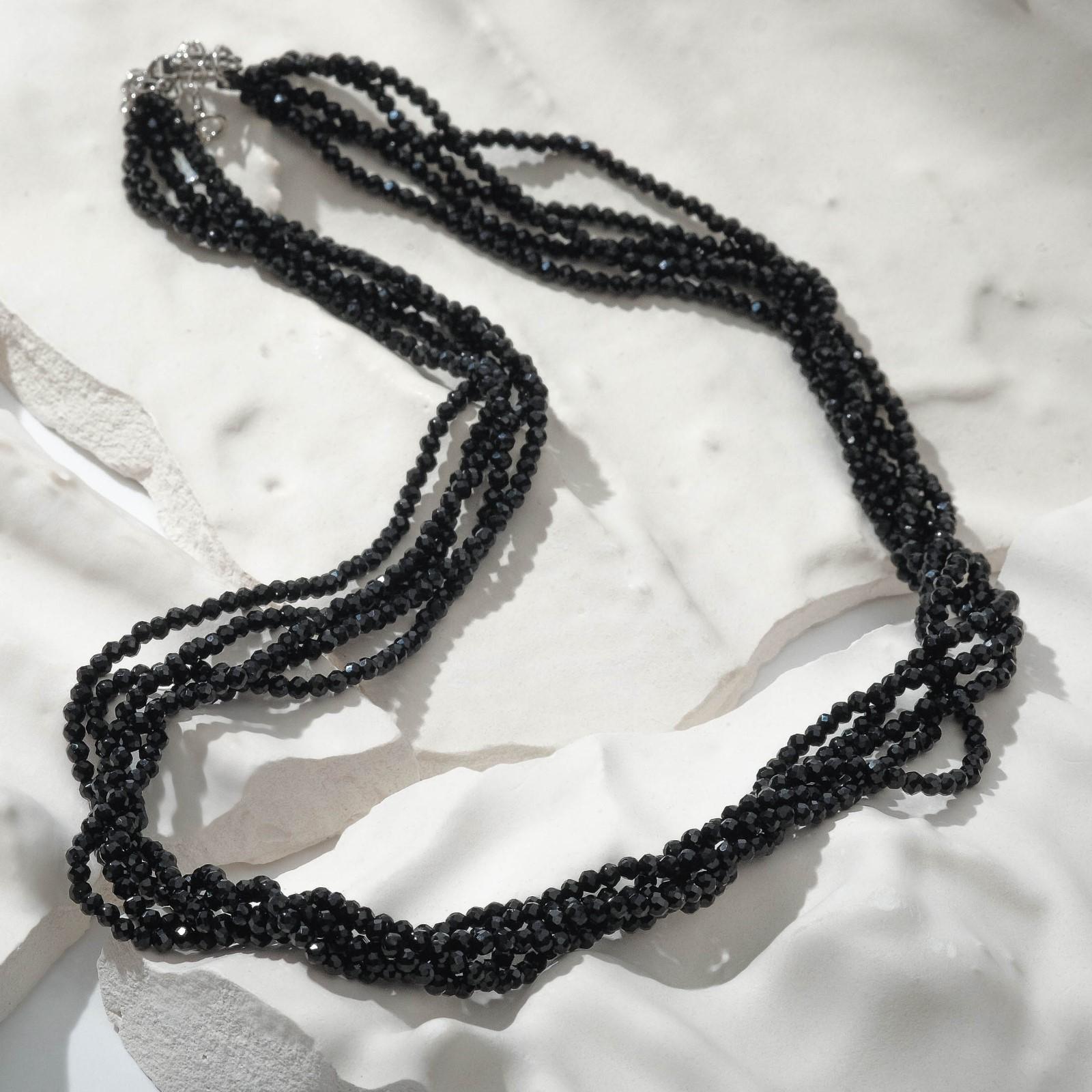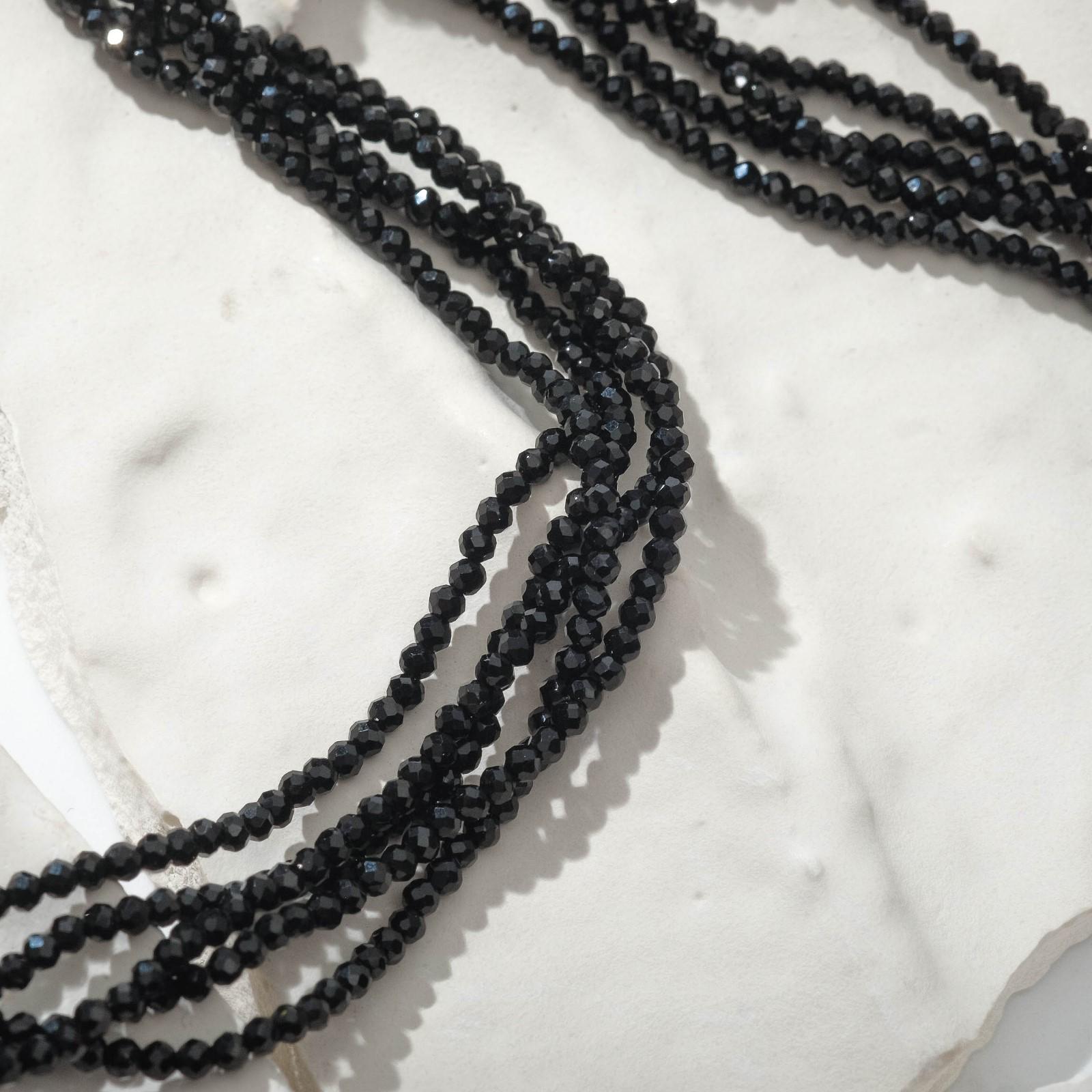Бусы шар №2 гранёный "Шпинель" 5 нитей, кручёные, цвет чёрный, 40см с удлинителем 5см