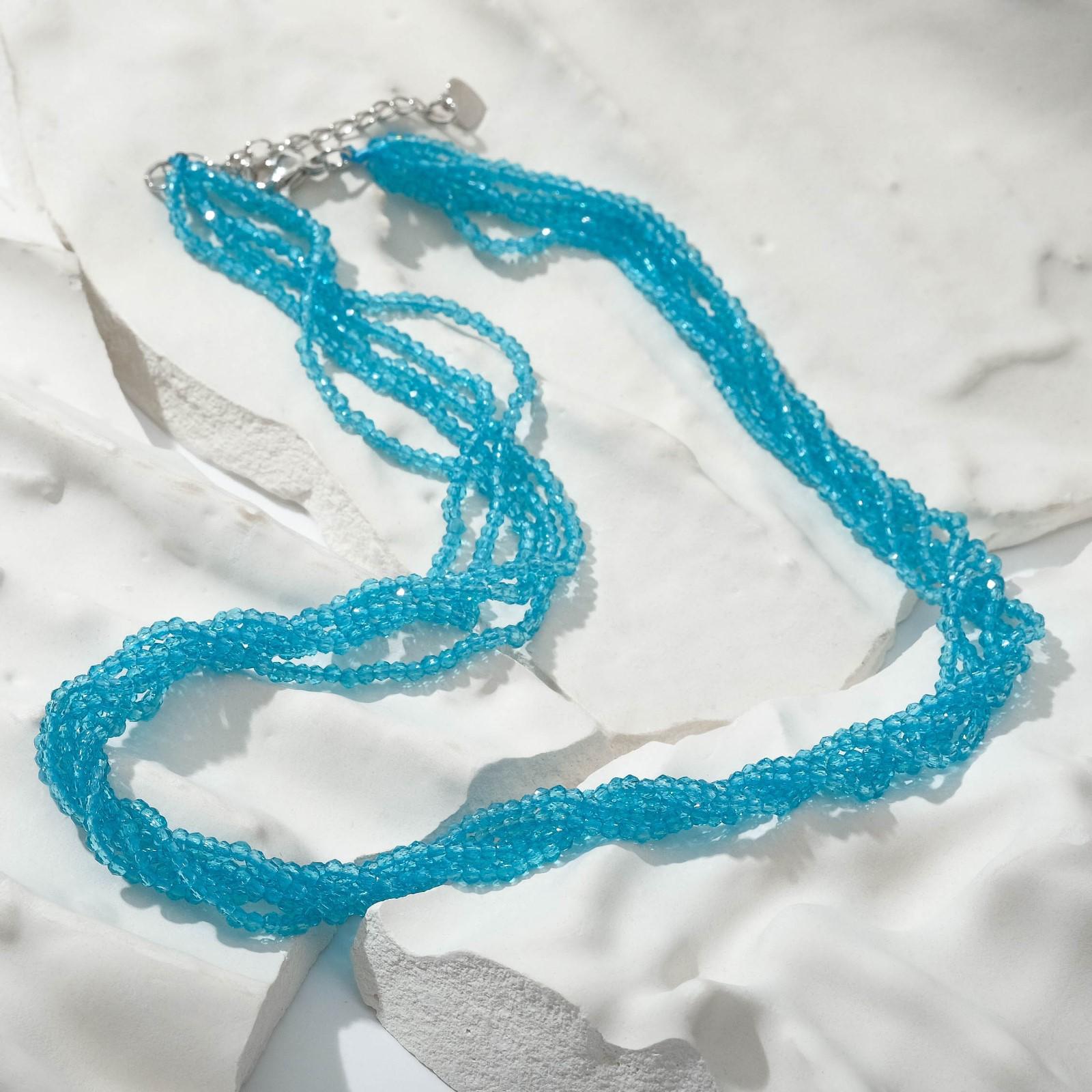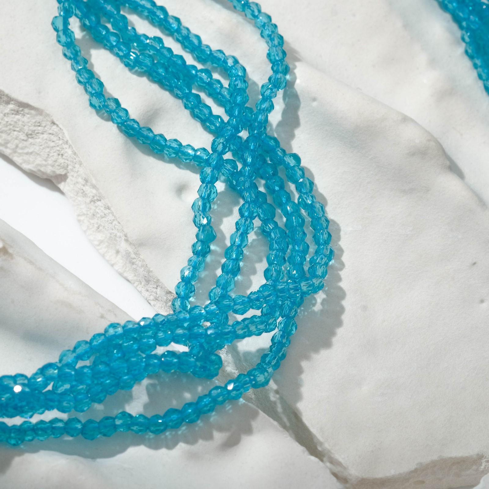 Бусы шар №2 гранёный "Шпинель" 5 нитей, кручёные, цвет голубой, 40см с удлинителем 5см