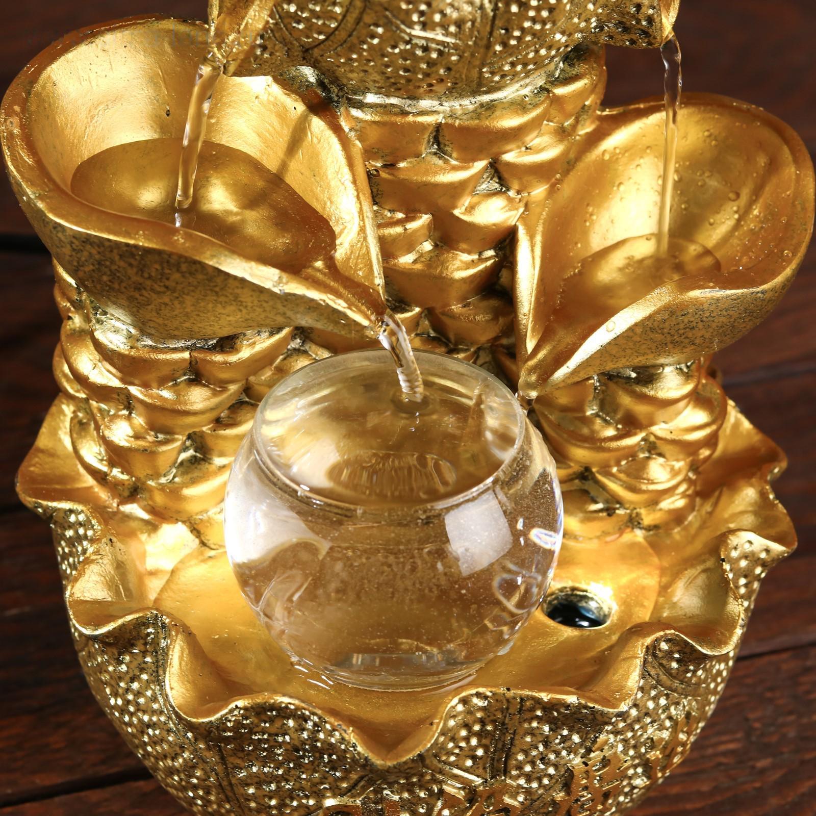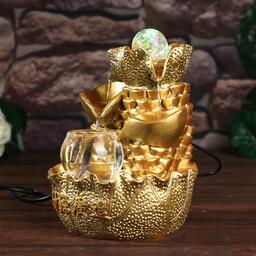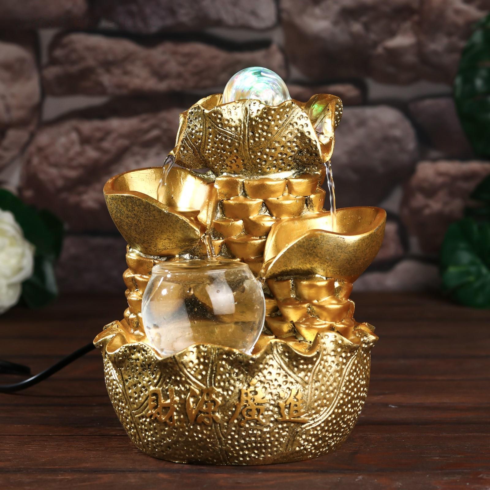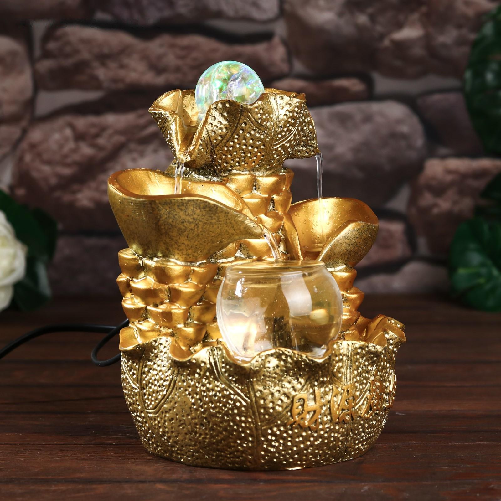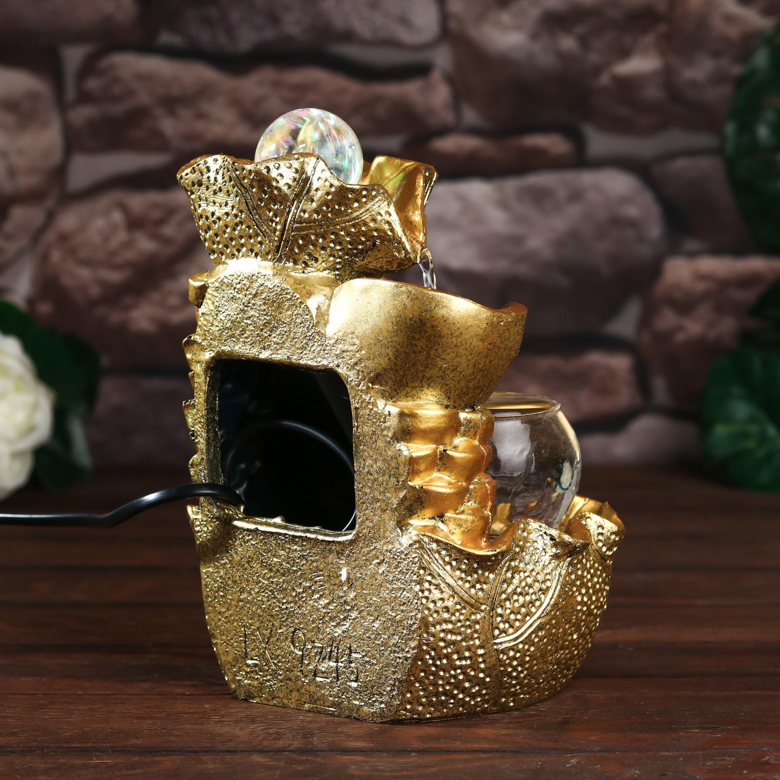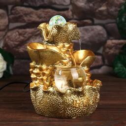 Фонтан настольный от сети, подсветка "Листья и слитки золота" золото 21х15х12 см