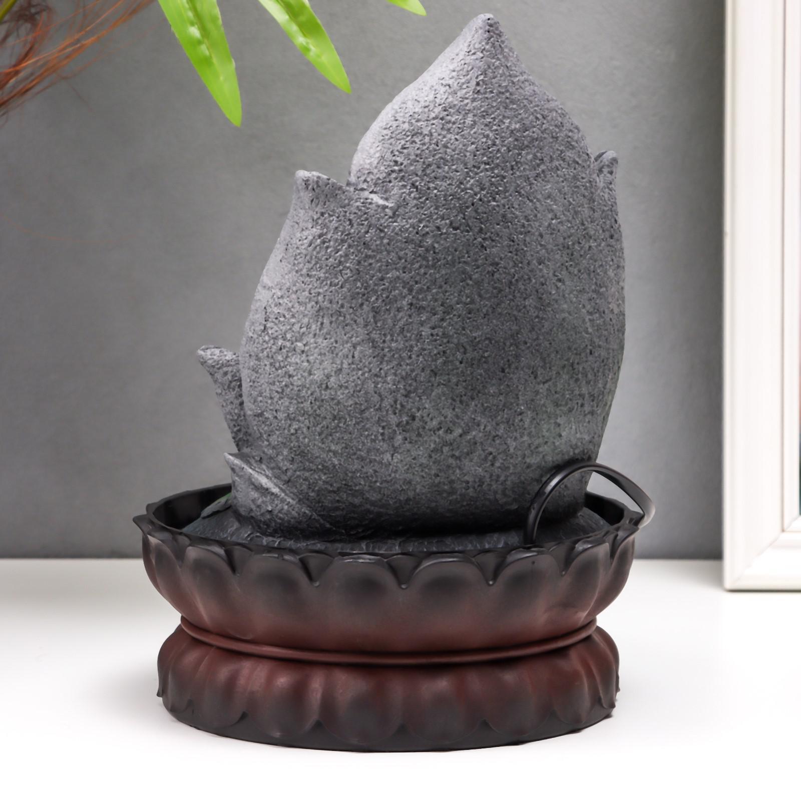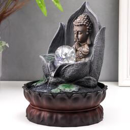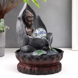 Фонтан настольный от сети, подсветка "Маленький будда в лотосе" серый мрамор 30х20,5х20,5 см