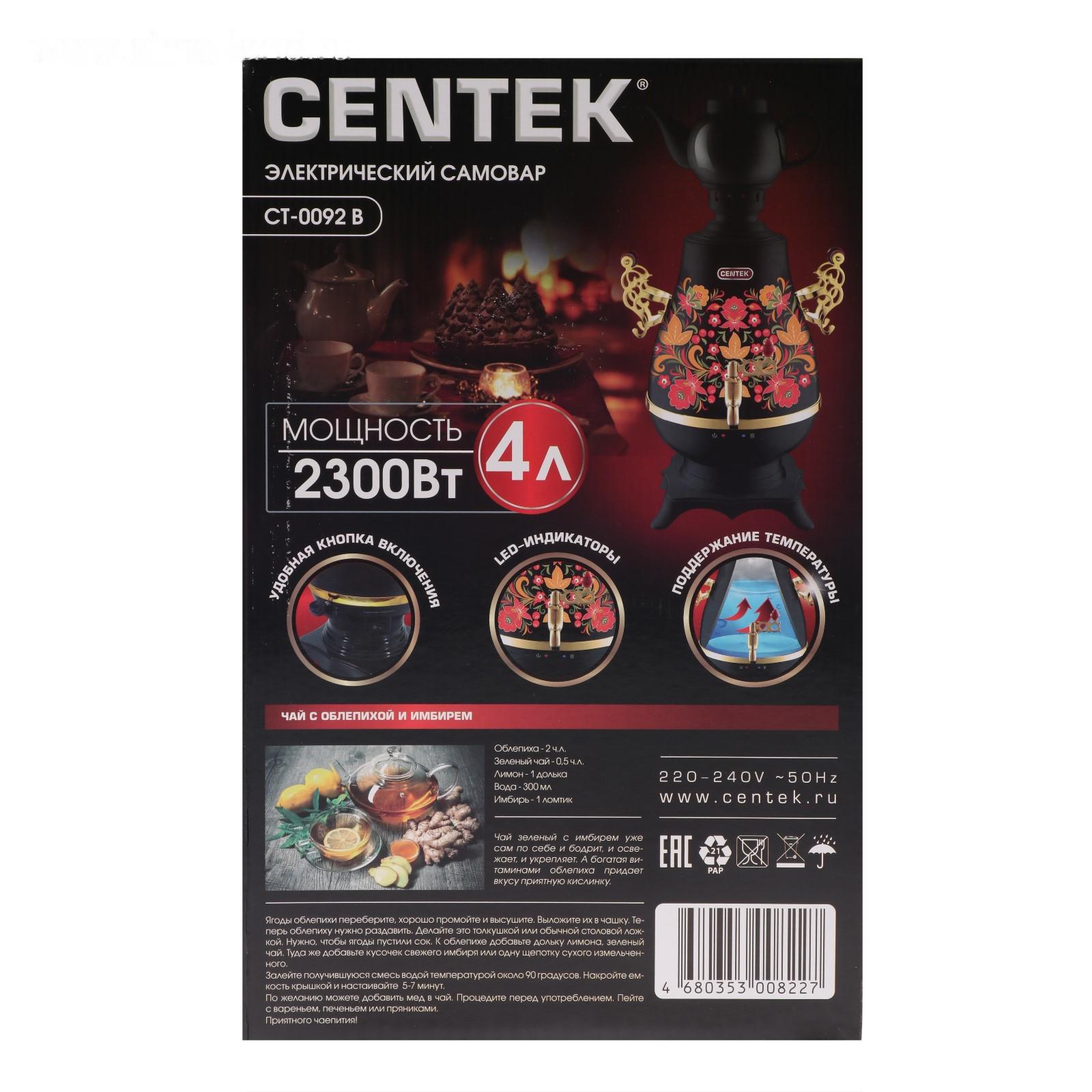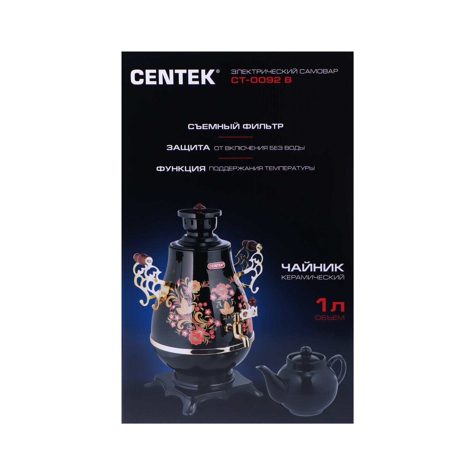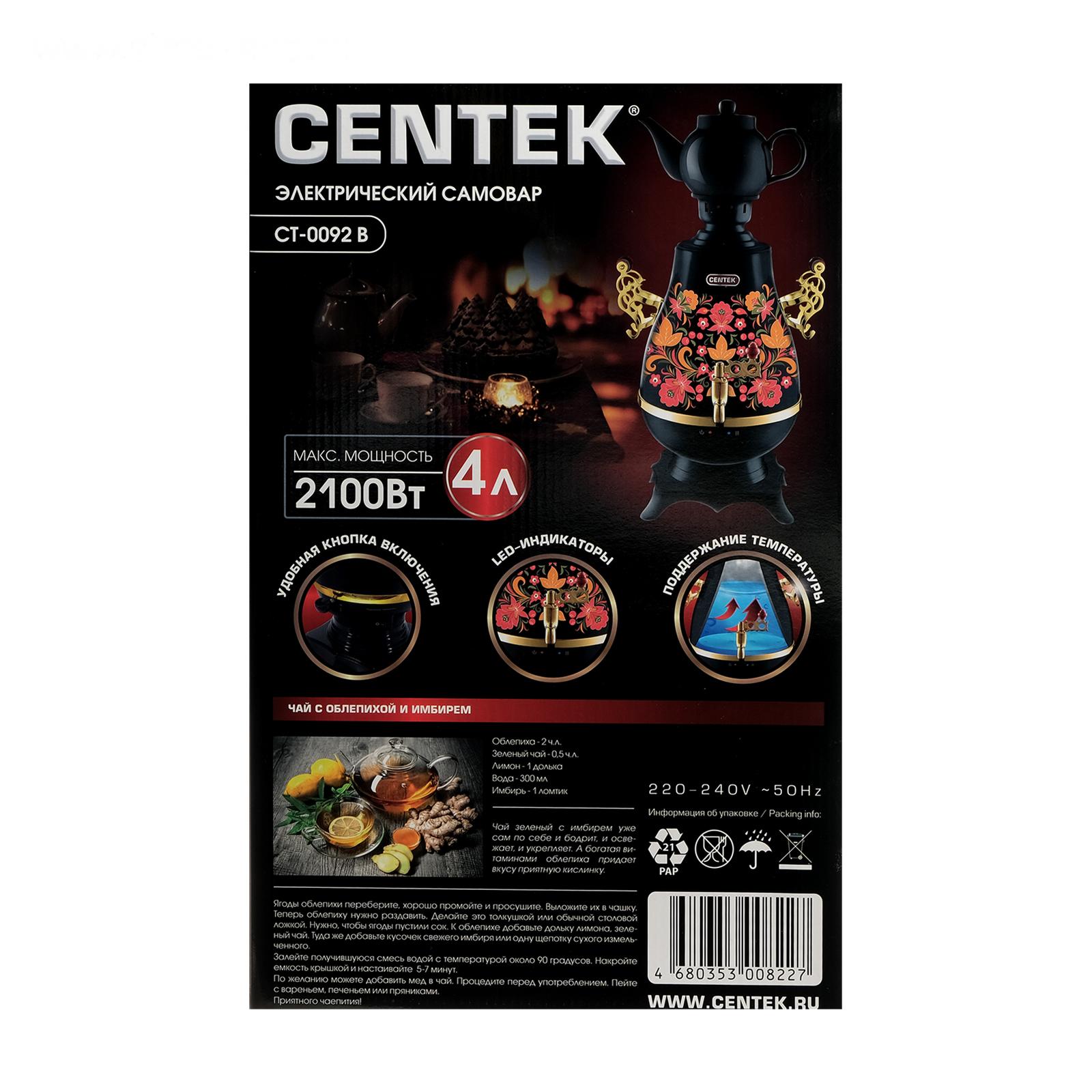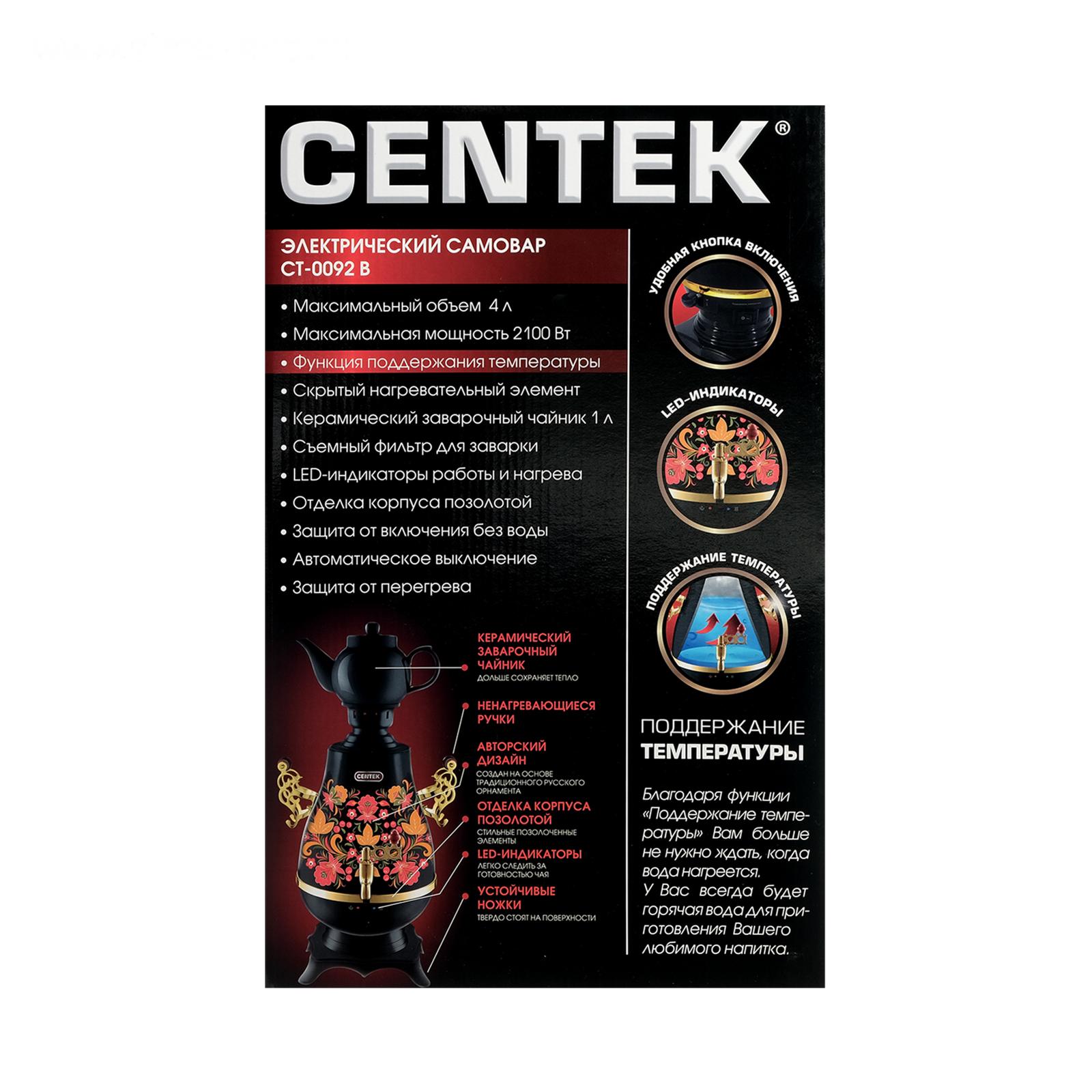 Самовар Centek CT-0092 B, металл, 4 л, 2100 Вт, LED, керамический заварник, черный-золото