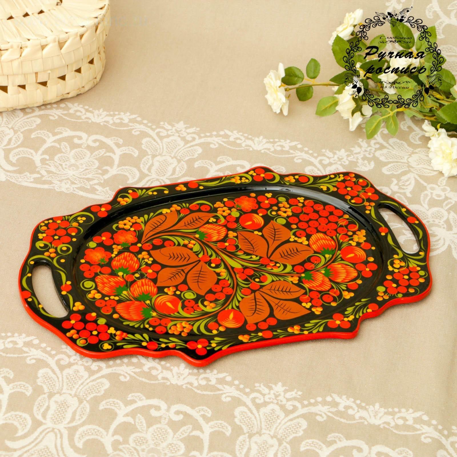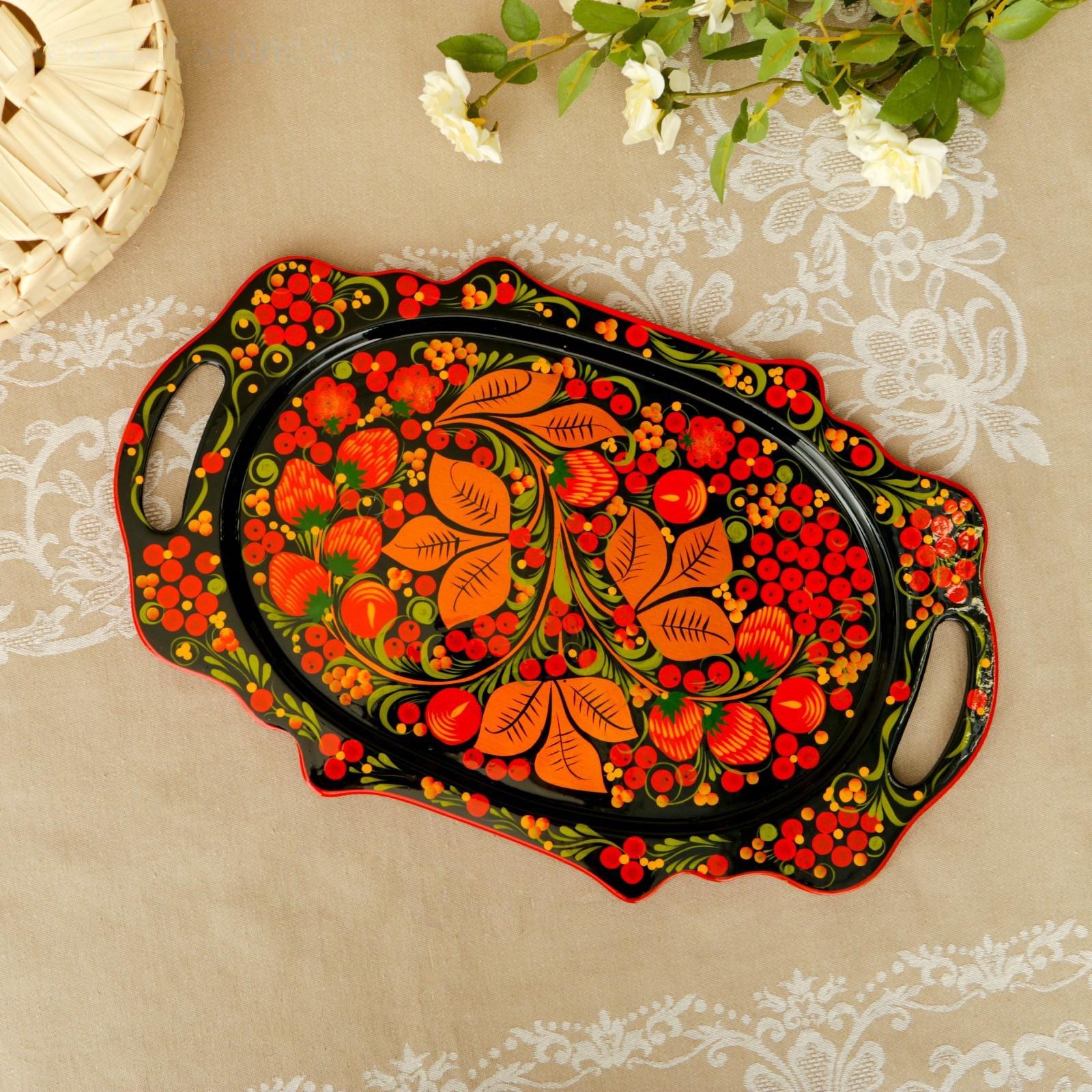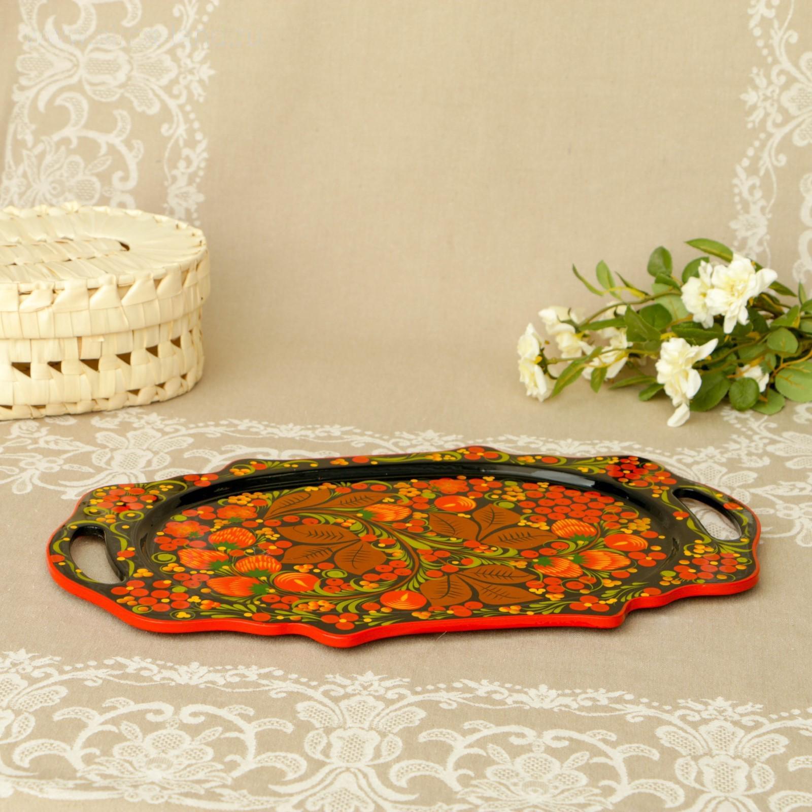 Поднос «Хохлома», средний, ручная роспись, микс