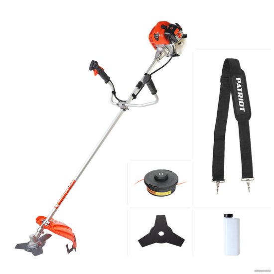 • Аксессуары - Двигатель в сборе с рукояткой: 1 шт.- Трансмиссионный узел в сборе: 1 шт.- Рукоятка: 1 шт.- Защитный кожух с крепежной планкой: 1 шт.- Набор креплений для сборки: 1 шт.- ЗИП комплект для установки триммерного ножа: 1 шт.- Емкость для приготовления топливной смеси: 1 шт.- Триммерная катушка: 1 шт.- Нож 3-х лопастной- Плечевой ремень: 1 шт.- Инструкция по эксплуатации: 1 шт.