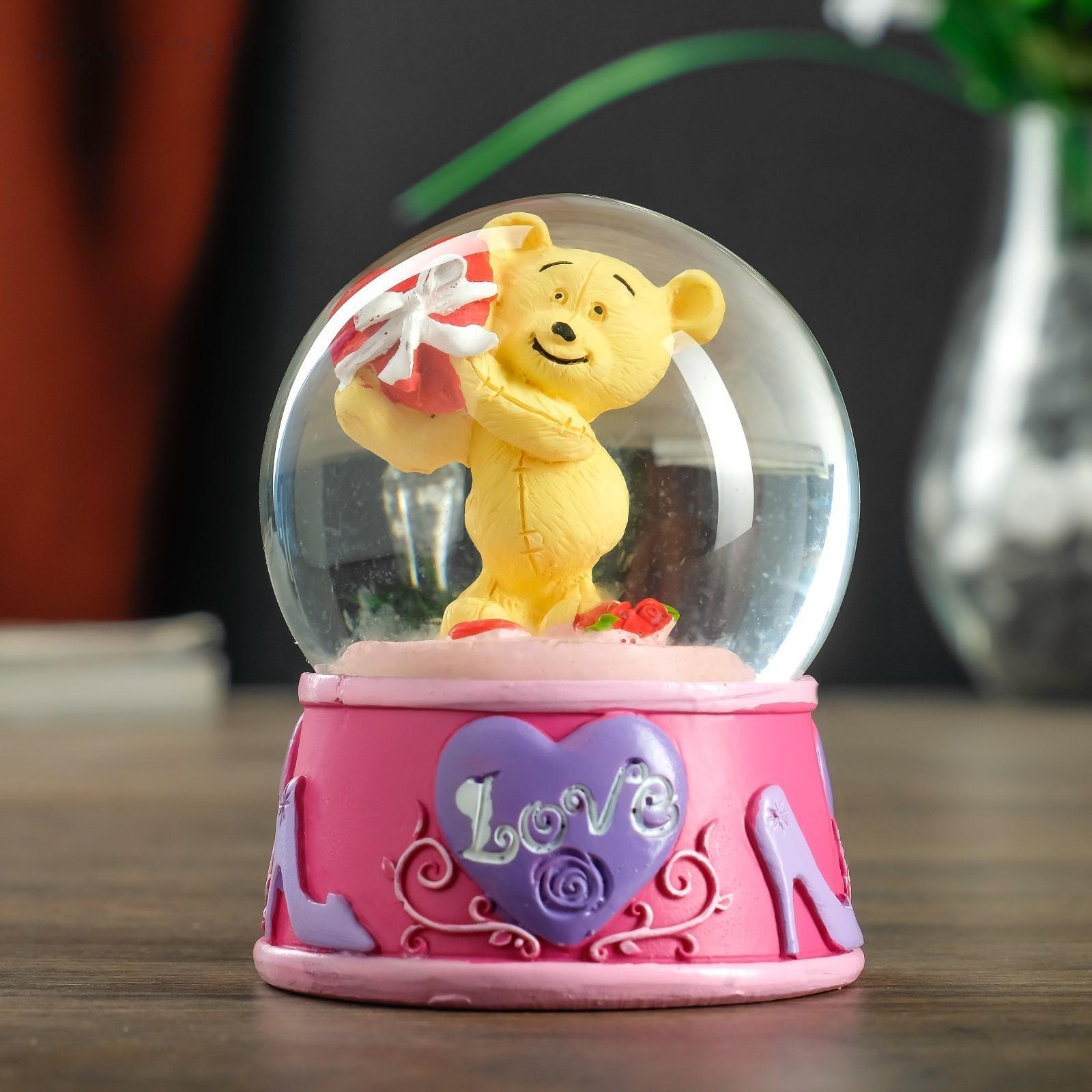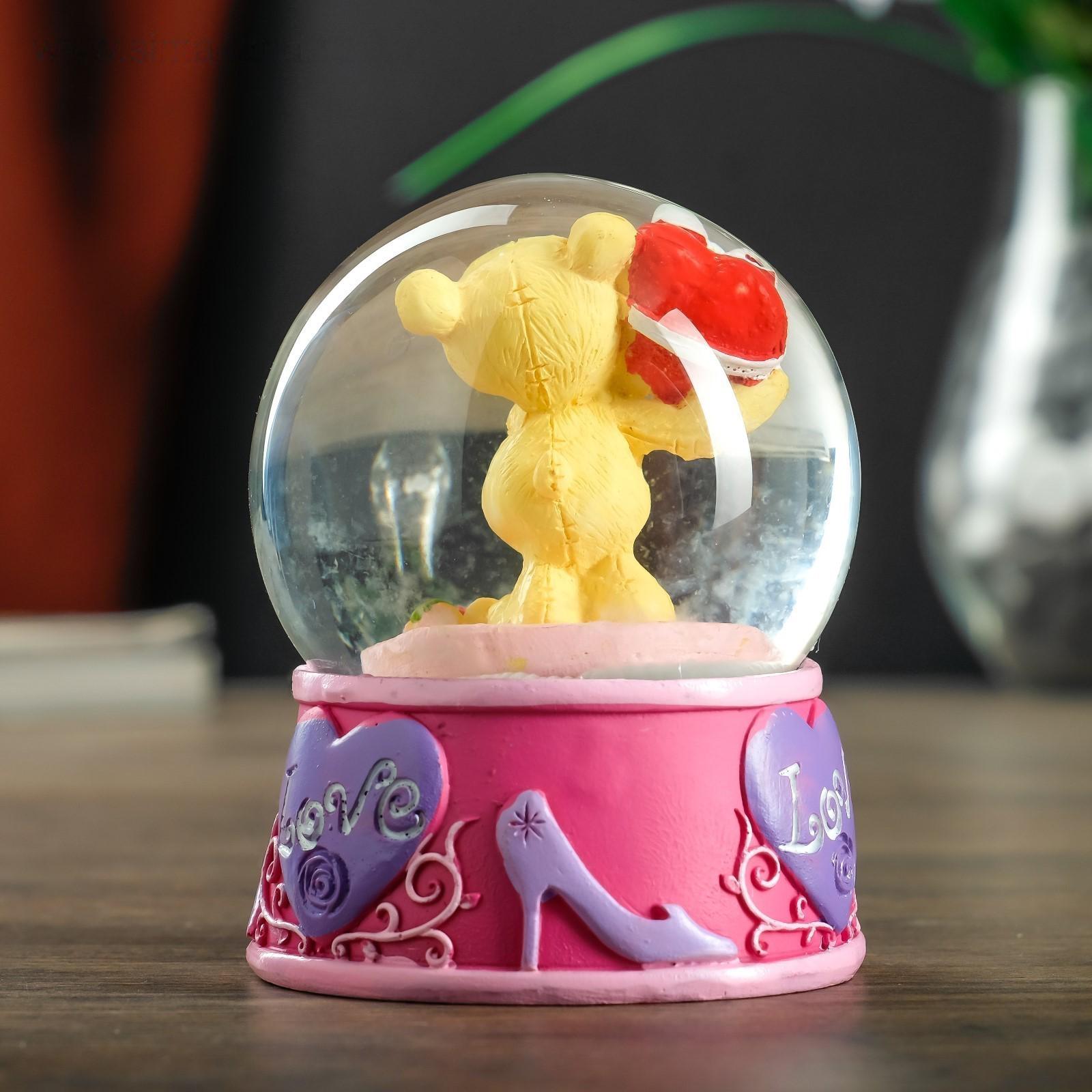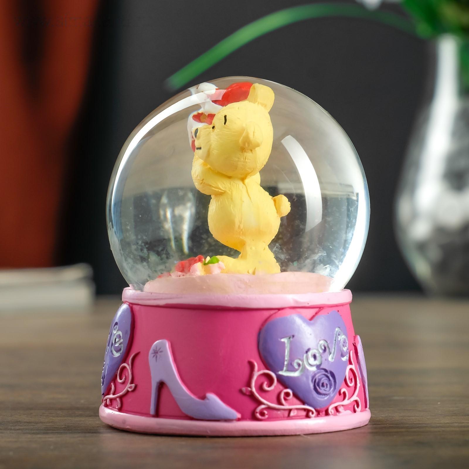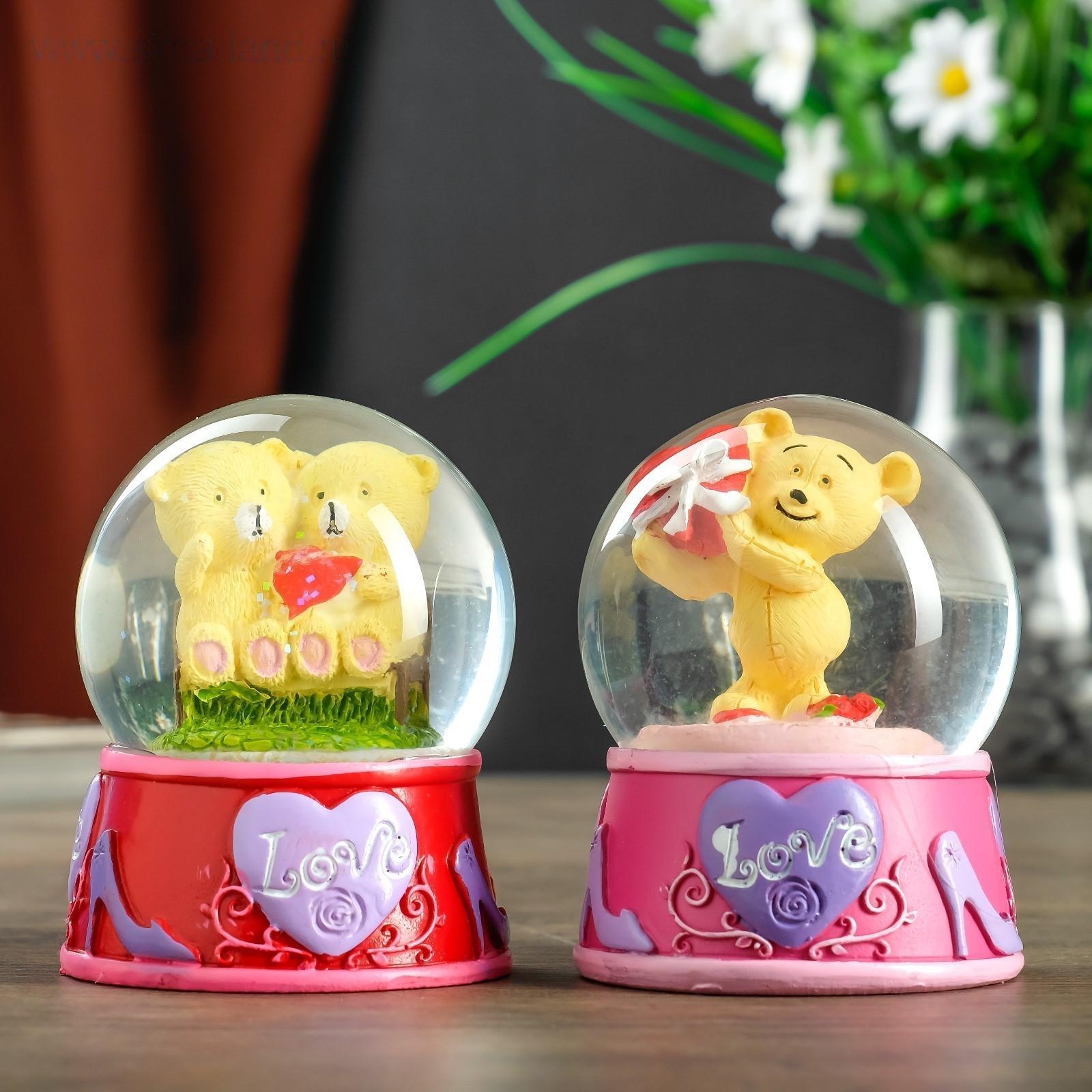 Стеклянный шар свет "Мишка с сердцем/мишки на скамейке" МИКС 8,5х7х7 см