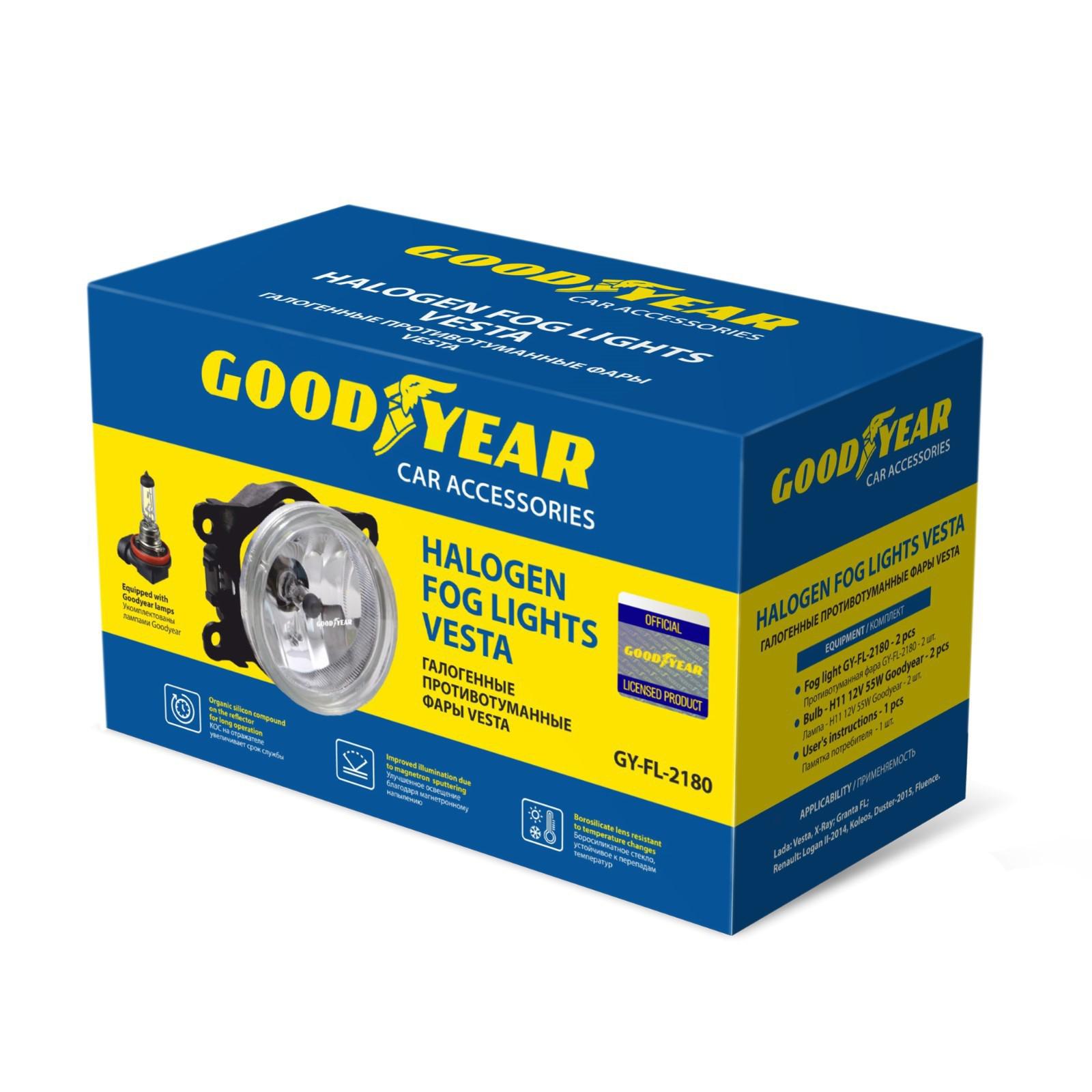 Фары противотуманные галогенные Goodyear, Vesta с лампами GY-FL-2180, H11 12V, 2шт.