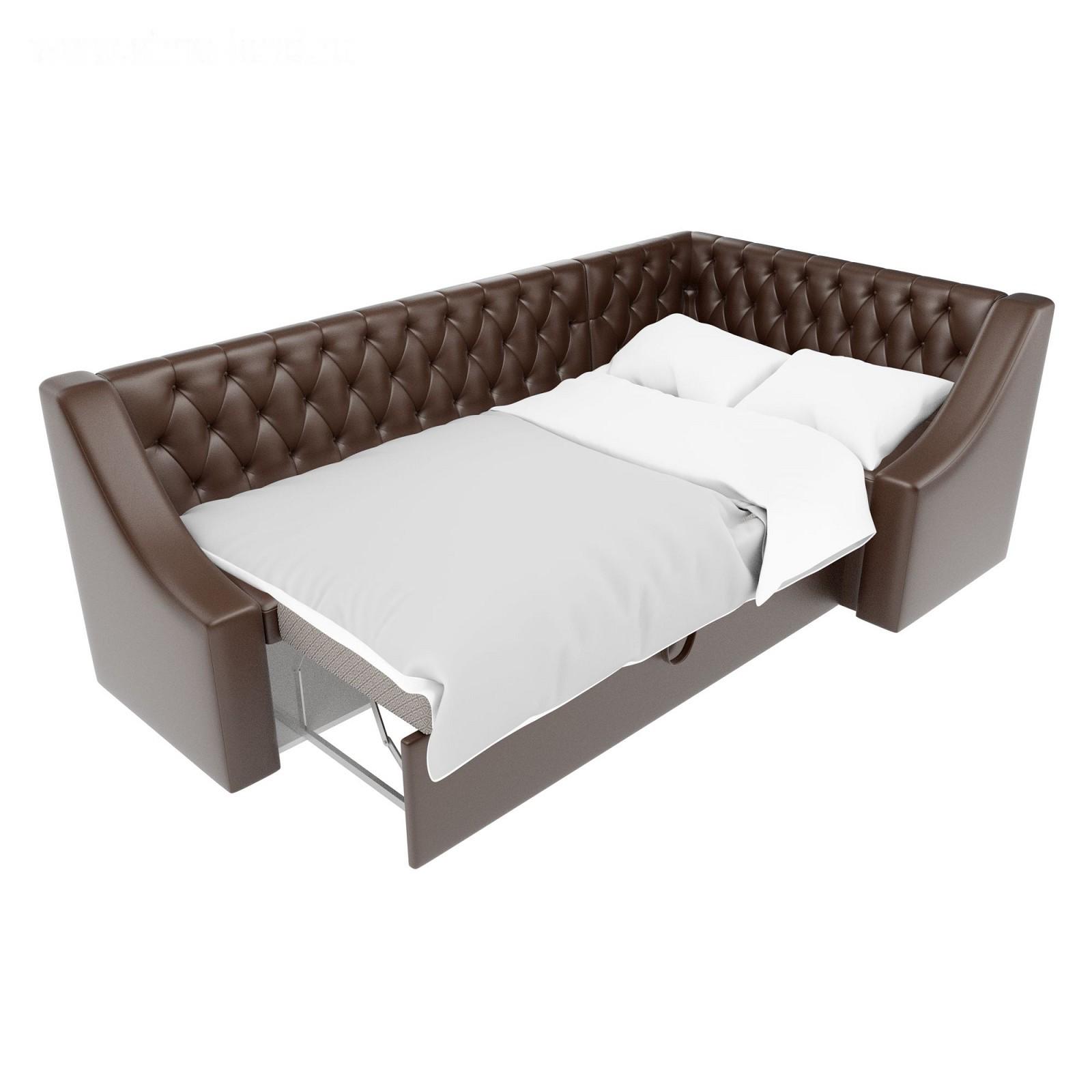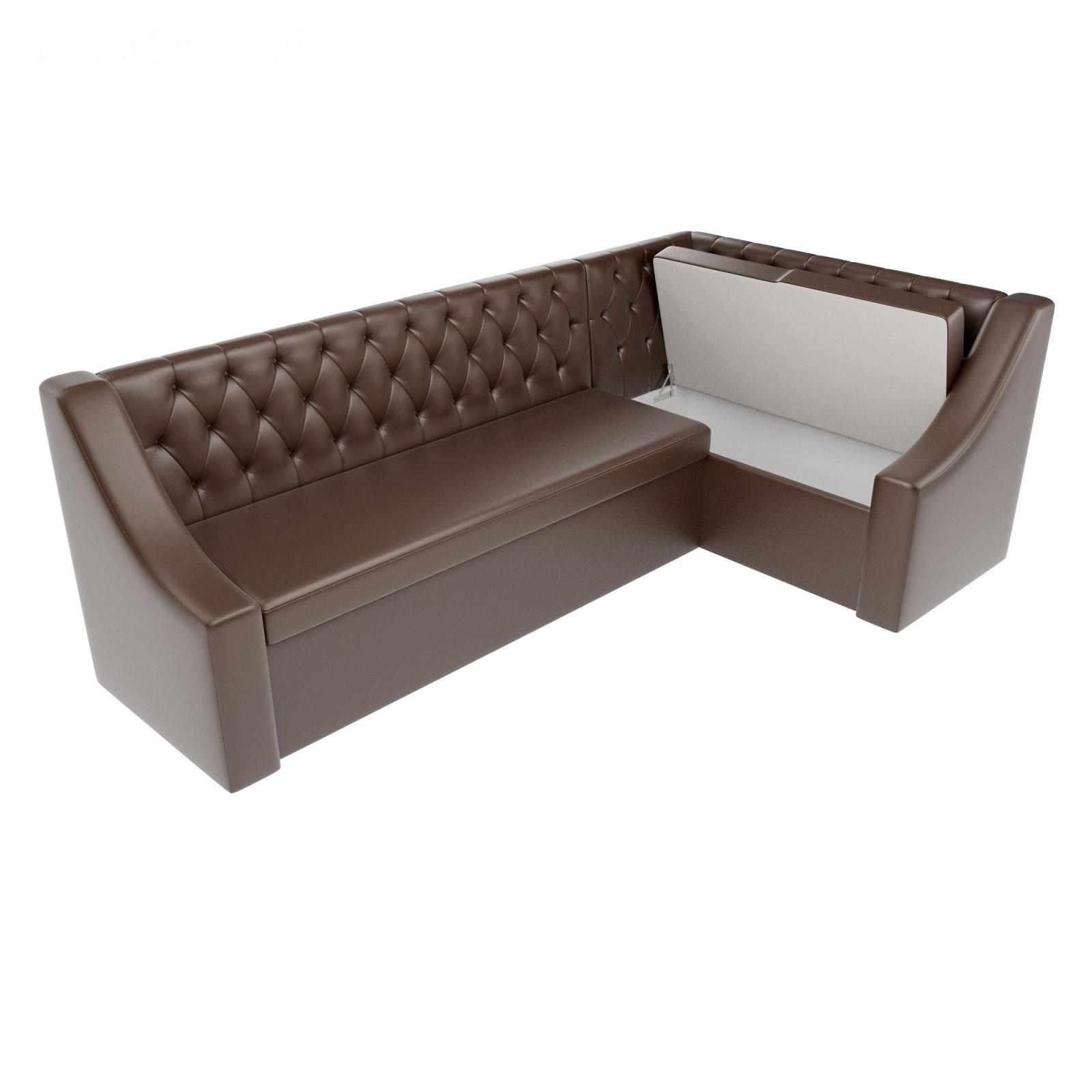 Кухонный угловой диван «Мерлин», механизм дельфин, экокожа, цвет коричневый