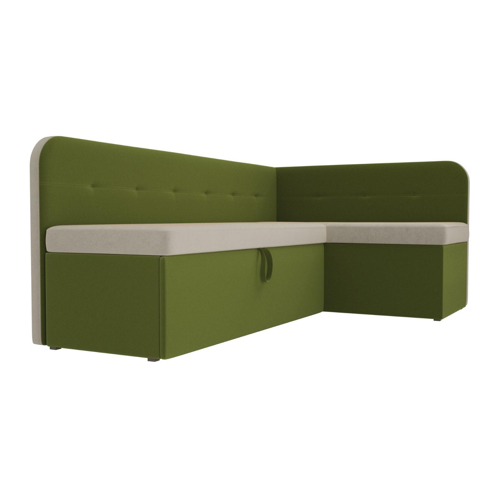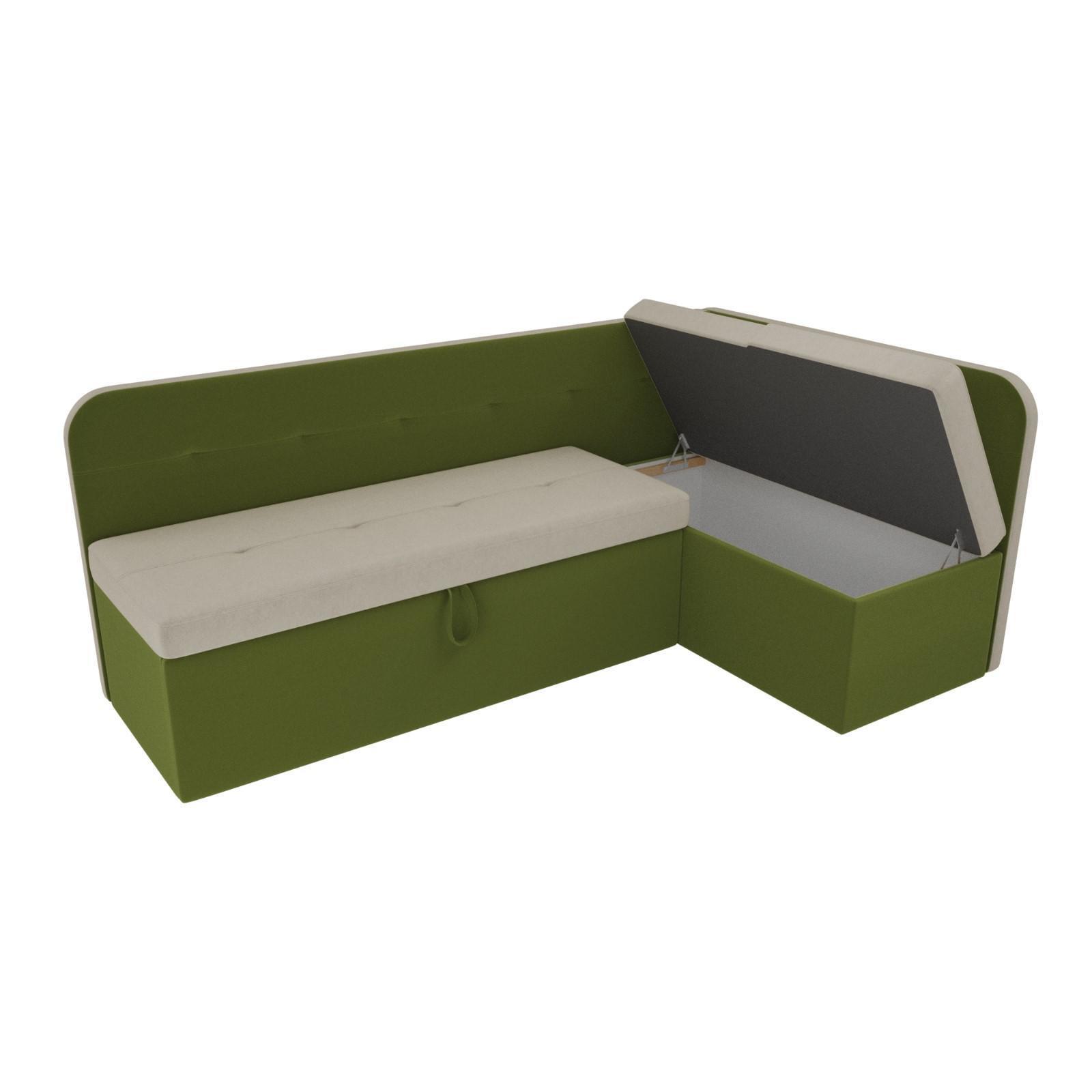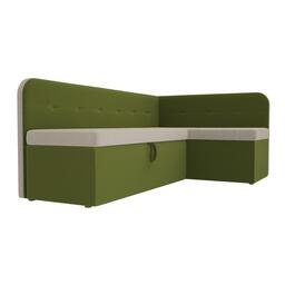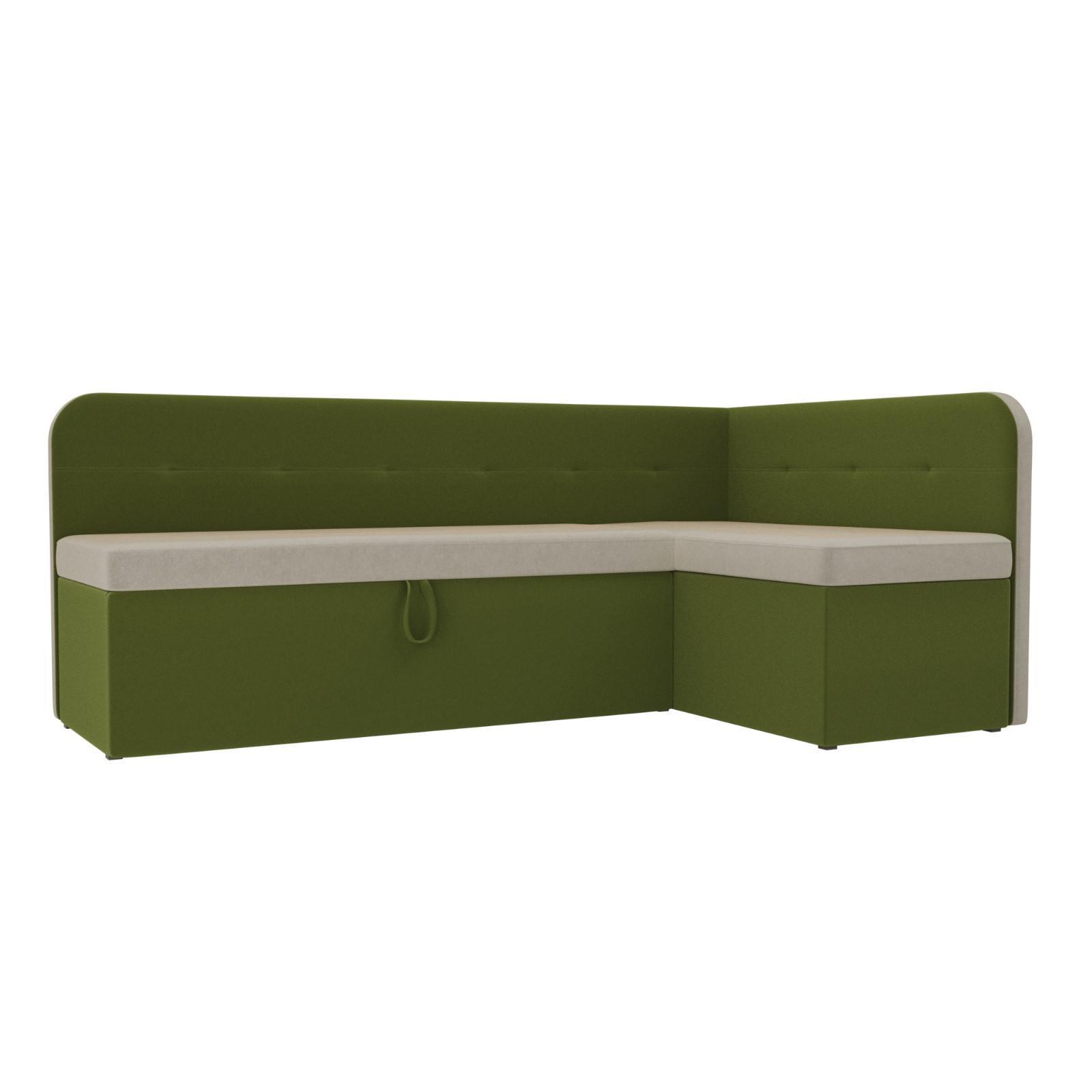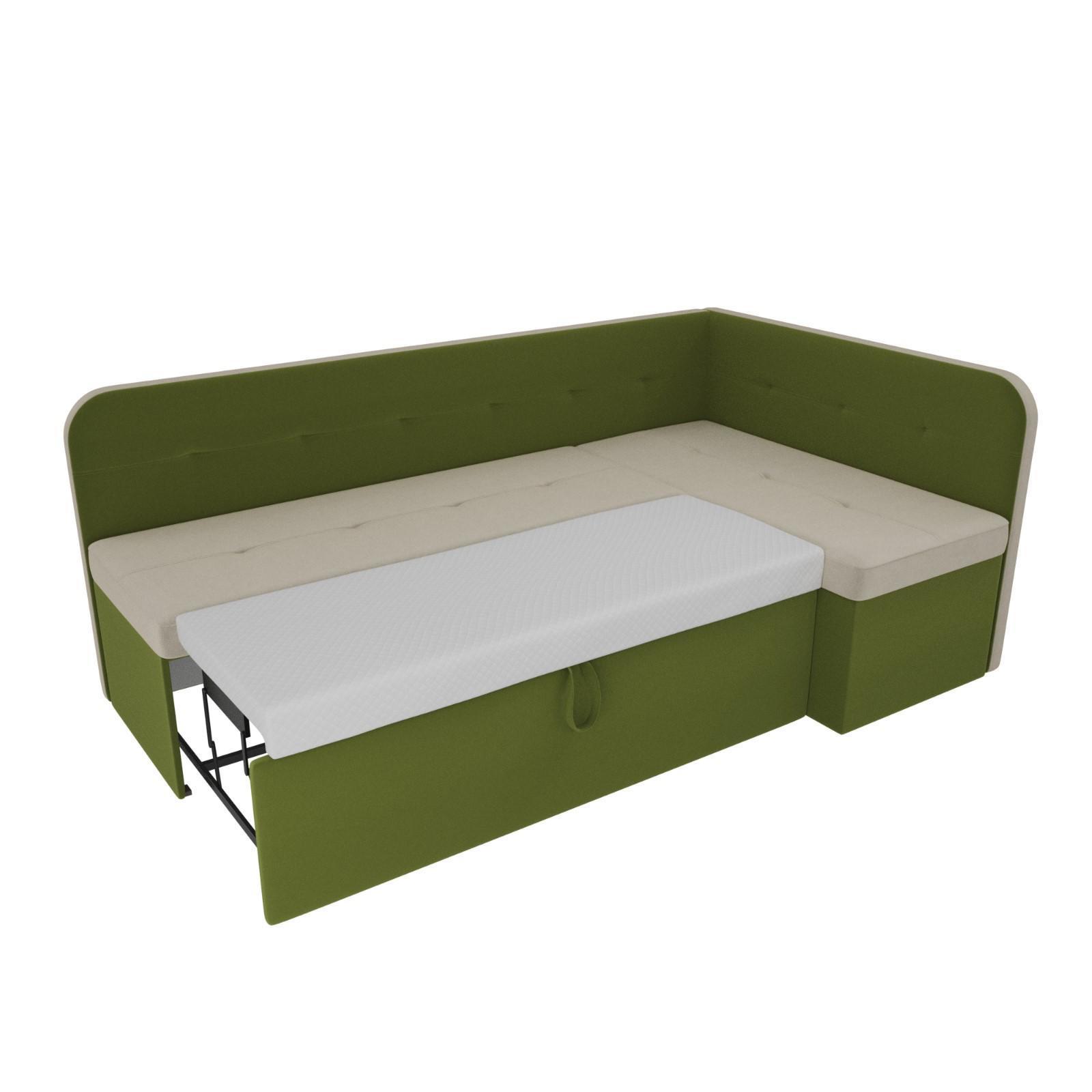 Кухонный угловой диван «Форест», механизм дельфин, микровельвет, цвет бежевый/зелёный
