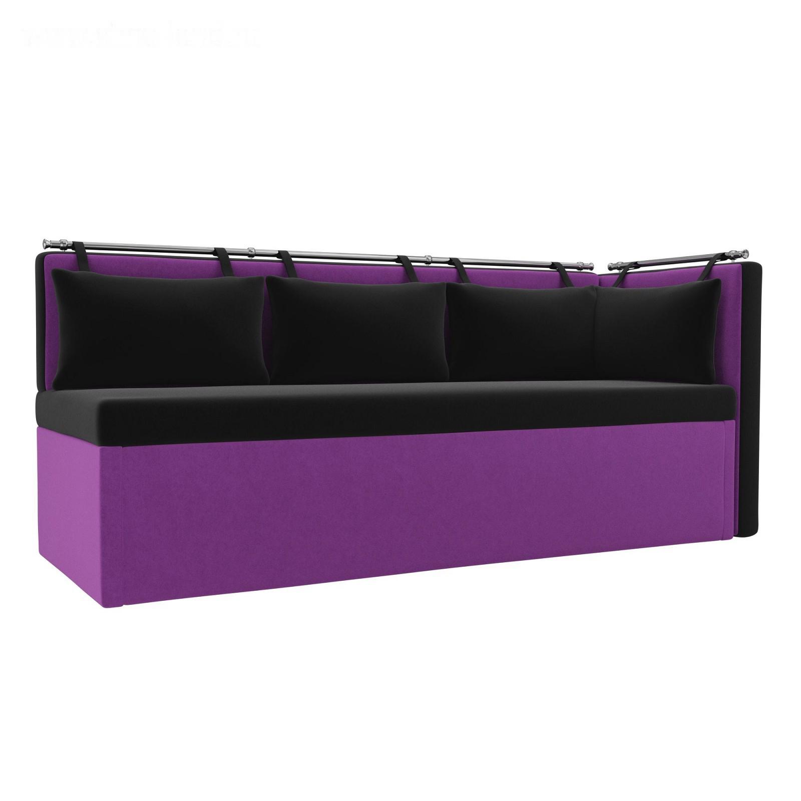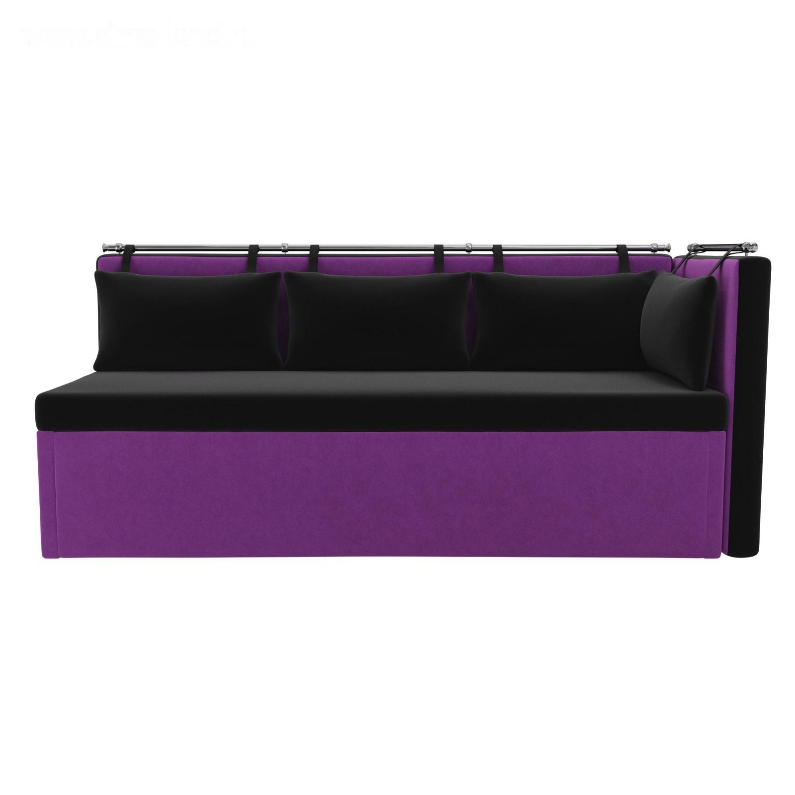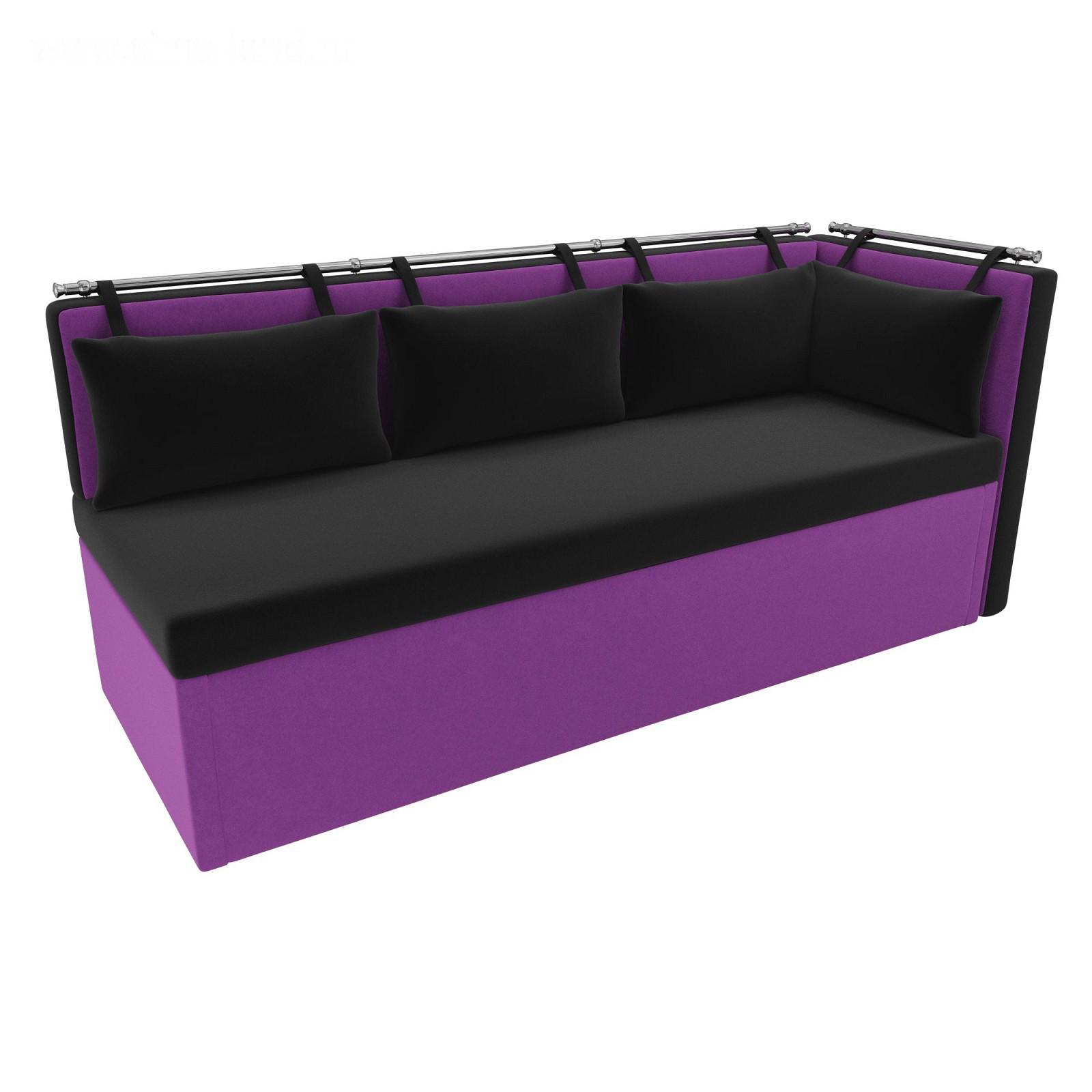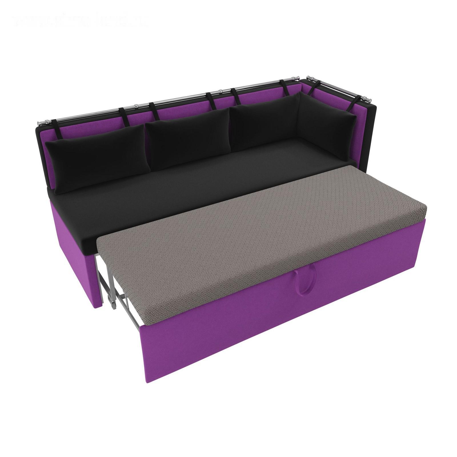 Кухонный диван «Метро с углом», механизм дельфин, микровельвет, цвет чёрный / фиолетовый