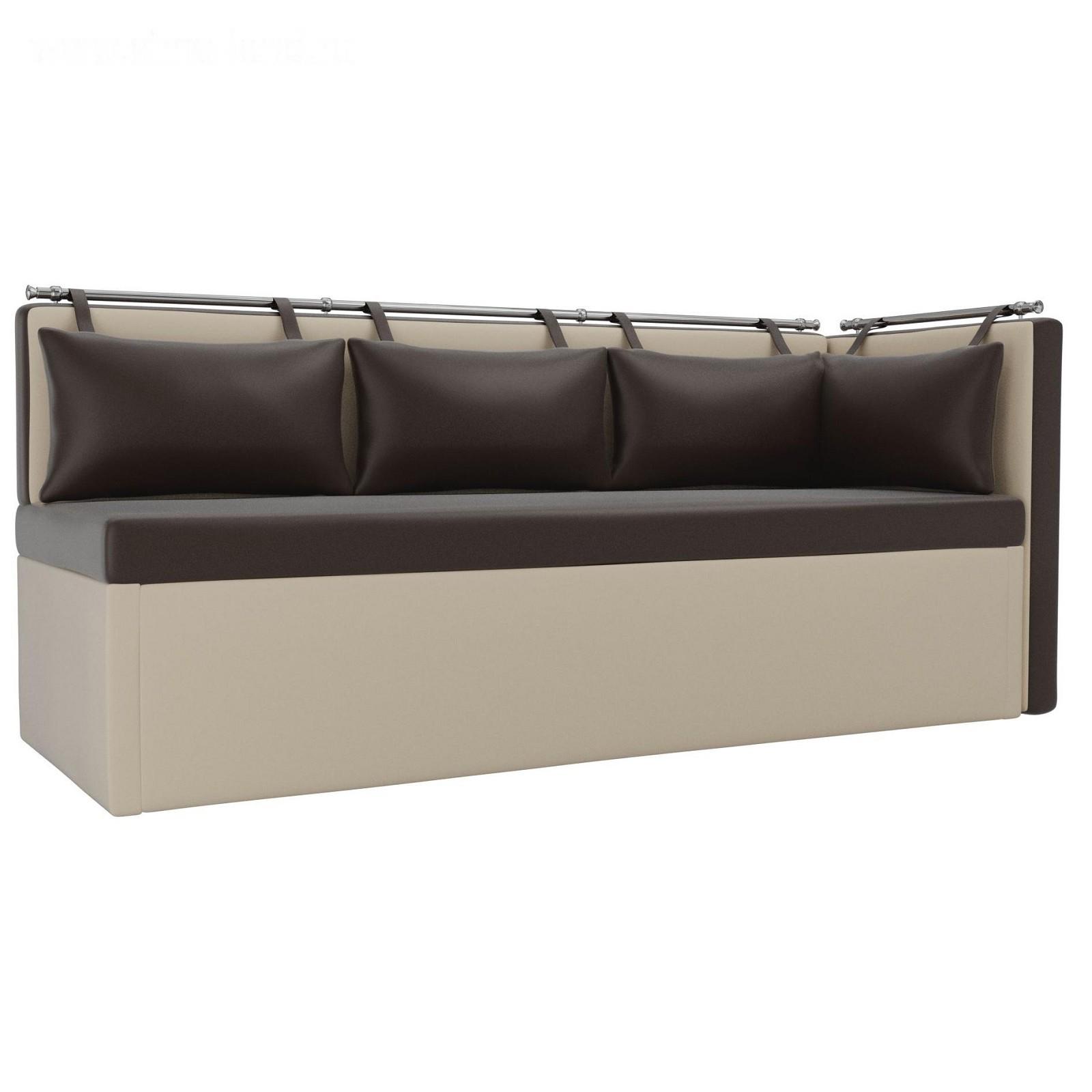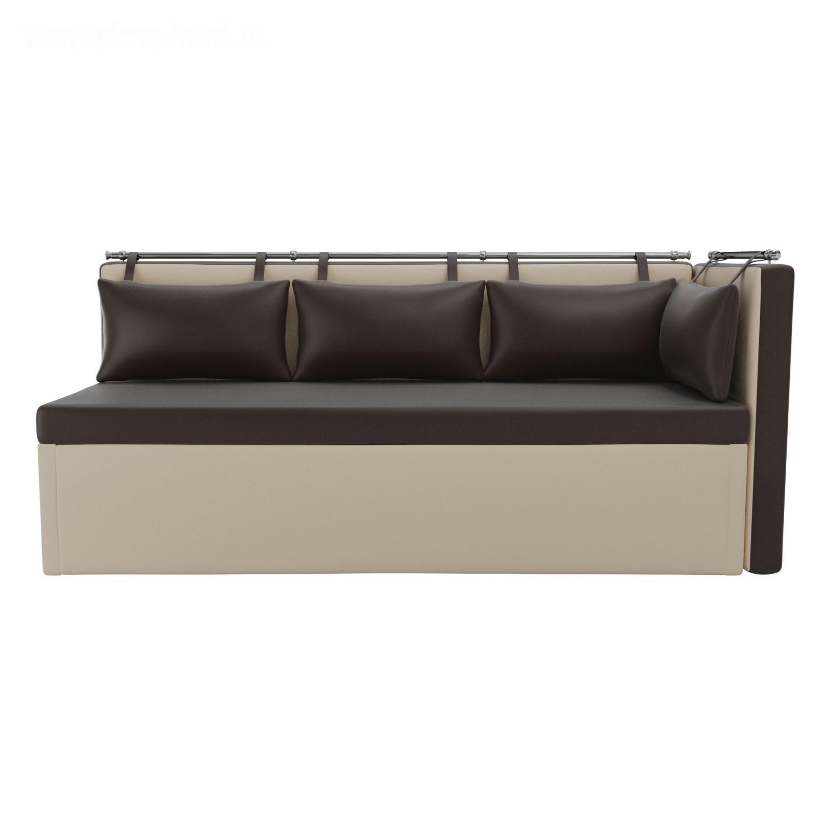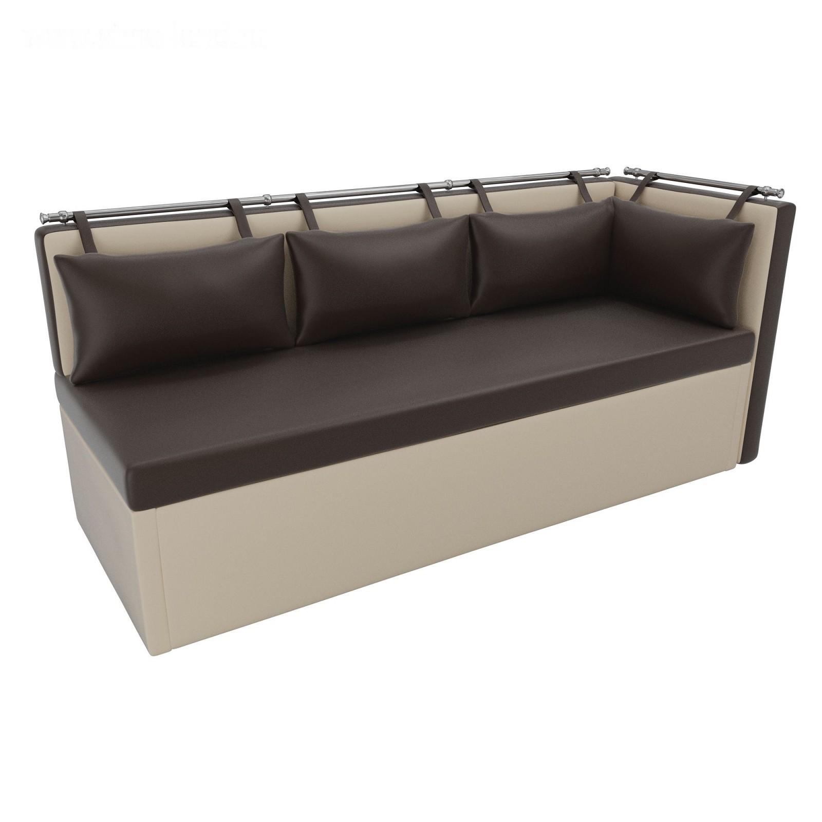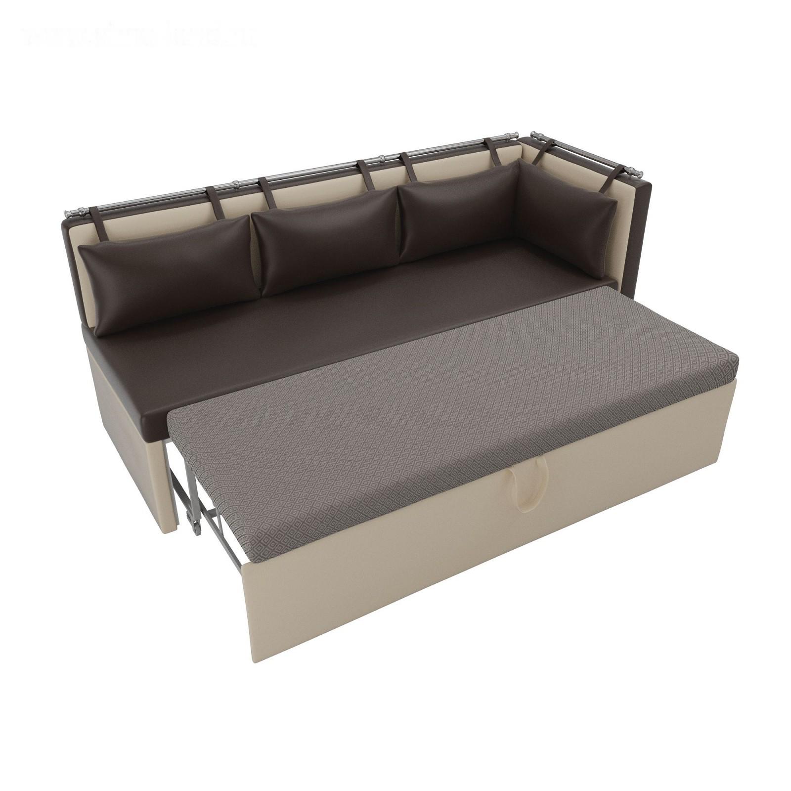 Кухонный диван «Метро с углом», механизм дельфин, правый, экокожа, цвет коричневый/бежевый