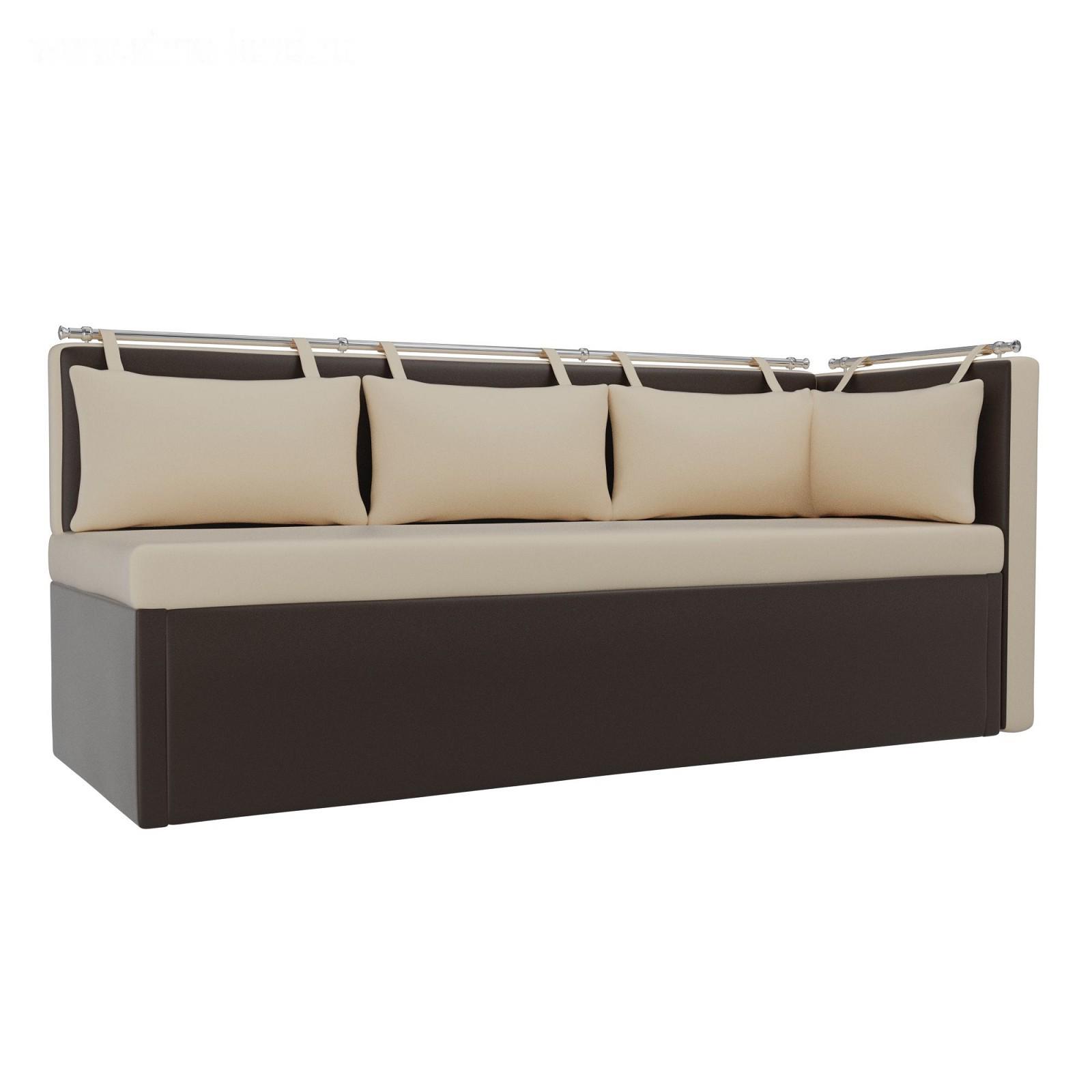 Кухонный диван «Метро с углом», механизм дельфин, экокожа, цвет бежевый / коричневый