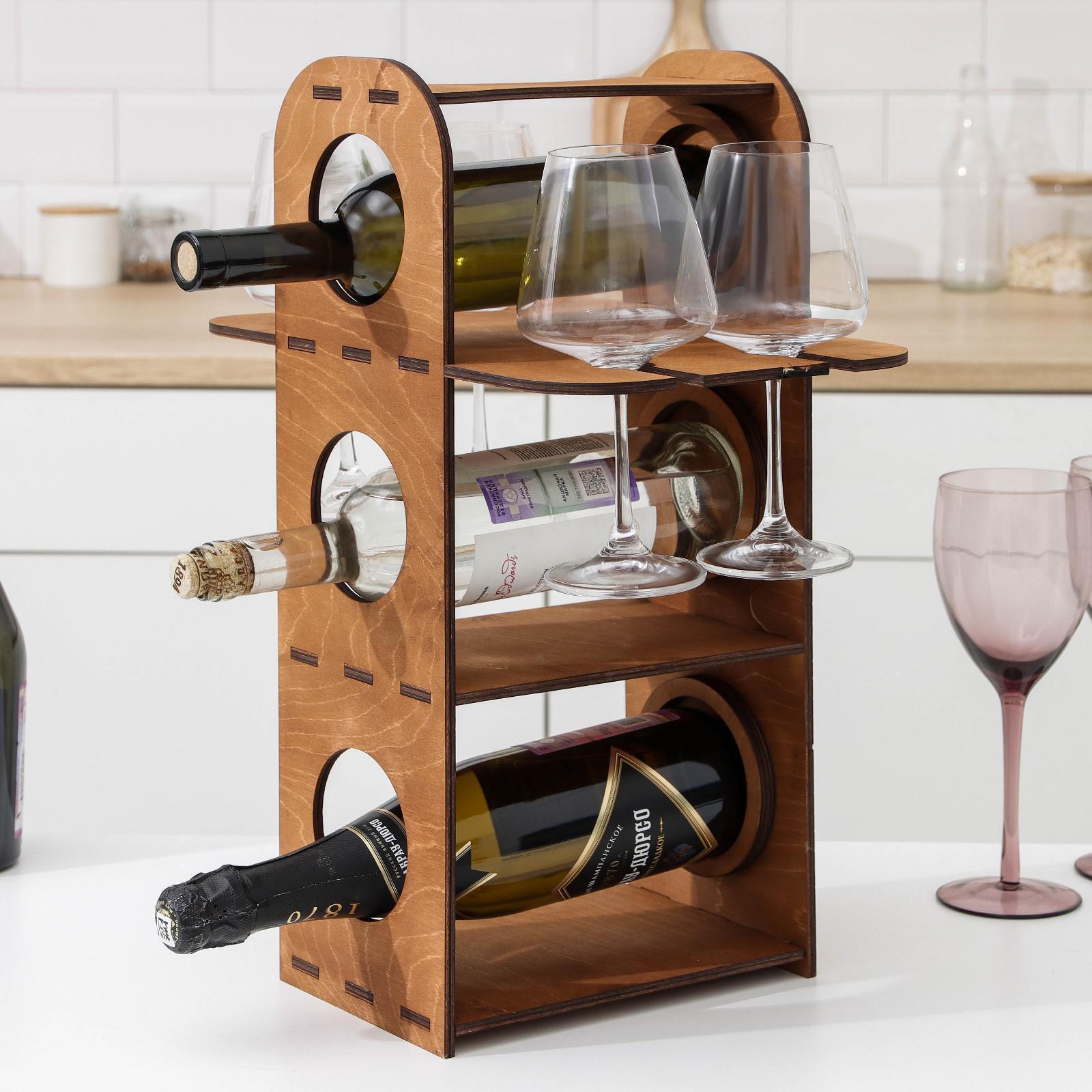 Подставка-минибар под 3 бутылки и 4 бокала, 35×23×48 см