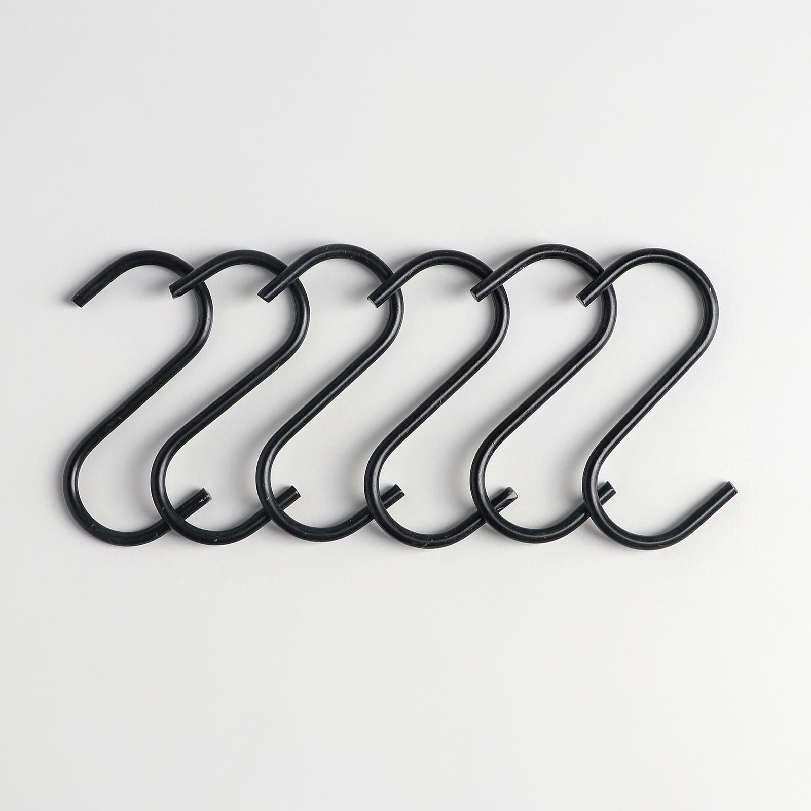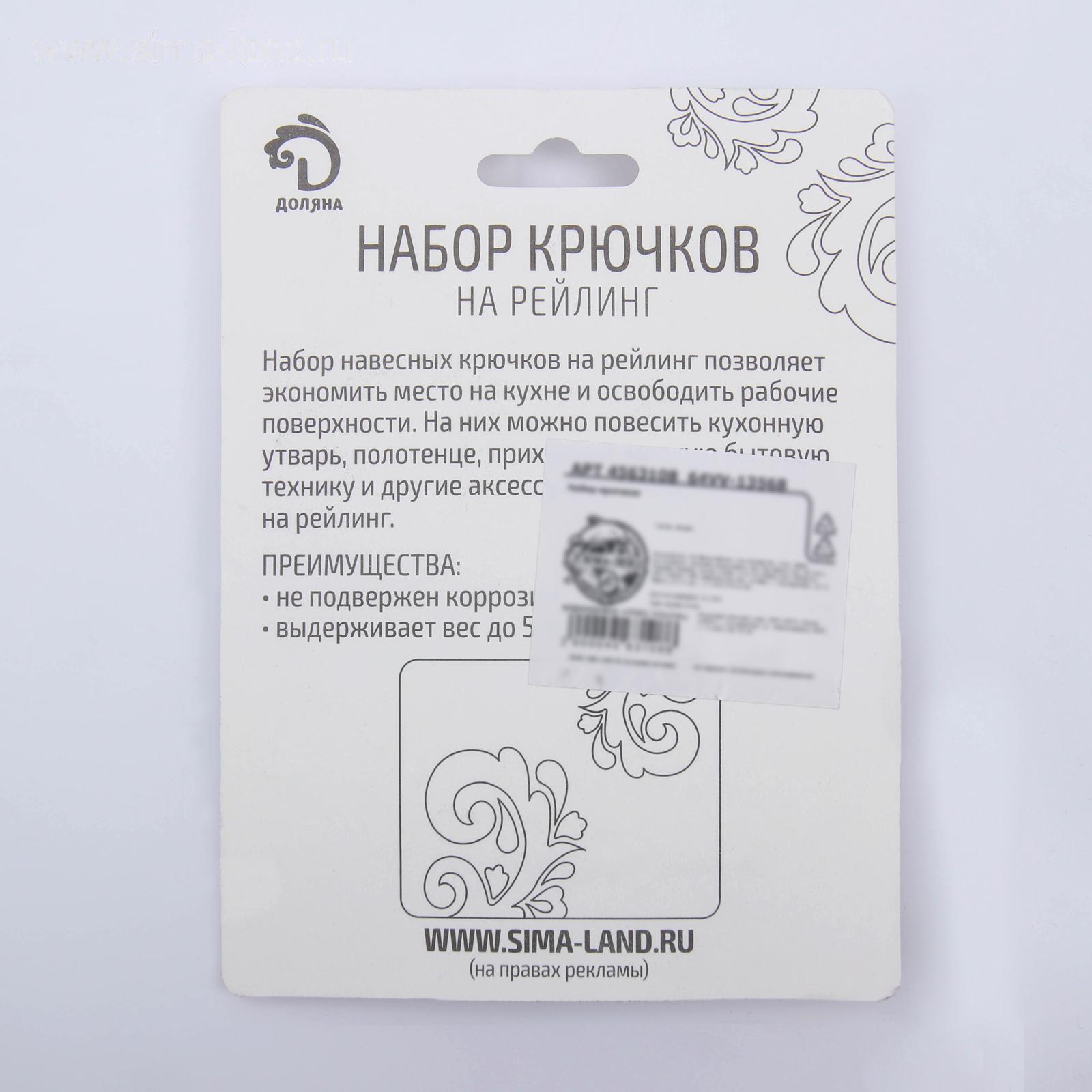 Набор крючков для рейлинга Доляна, d=2,2 см, 7 см, 6 шт, цвет чёрный