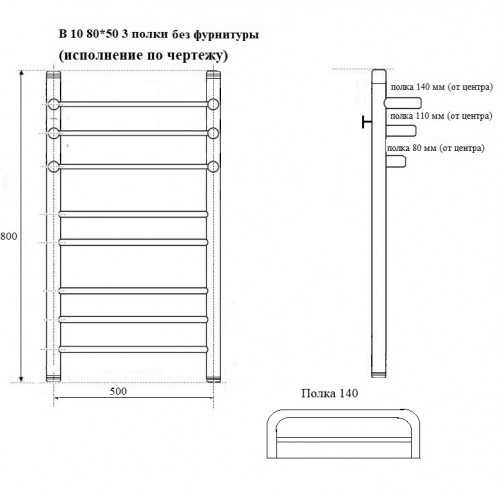 Полотенцесушитель Маргроид Вид 10/3 нижнее подключение с полкой, форма - лесенка, для любого по стилю интерьера ванной комнаты.